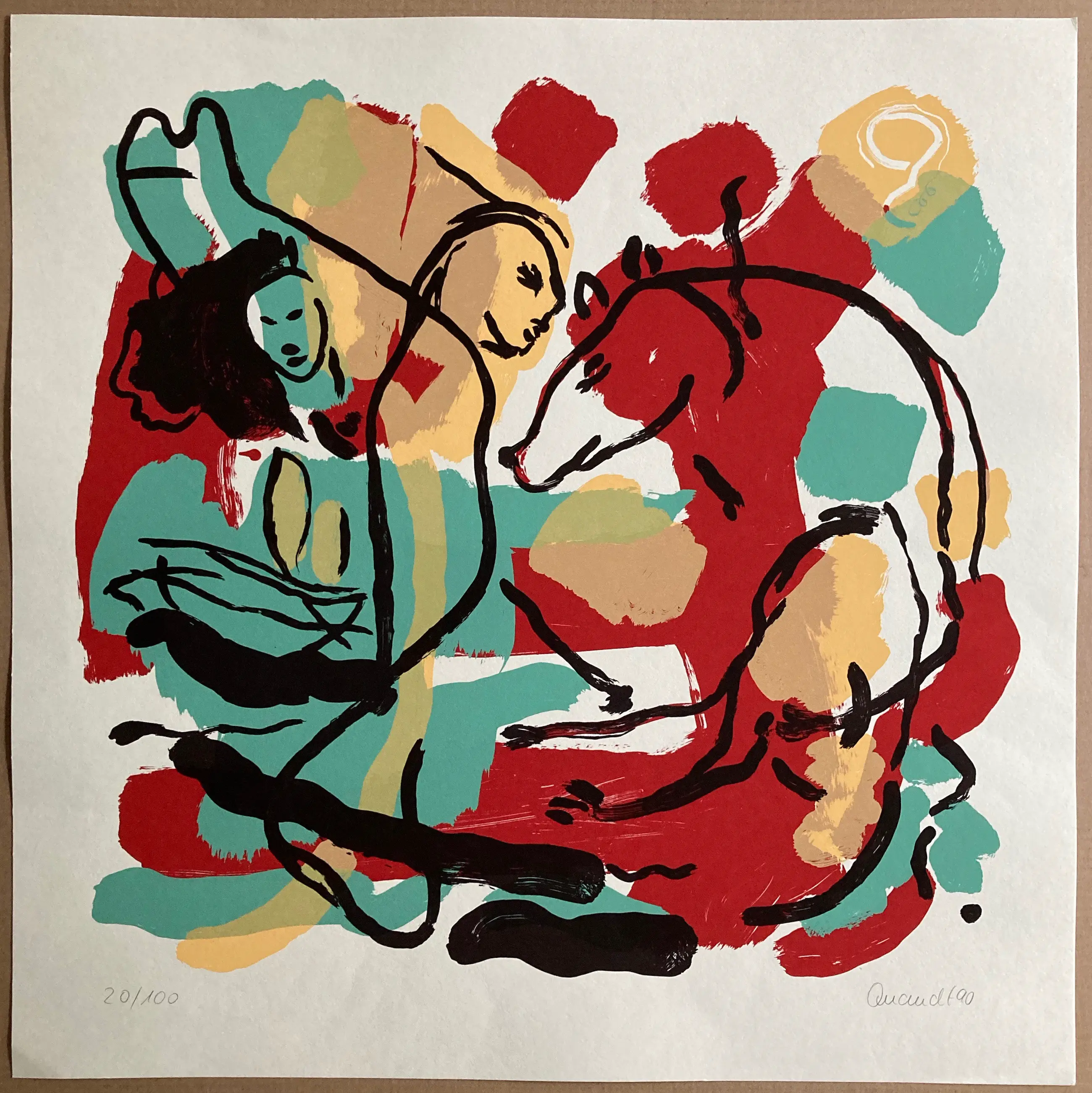 Prachtige gekleurde zeer grote gesigneerde en genummerde originele kleurenzeefdruk of zeefdruk van de "Junge Wilden" en internationaal bekende kunstenaar, die studeerde aan de Academie voor Schone Kunsten in Berlijn bij Hans Kuhn en KH Hödicke