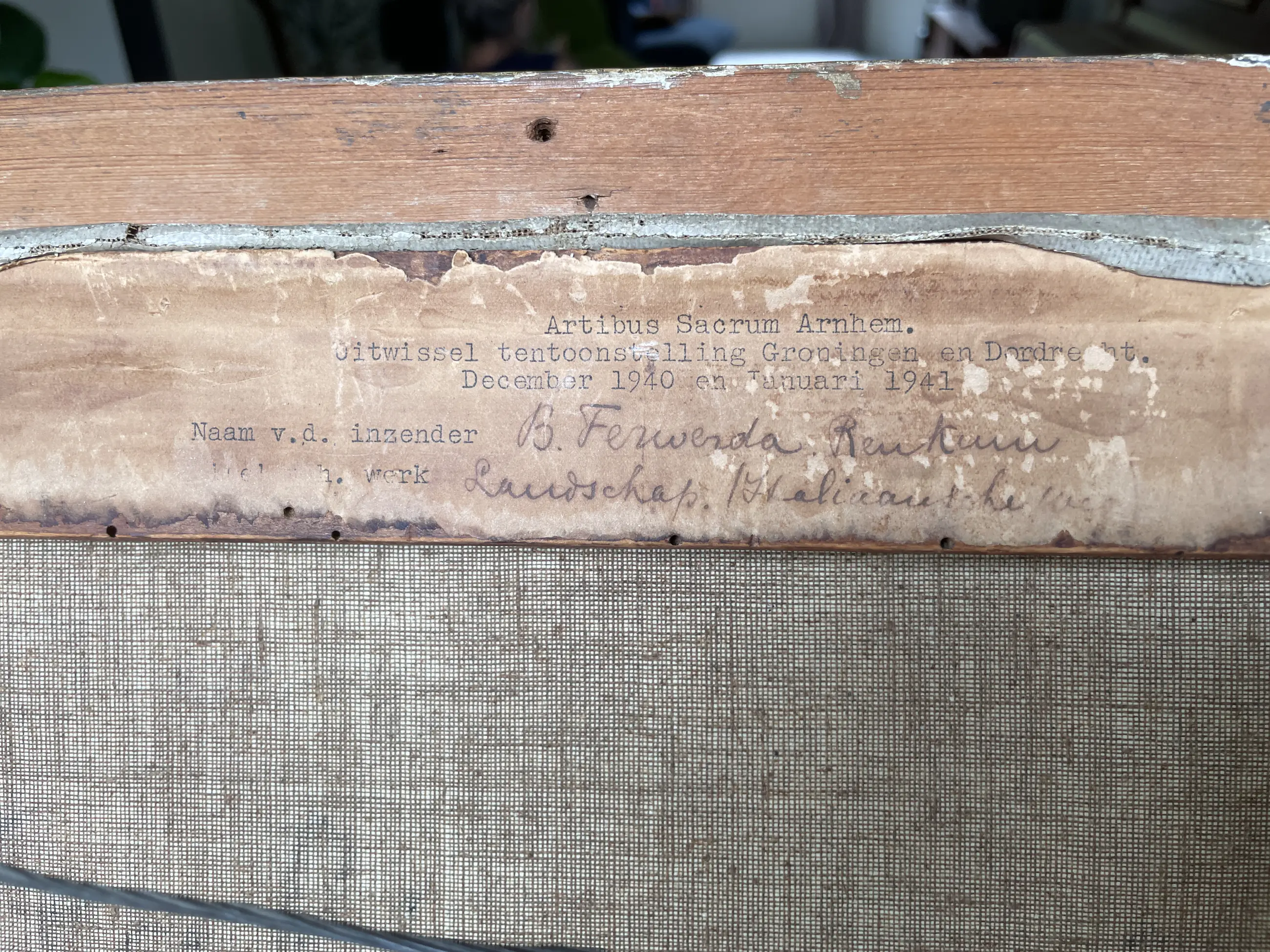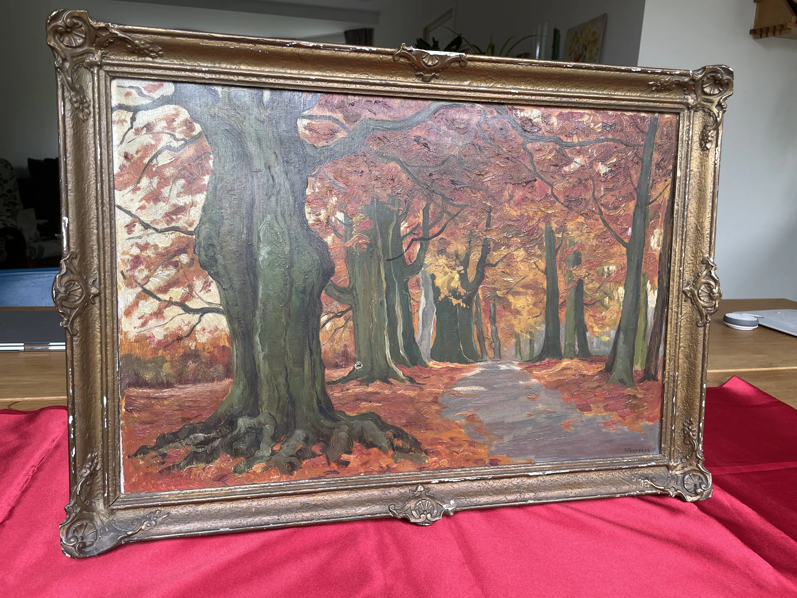 Er zit een klein gaatje in het schilderij (zie foto's). De lijst is in slechte staat.