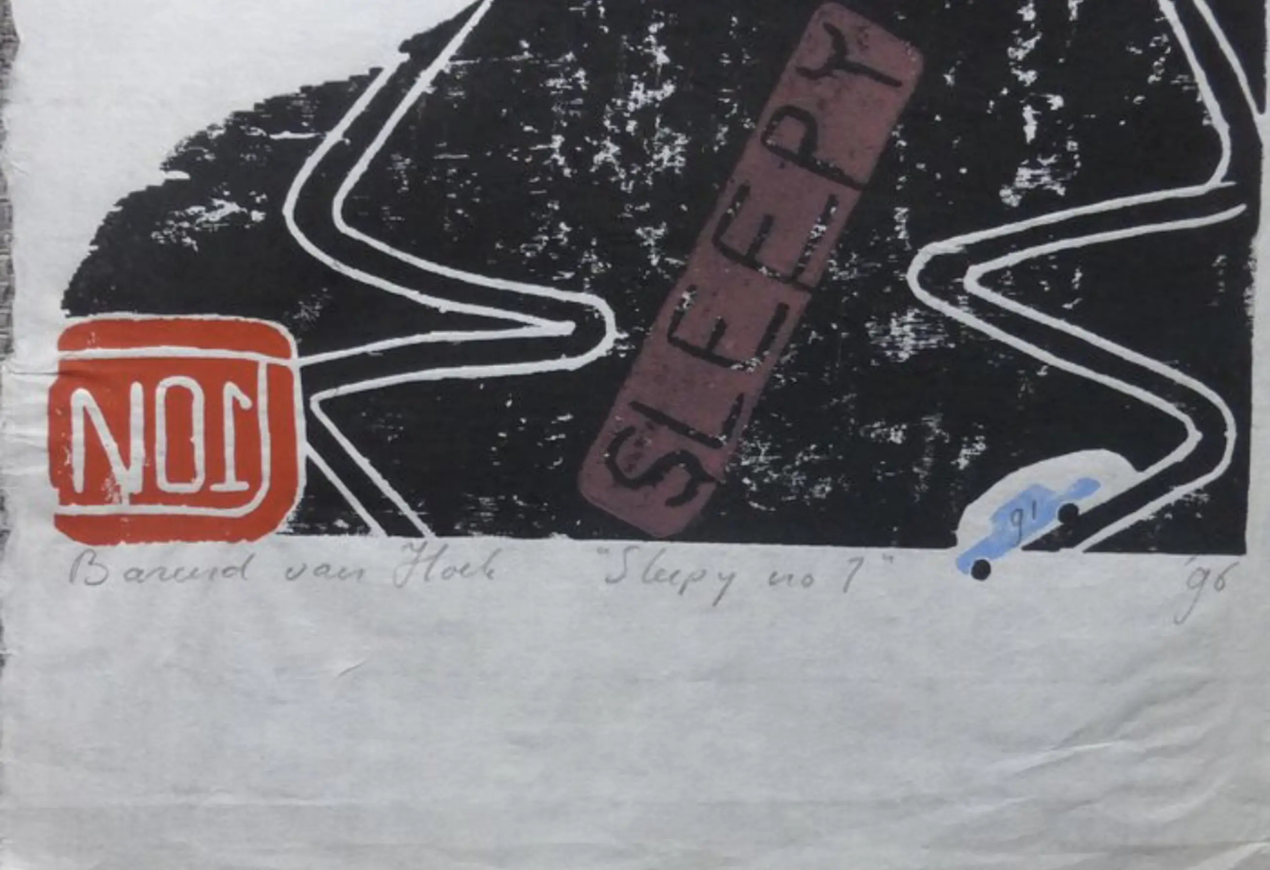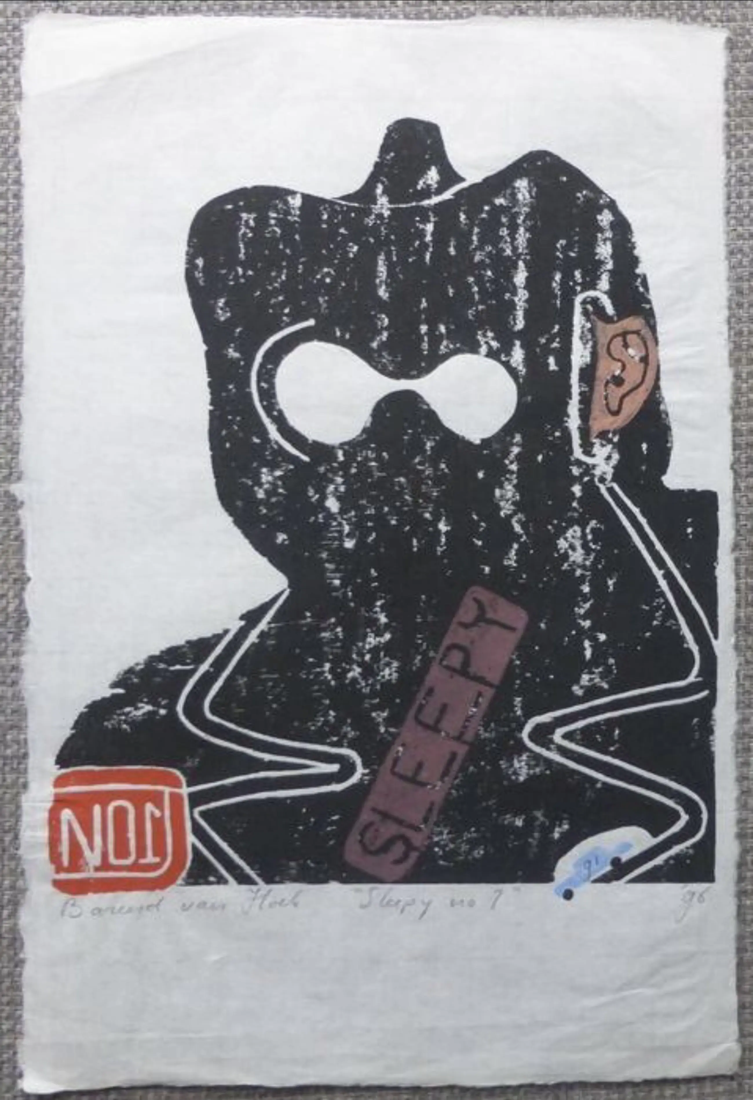 SLEEPY NO. 1 - linoprint / woodcut in kleur op Japans rijstpapier van Nederlandse kunstenaar Barend van Hoek - gelimiteerde editie van 100, dit is nummer 91 (zie op werk in potlood) - ondertekend en gedateerd door kunstenaar.