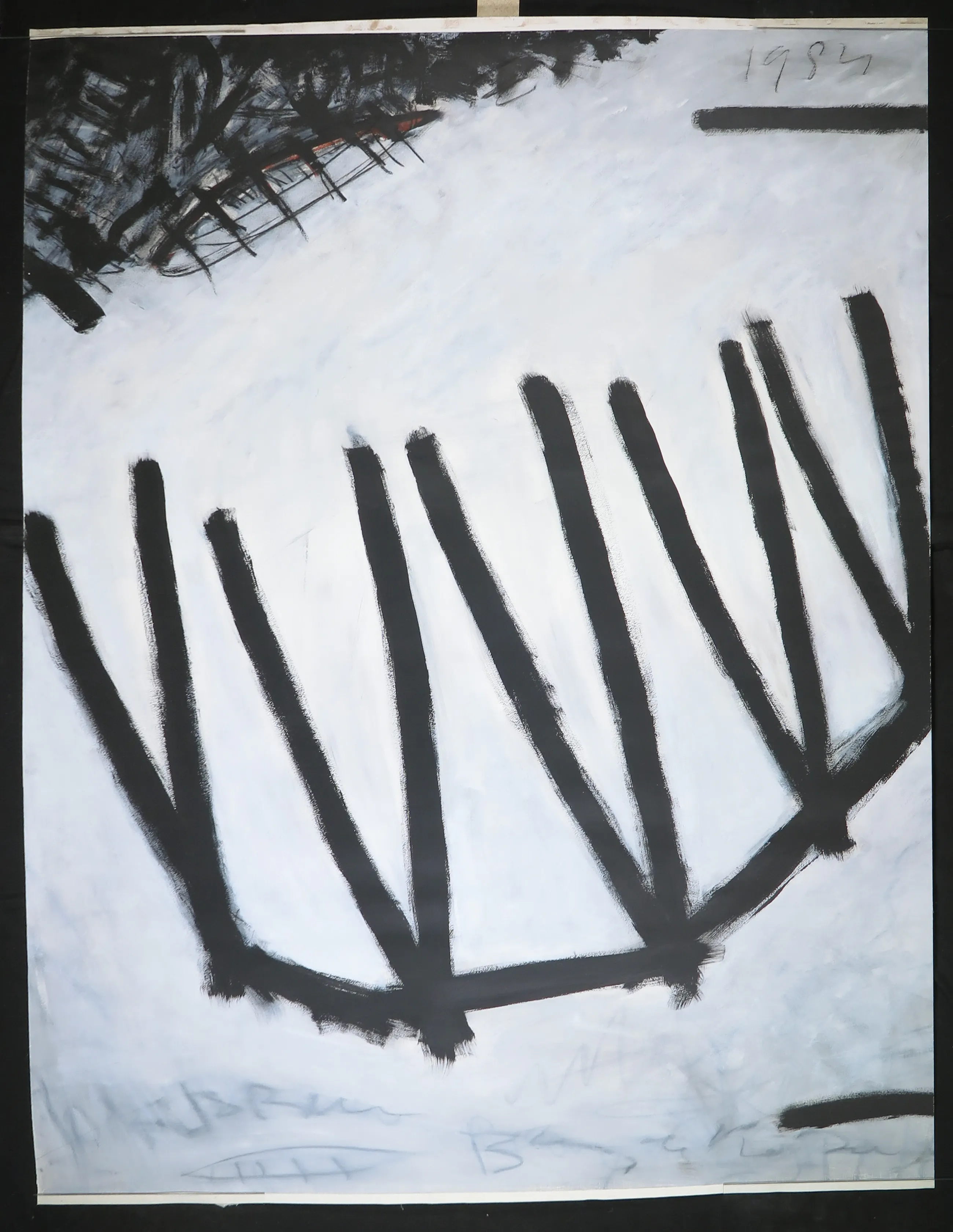 | Let op: Het werk is opgerold bewaard en wordt daarom ook in rol geleverd. Door de manier van bewaring heeft het werk wat bolling en opgekrulde randen. Wat taperesten aan de bovenzijde. | |