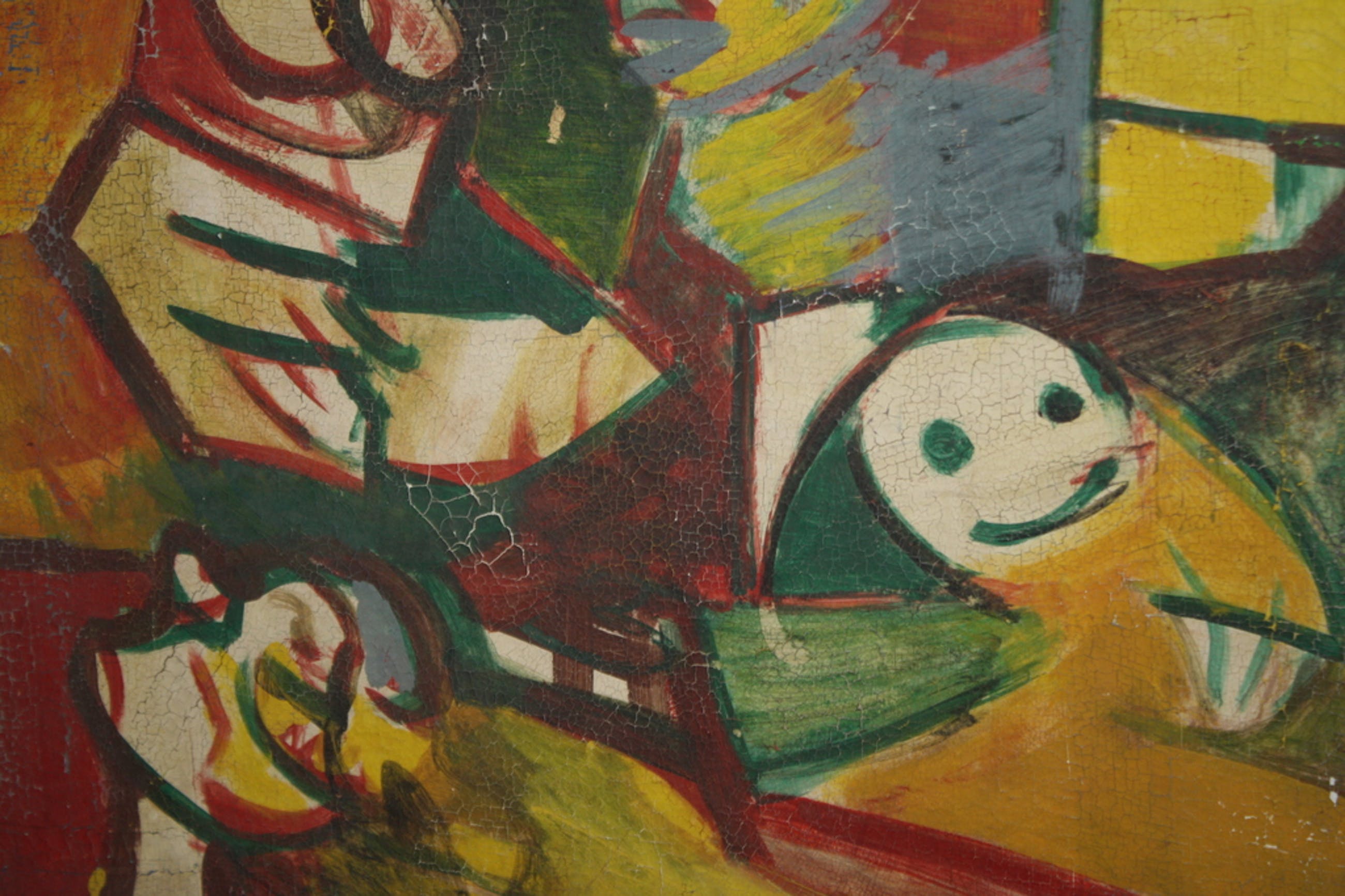 STAAT IS MATIG / VEEL CRAQUELÉ EN VERF BLADDEREN