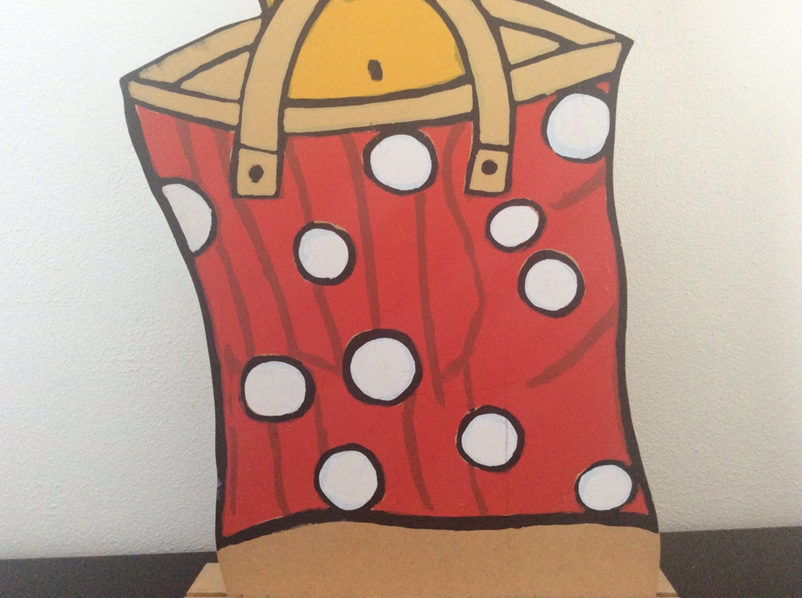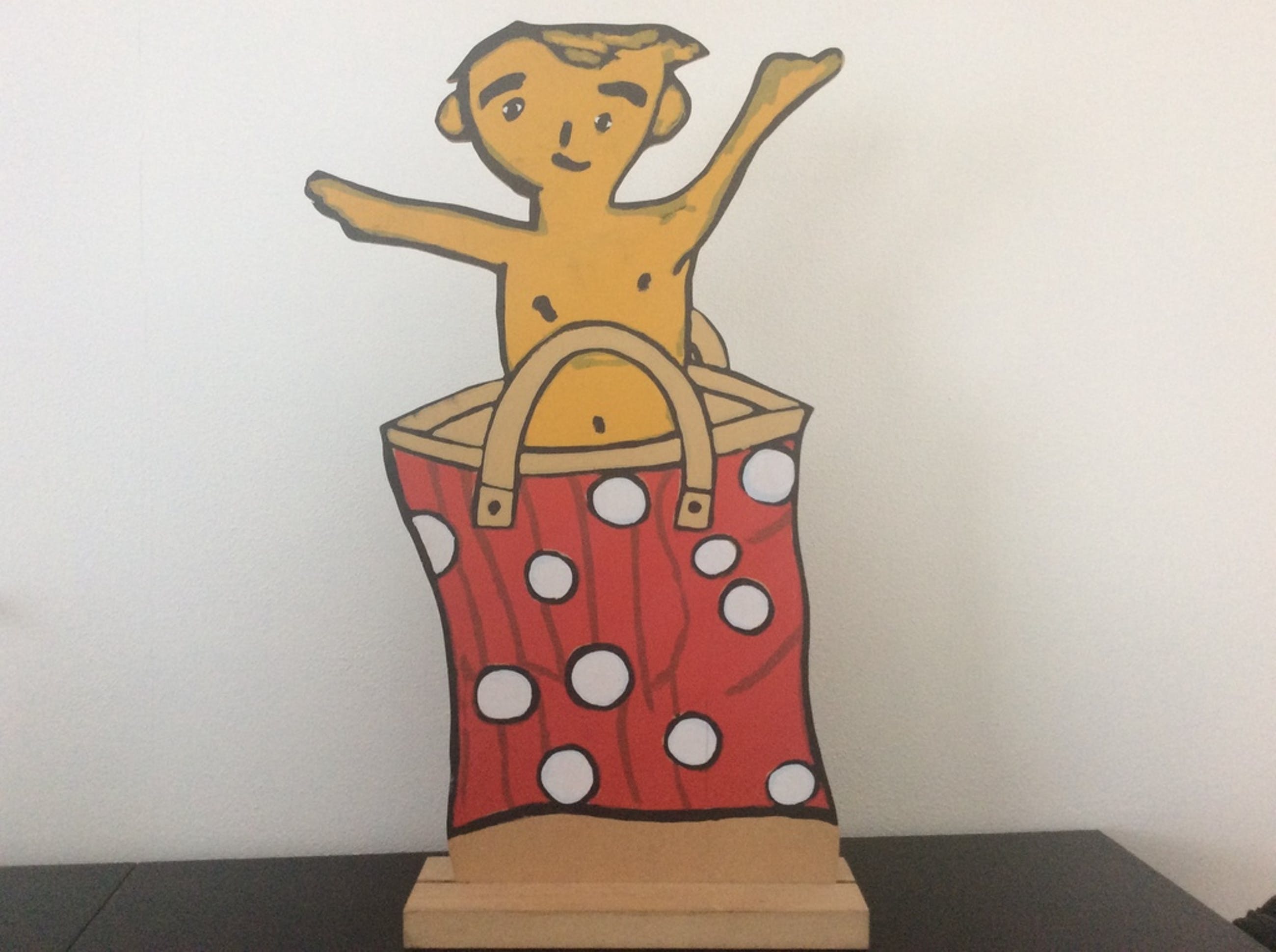 Techniek: Ruimtelijk werk met hout / Acrylverf op hout.