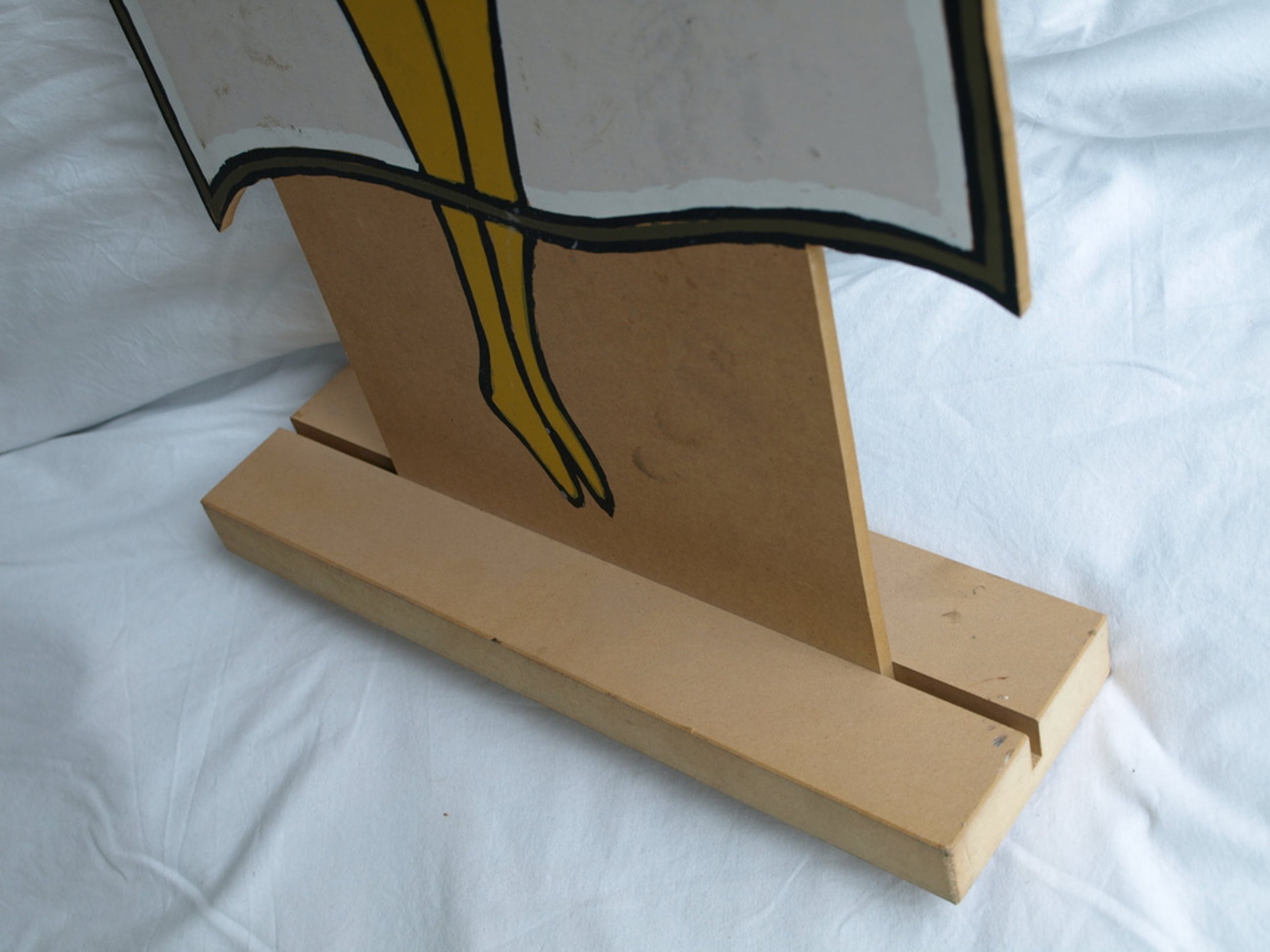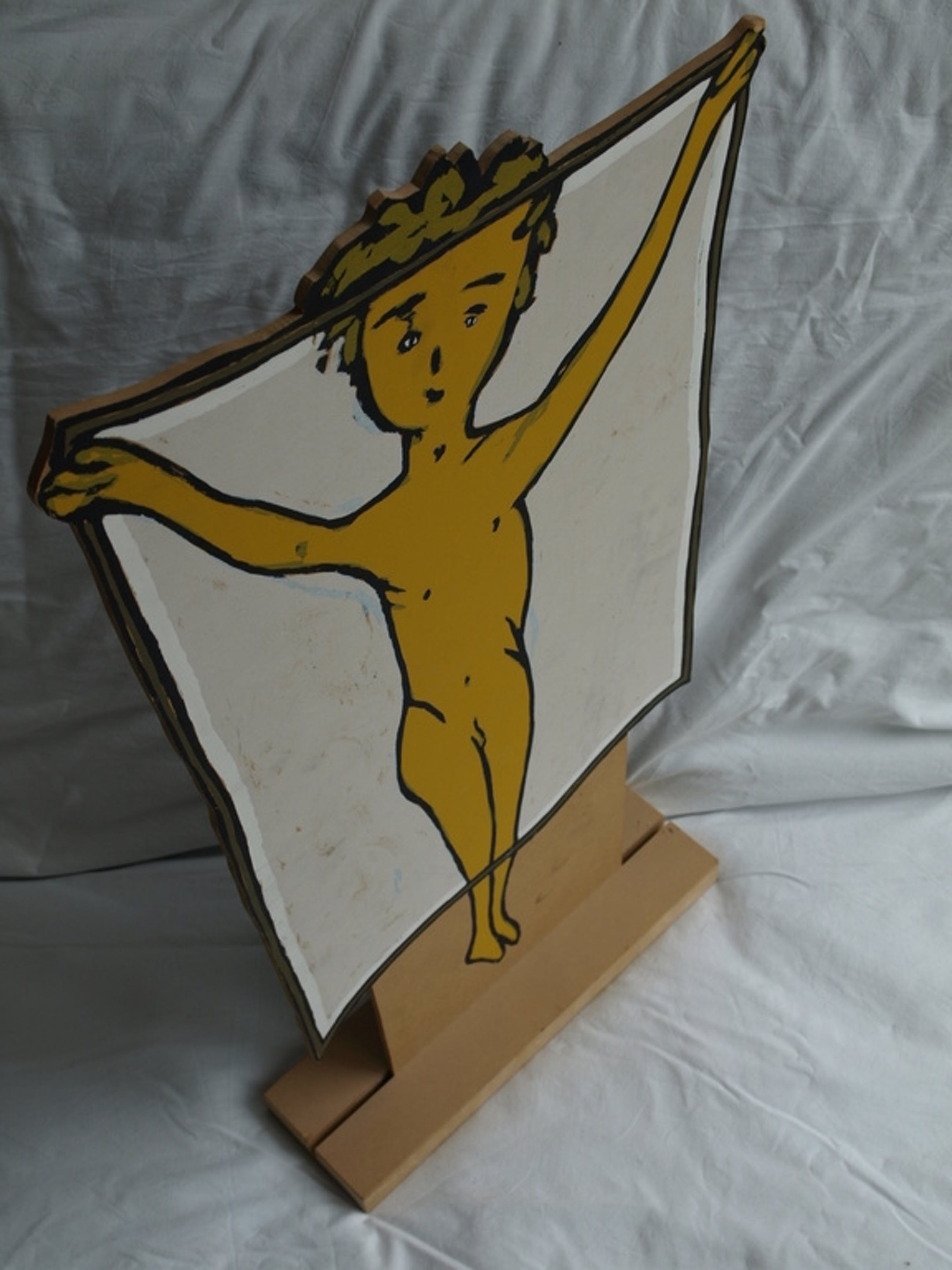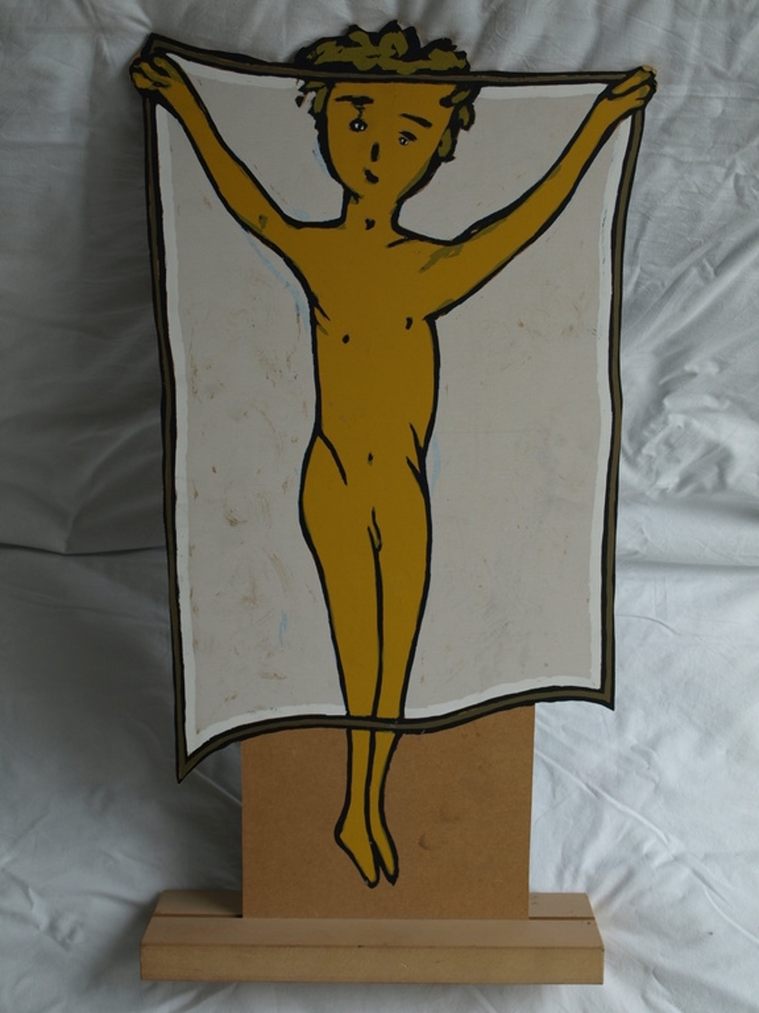 Techniek: Ruimtelijk werk met hout / Acrylverf op hout.