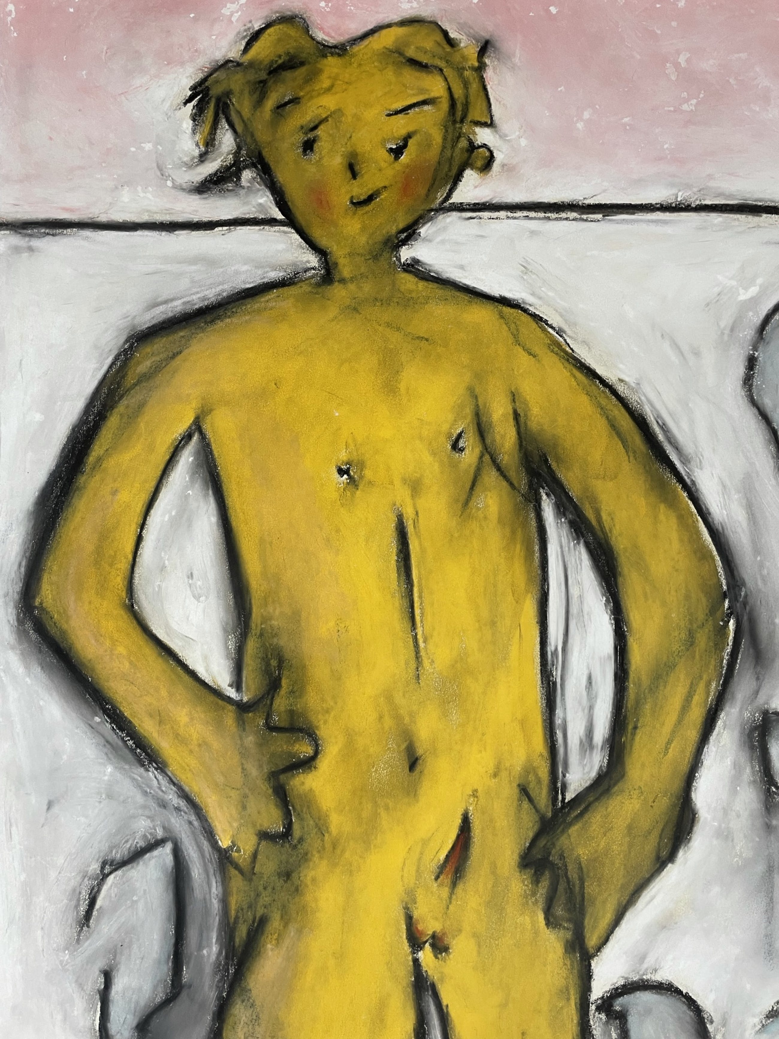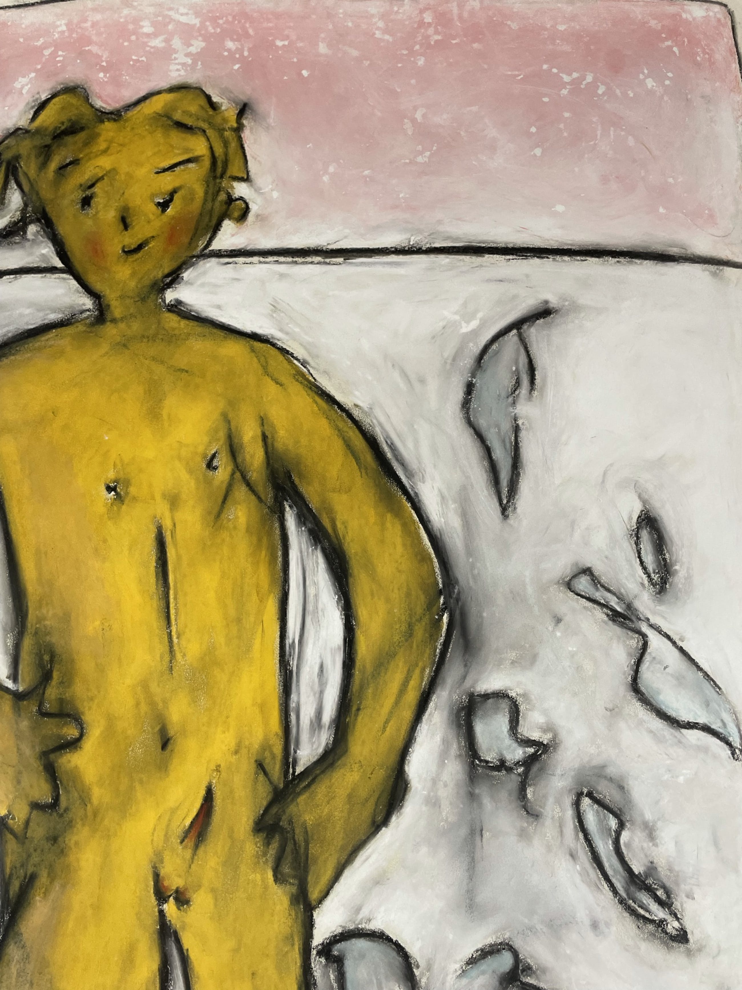 Fraaie en grote pastelkrijttekening (1991) van Bart Drost (1955), 100x65cm Bart Drost is een actieve kunstenaar uit Nijmegen, hij maakt gebruik van veel verschillende technieken en tekenen ligt aan de basis van zijn werken. Zijn werk kreeg in het verleden veelal belangstelling vanuit instellingen en scholen etc.