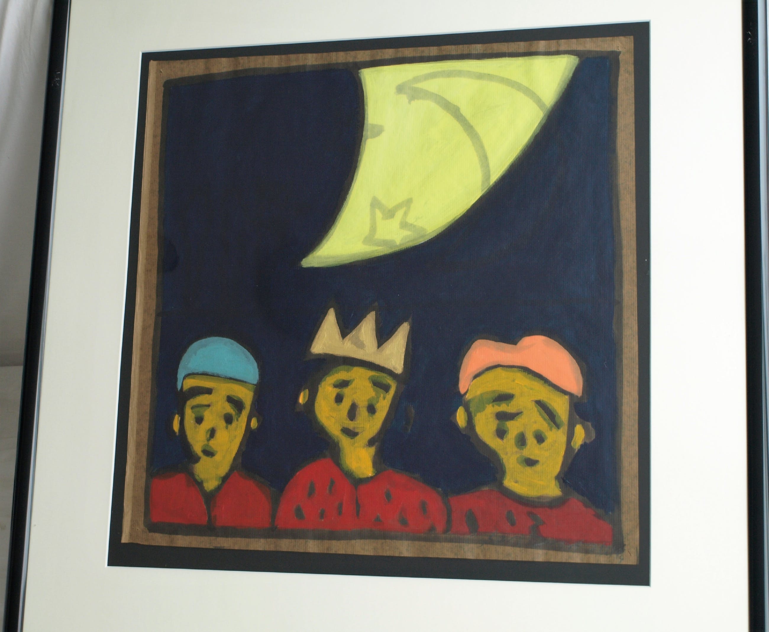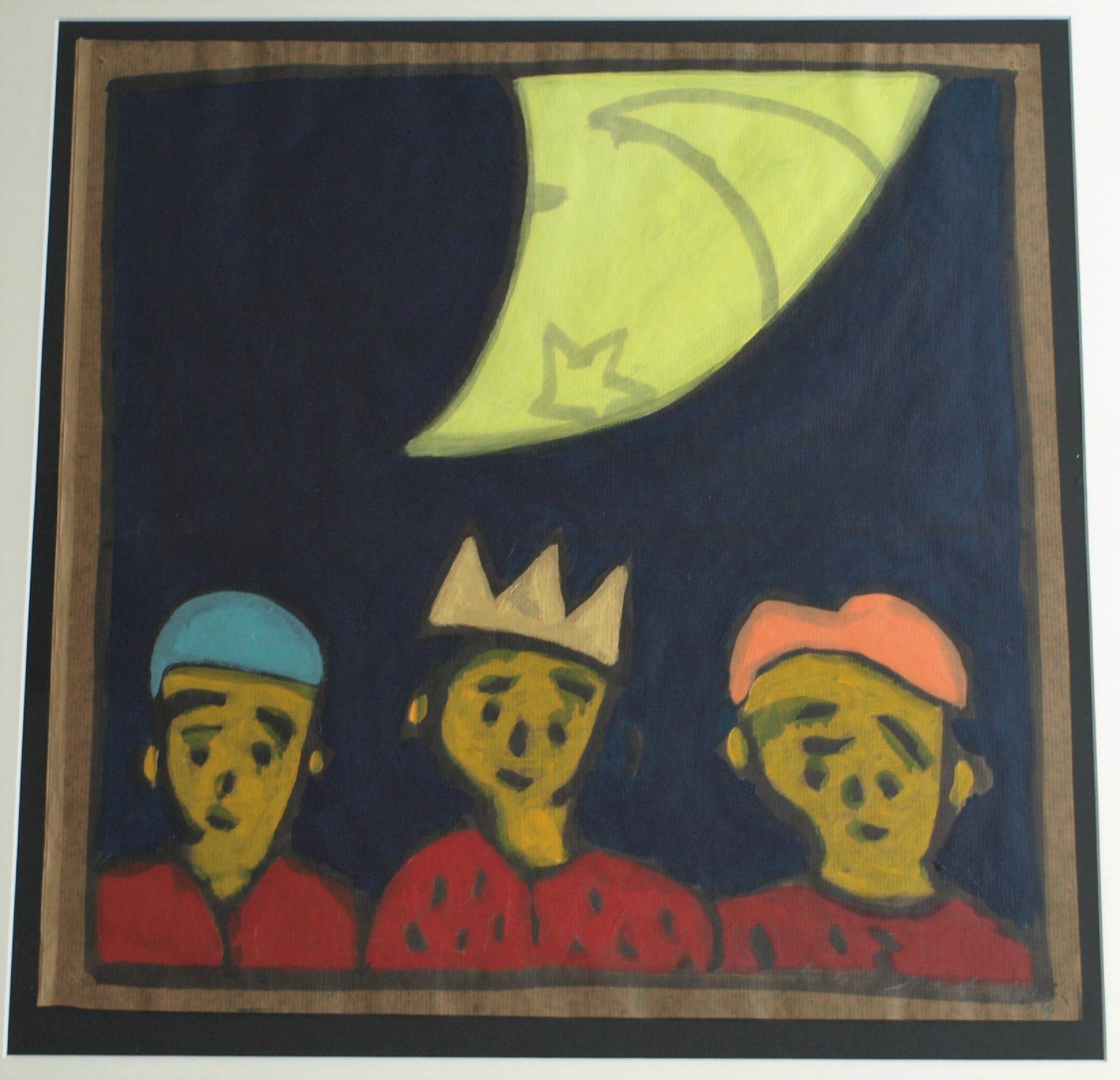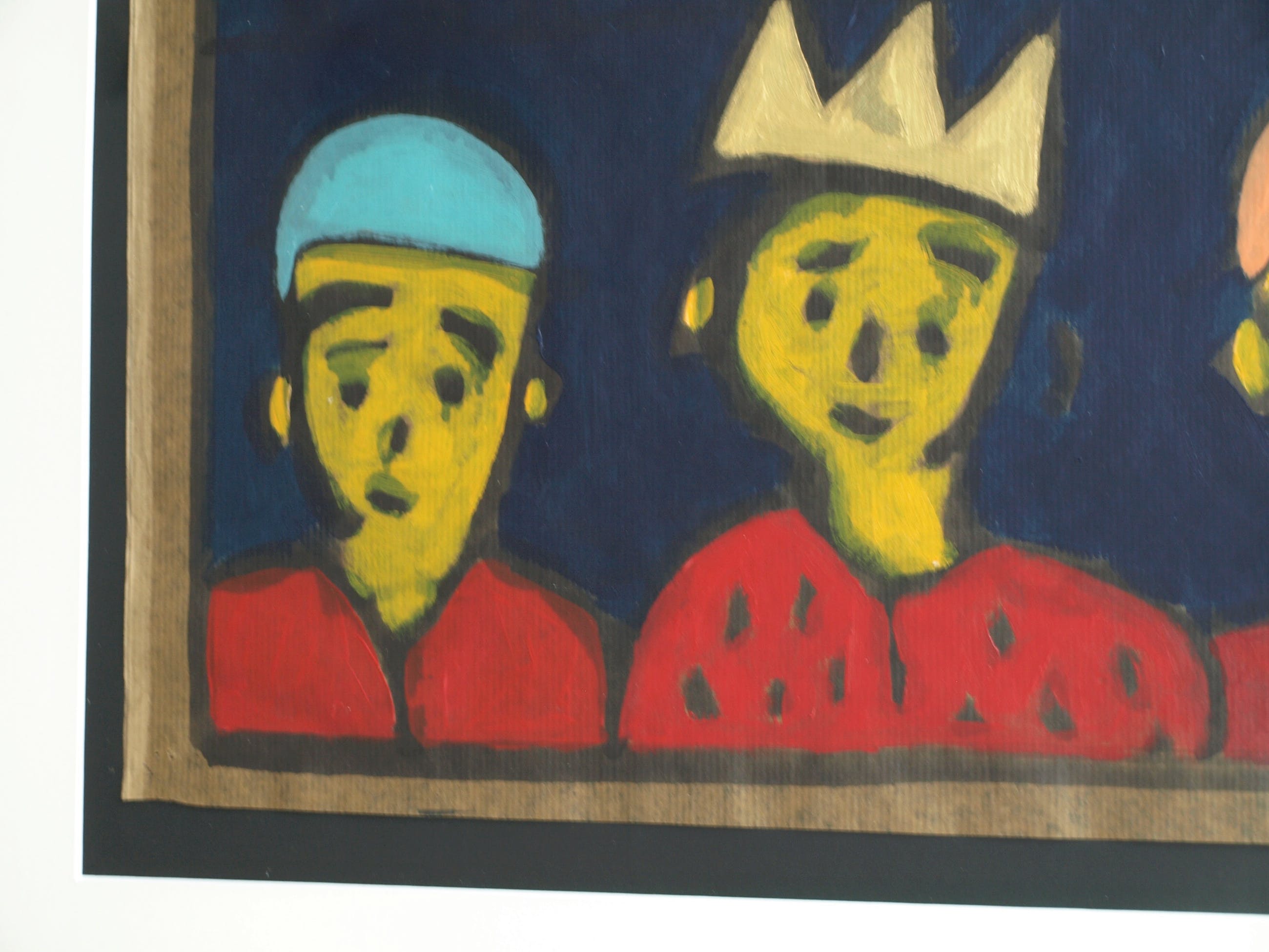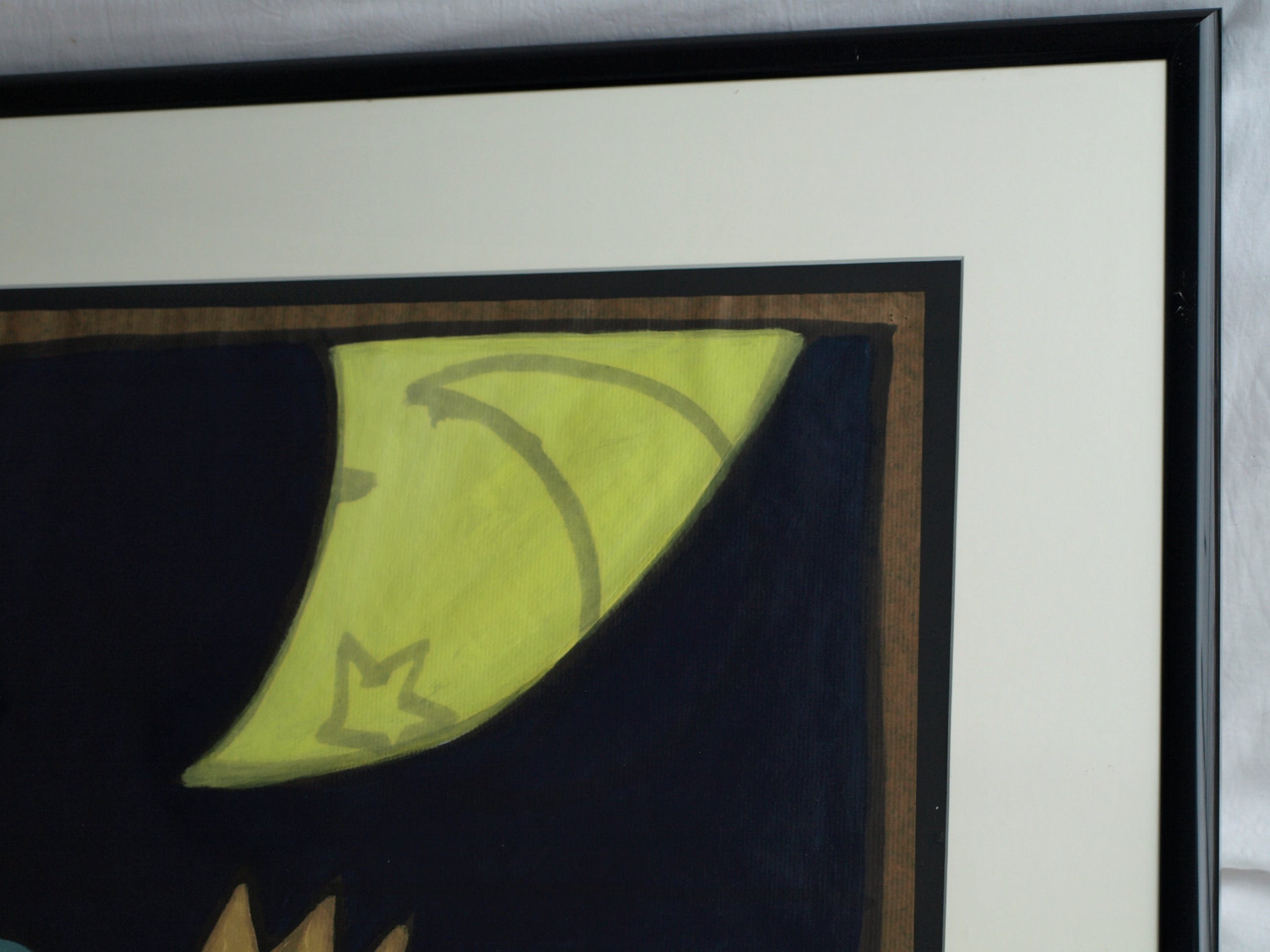 -Acrylverf op bitumenpapier (pakpapier).