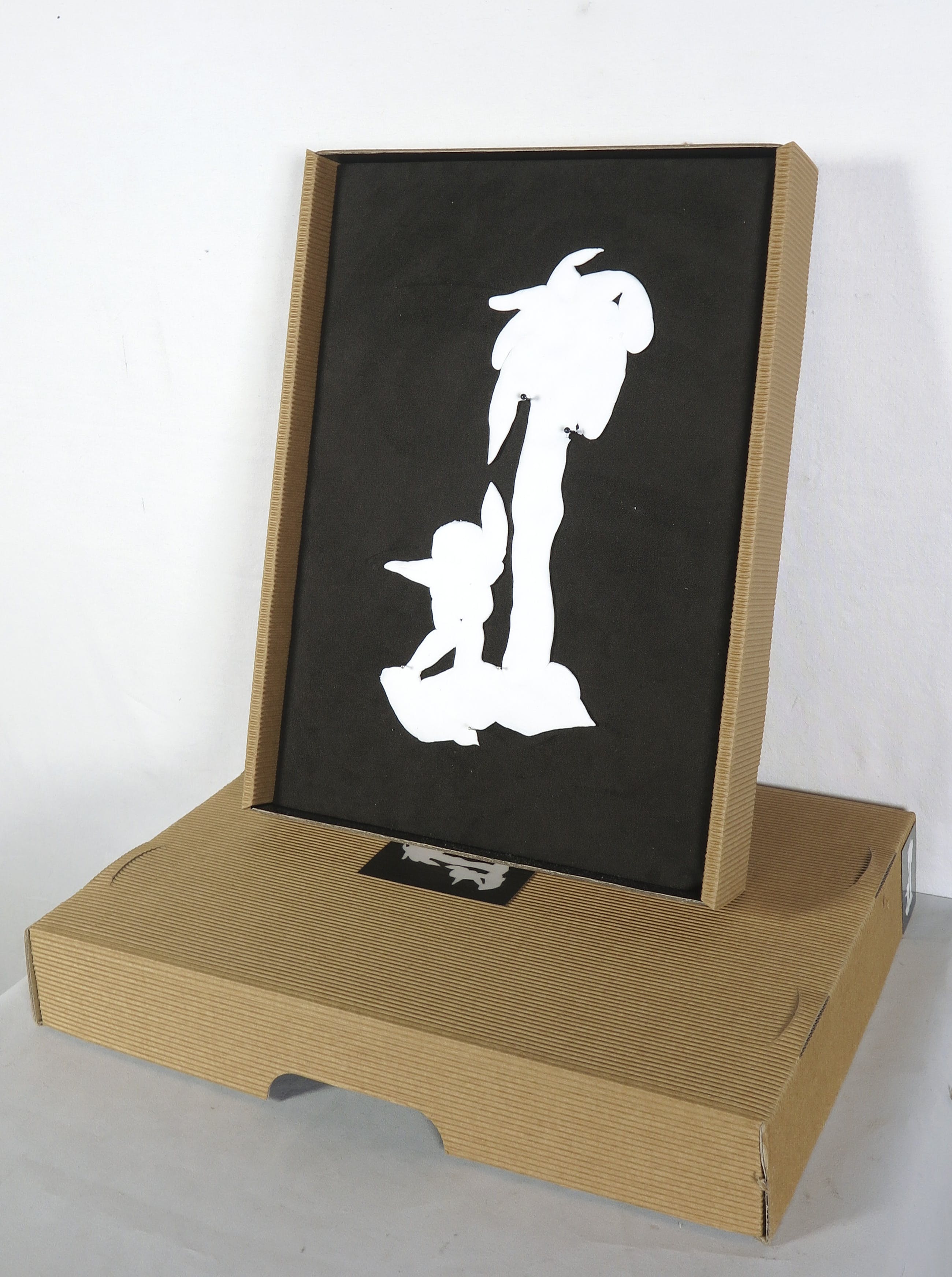 Porseleinen 'slatekening' in kartonnen box.