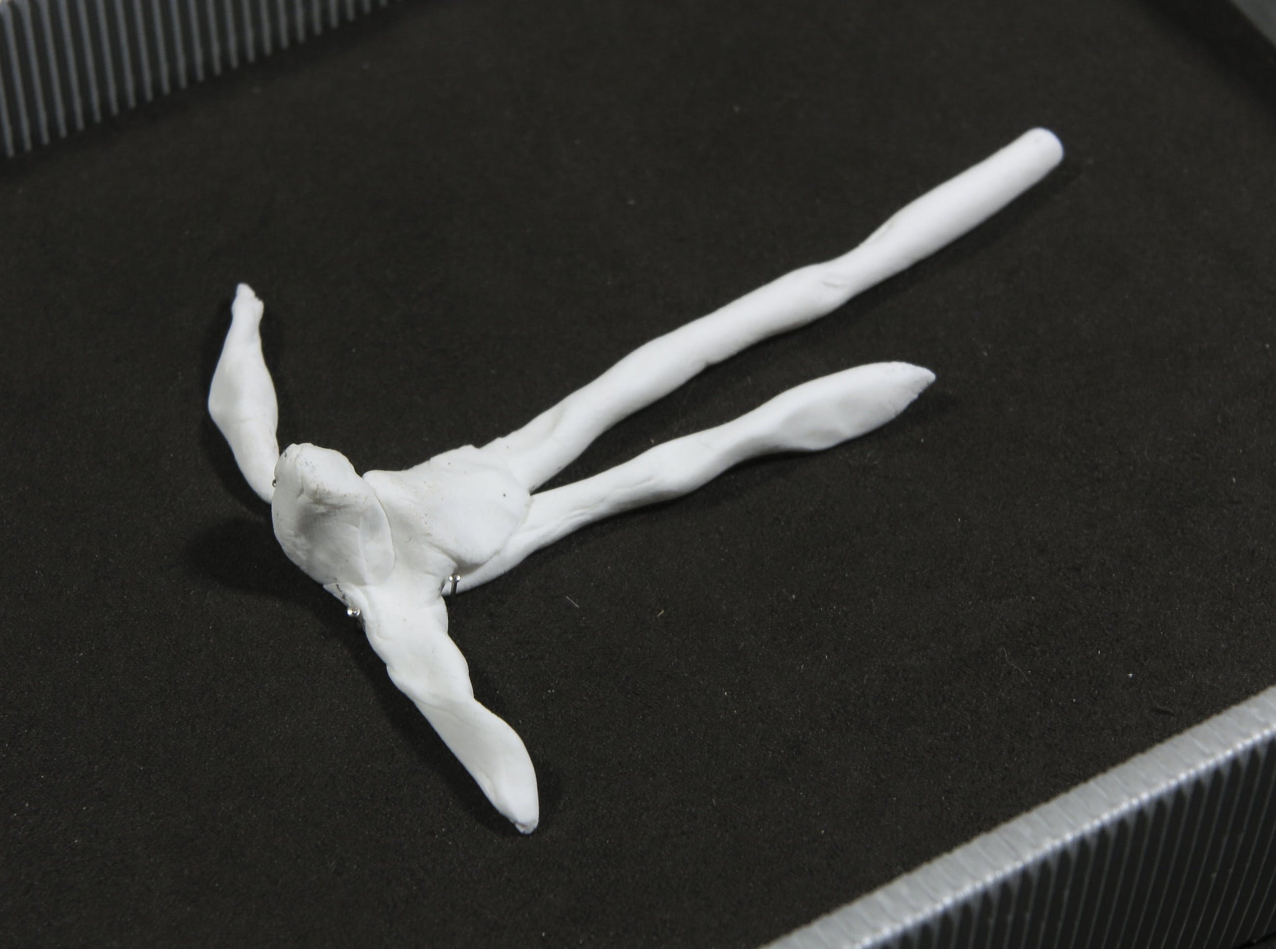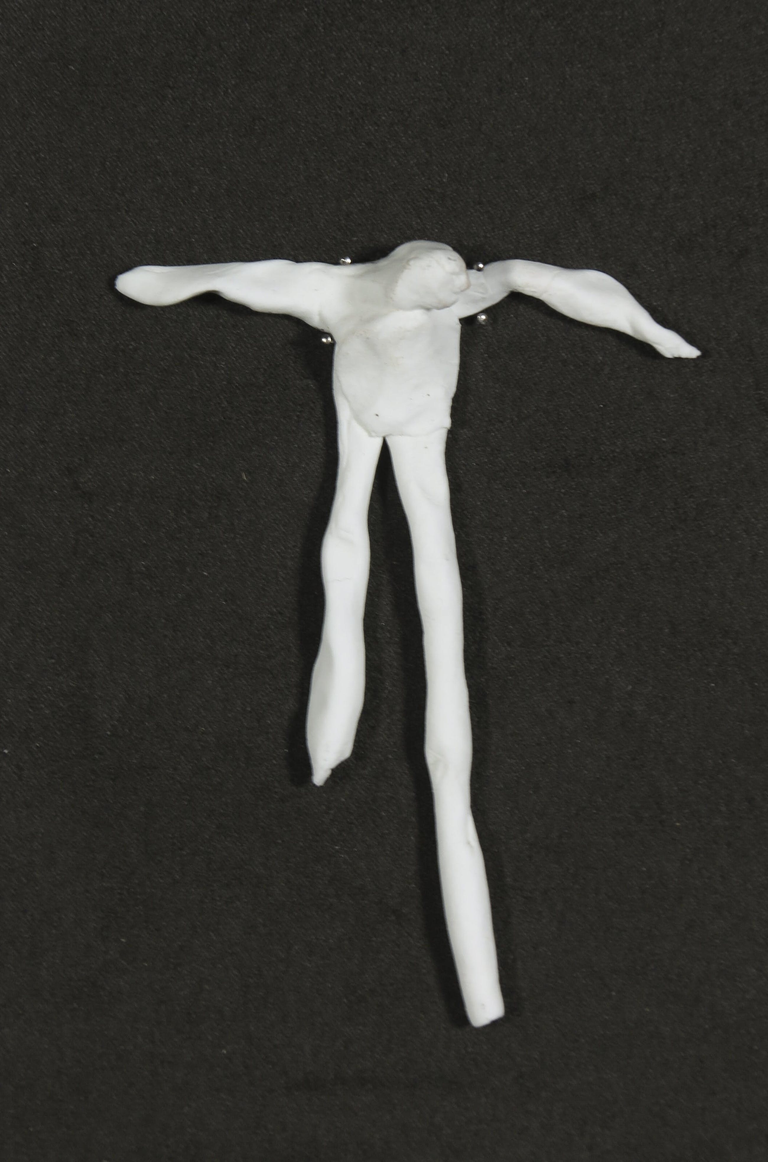 Het maakproces speelt een belangrijke rol bij de uiteindelijke vorm van dit werk; van een kneedbare massa naar kwetsbaar gedroogd klei, om vervolgens door de temperatuur van de oven (bij. ca. 1200 graden) haast vloeibaar te worden waardoor het figuur de armen laten zakken en een lijdende houding aan neemt, en tot slot eindigt als steenhard porselein.