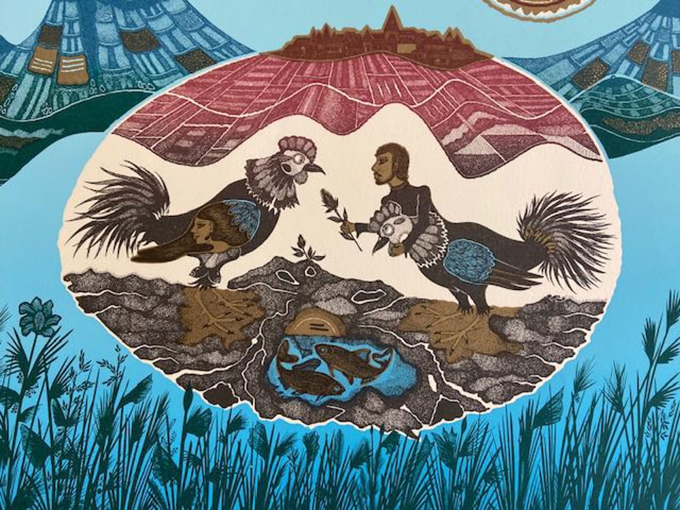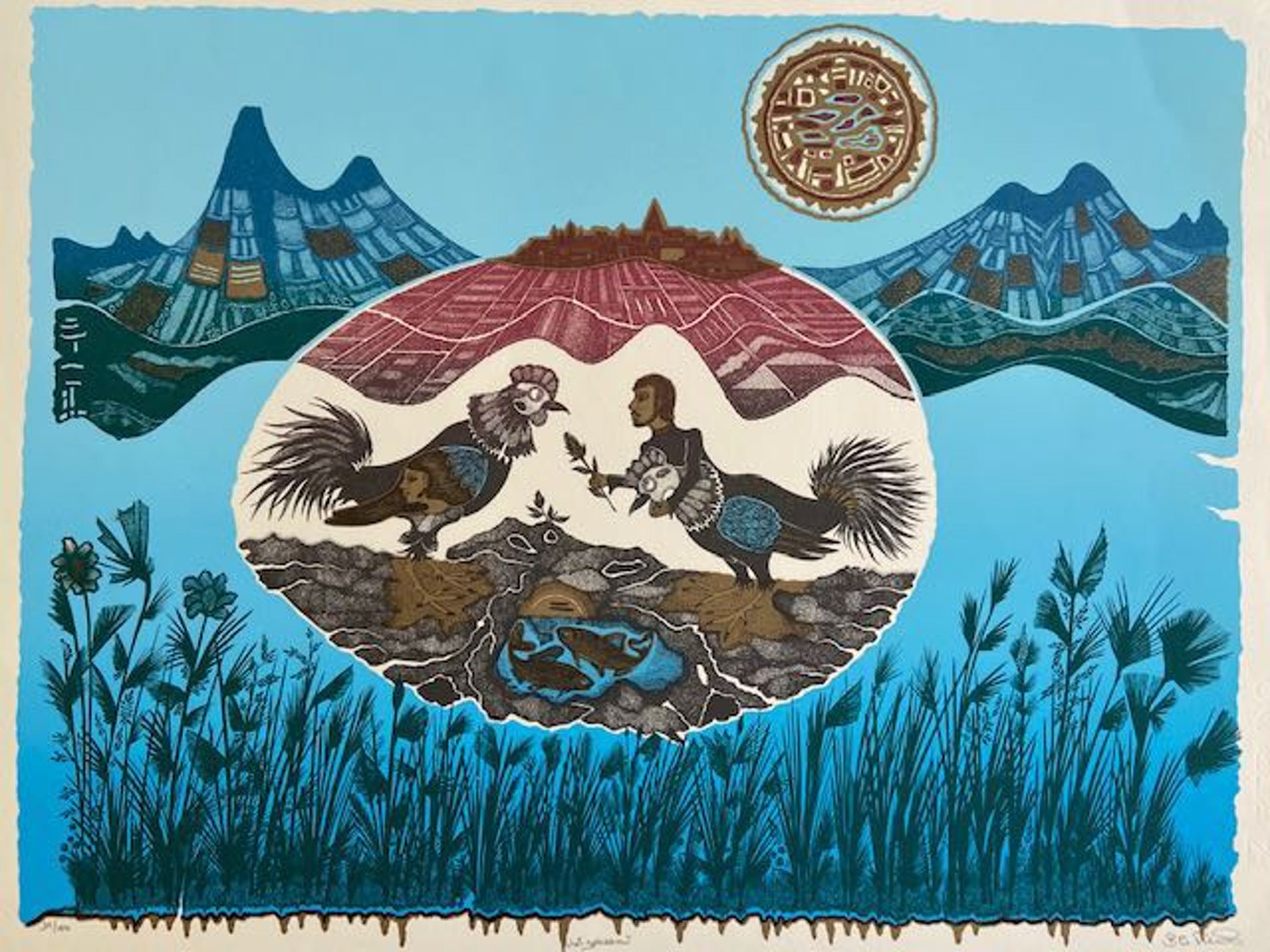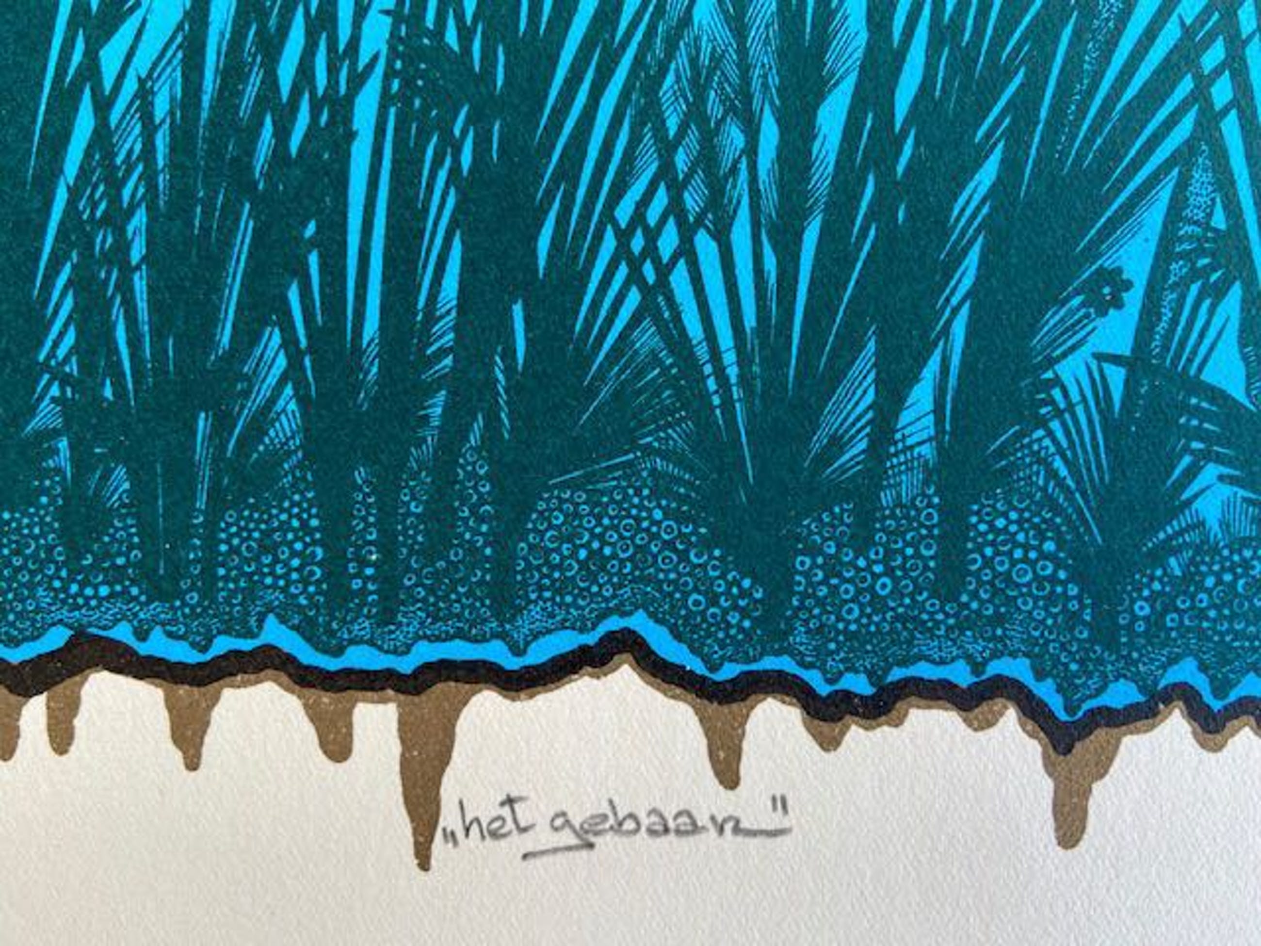 Uit nalatenschap van kunstverzamelaar komt beschikbaar Het Gebaar van Bart Filet. De zeefdruk verkeerd in goede staat. Is nooit ingelijst geweest. In beschermde plastic hoes in lade gelegen.