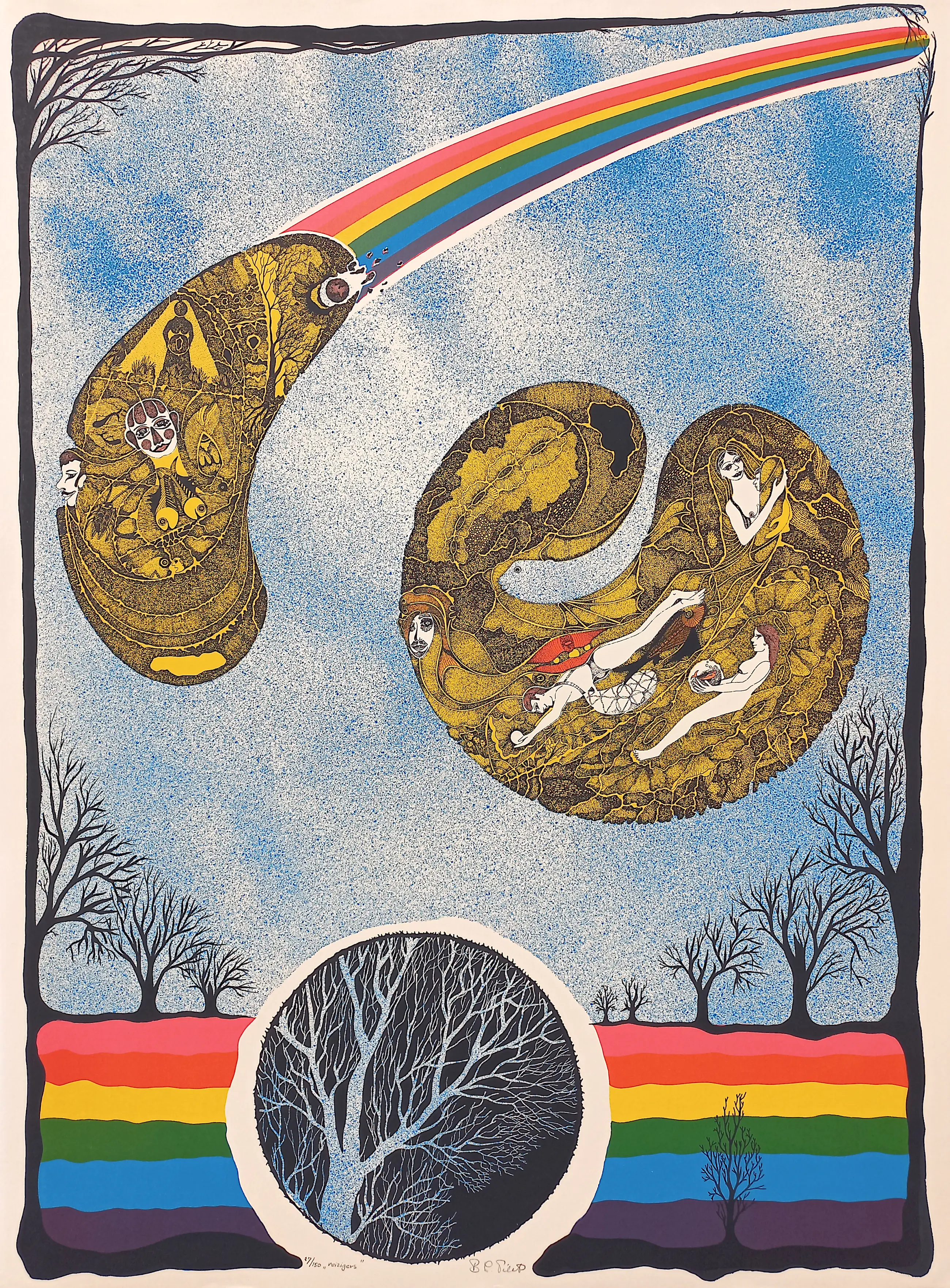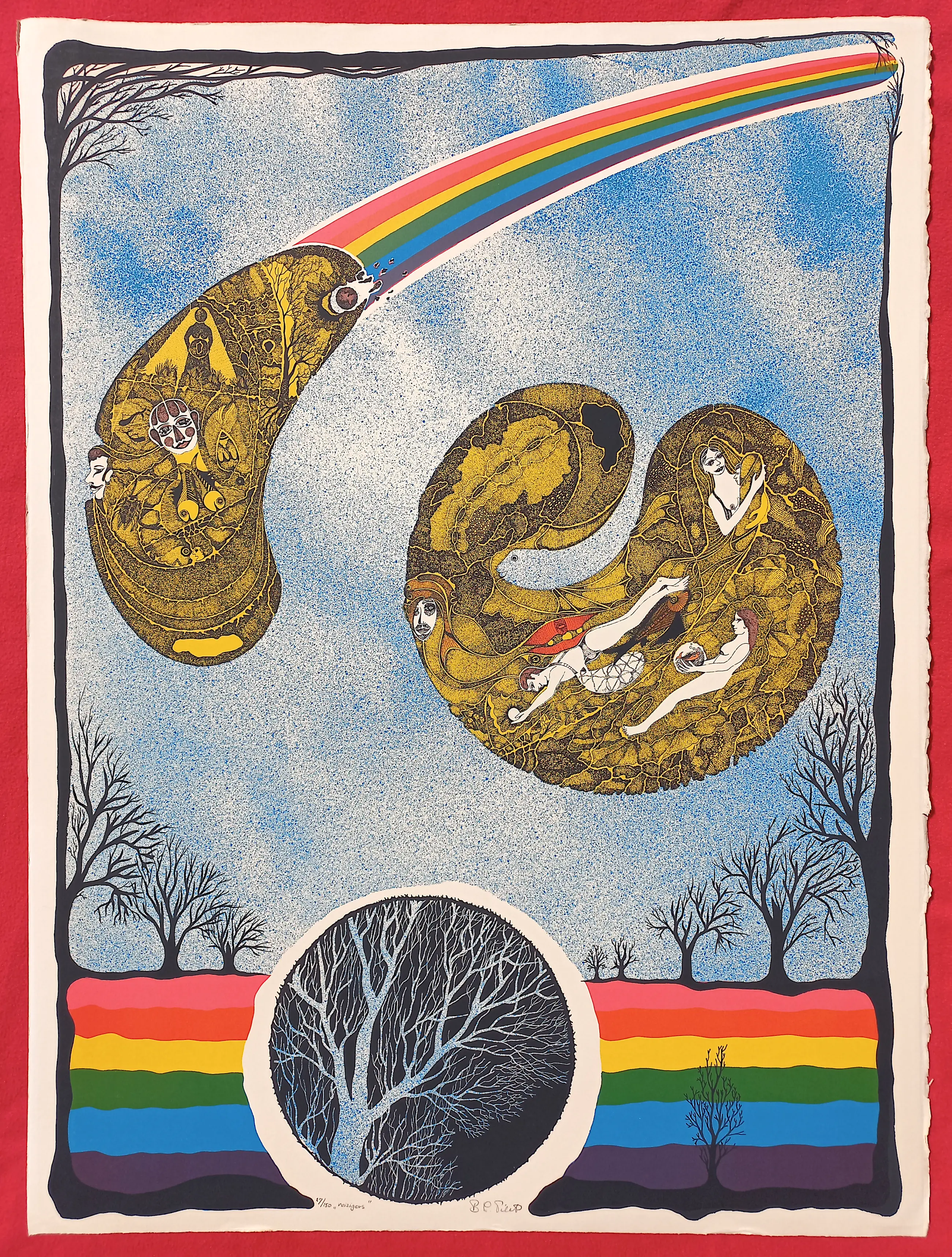 Prachtig, kleurrijk werk van Bart Filet; Flowerpower met een vleugje Jugendstil. Litho op geschept papier, met potlood gesigneerd, getiteld en genummerd (27/150). In goede conditie.