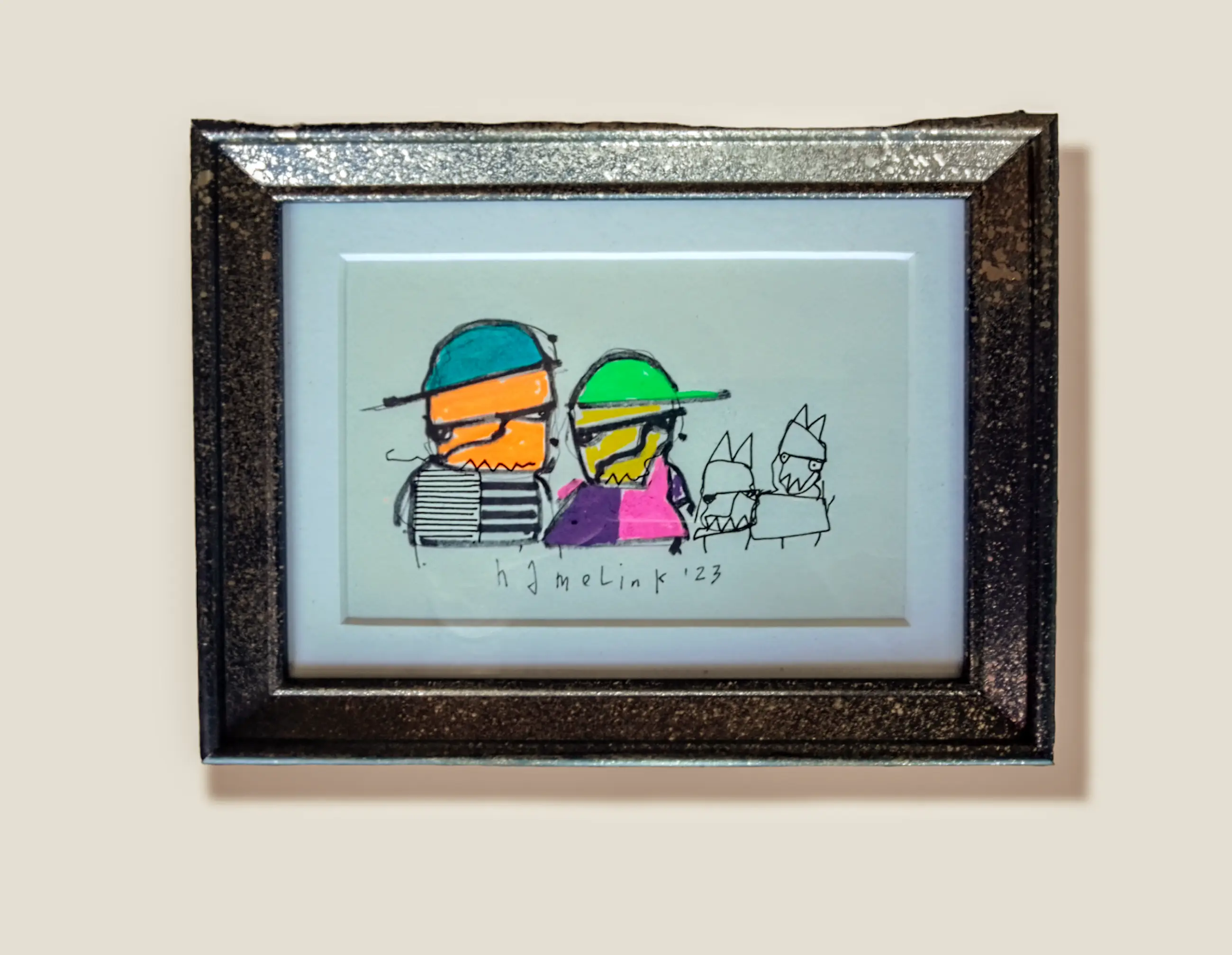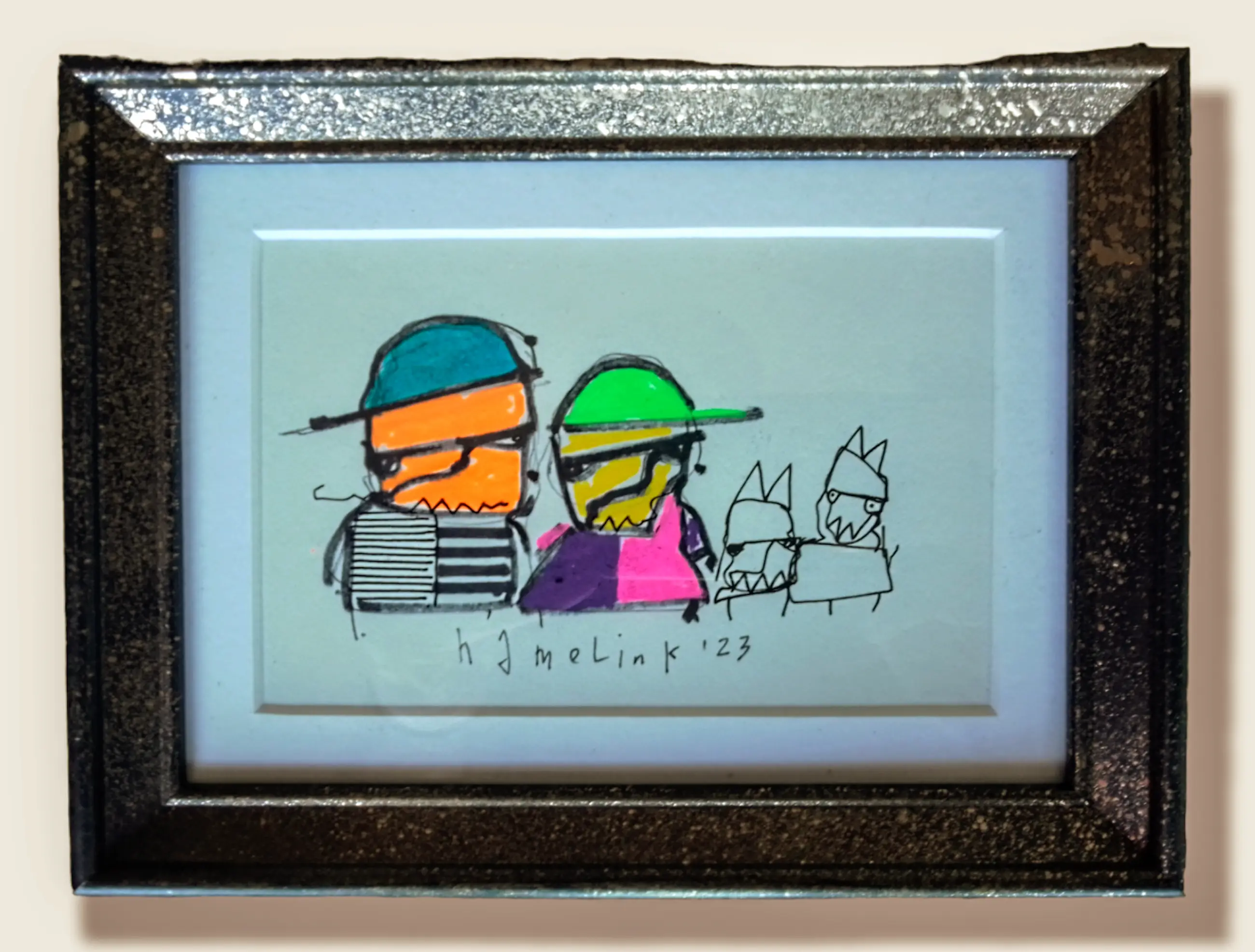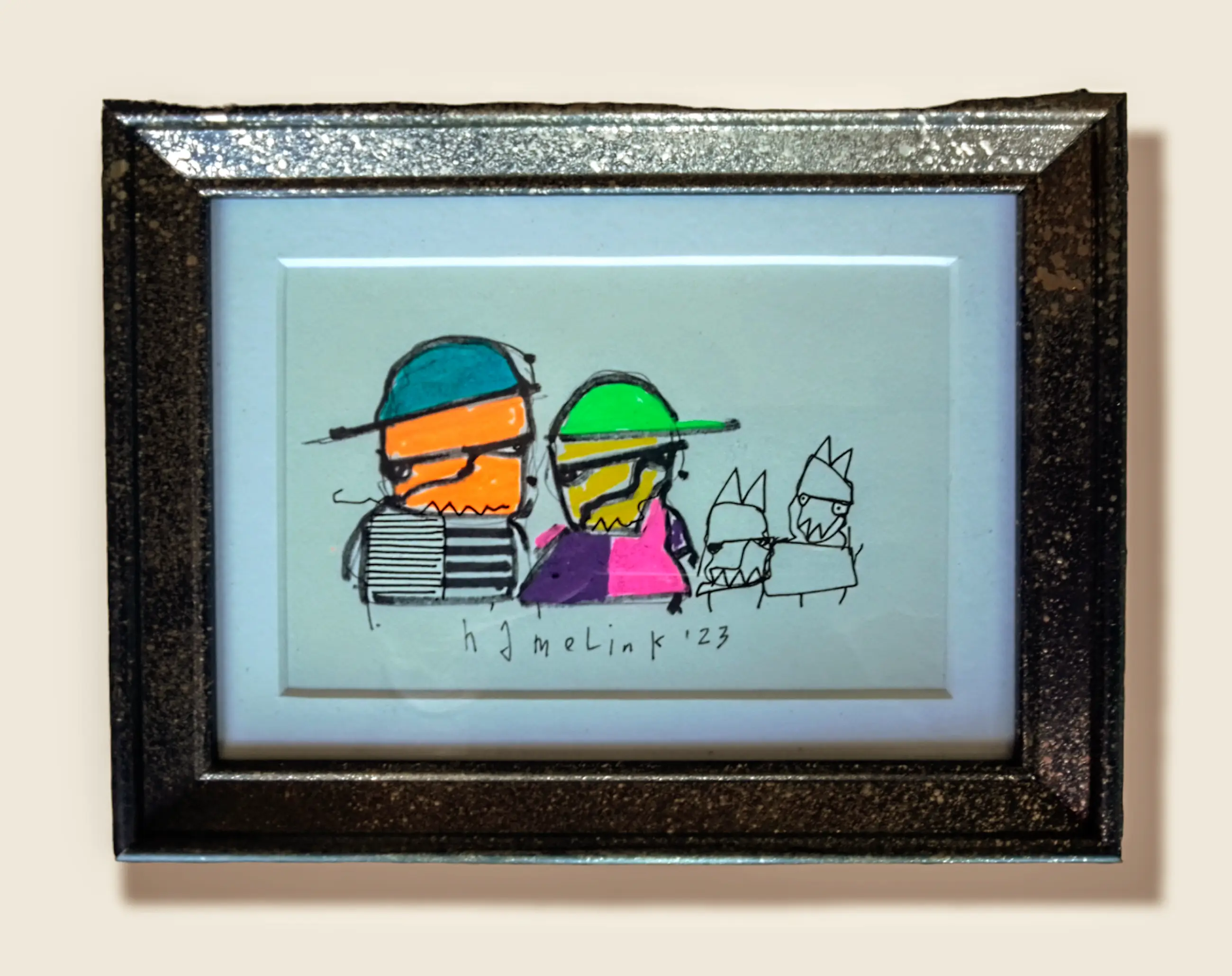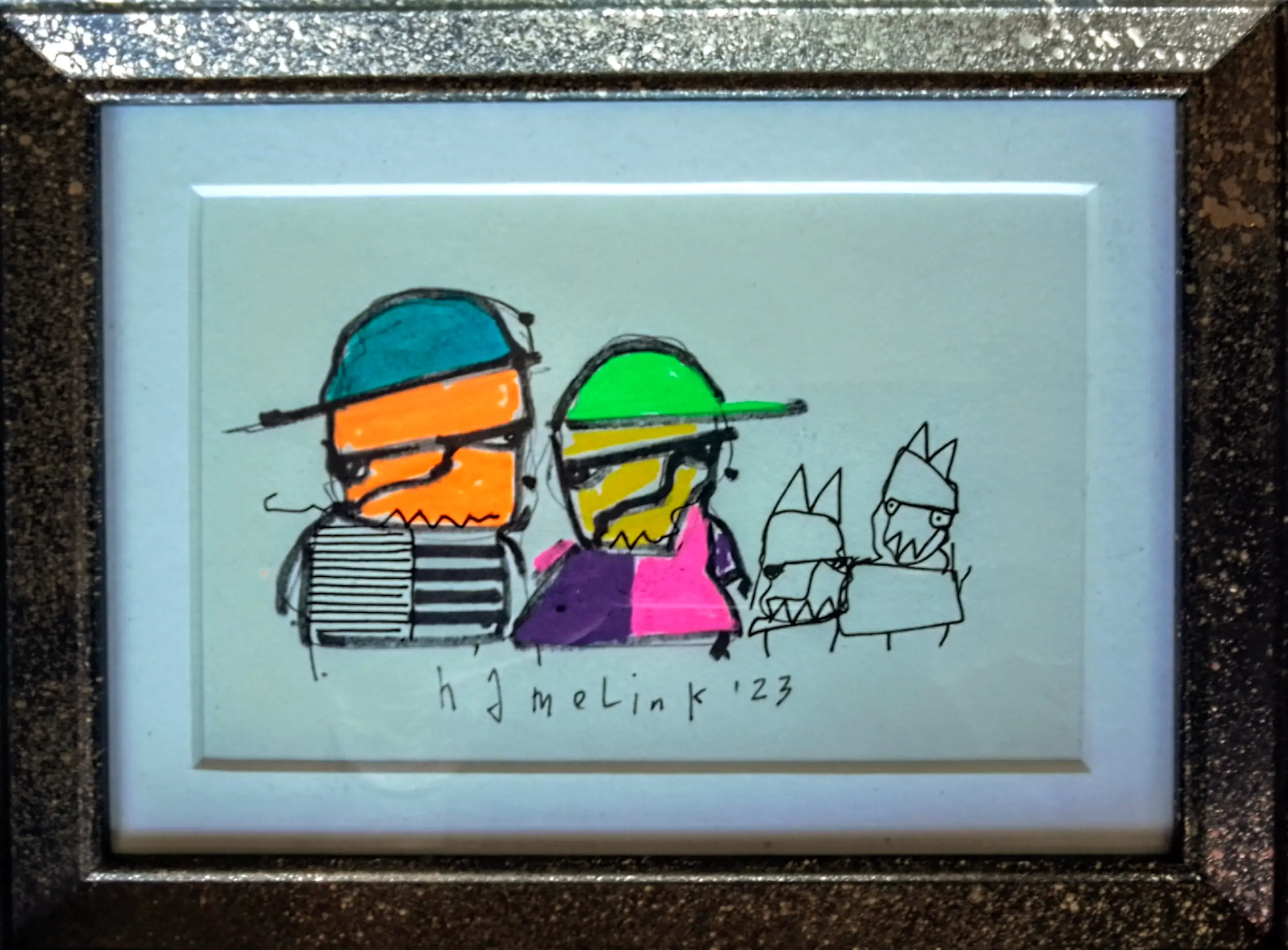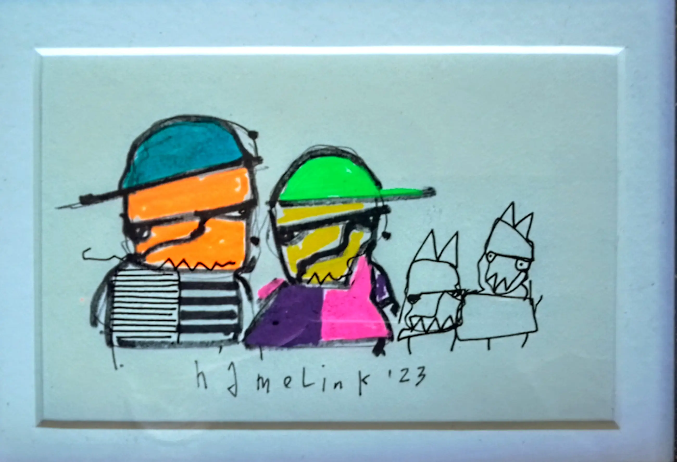 Een Kleine , leuk ,grappige, kleurige illustratie tekening. Inclusief een leuk lijstje. Gemaakt in 2023 met marker, acryl, inkt.