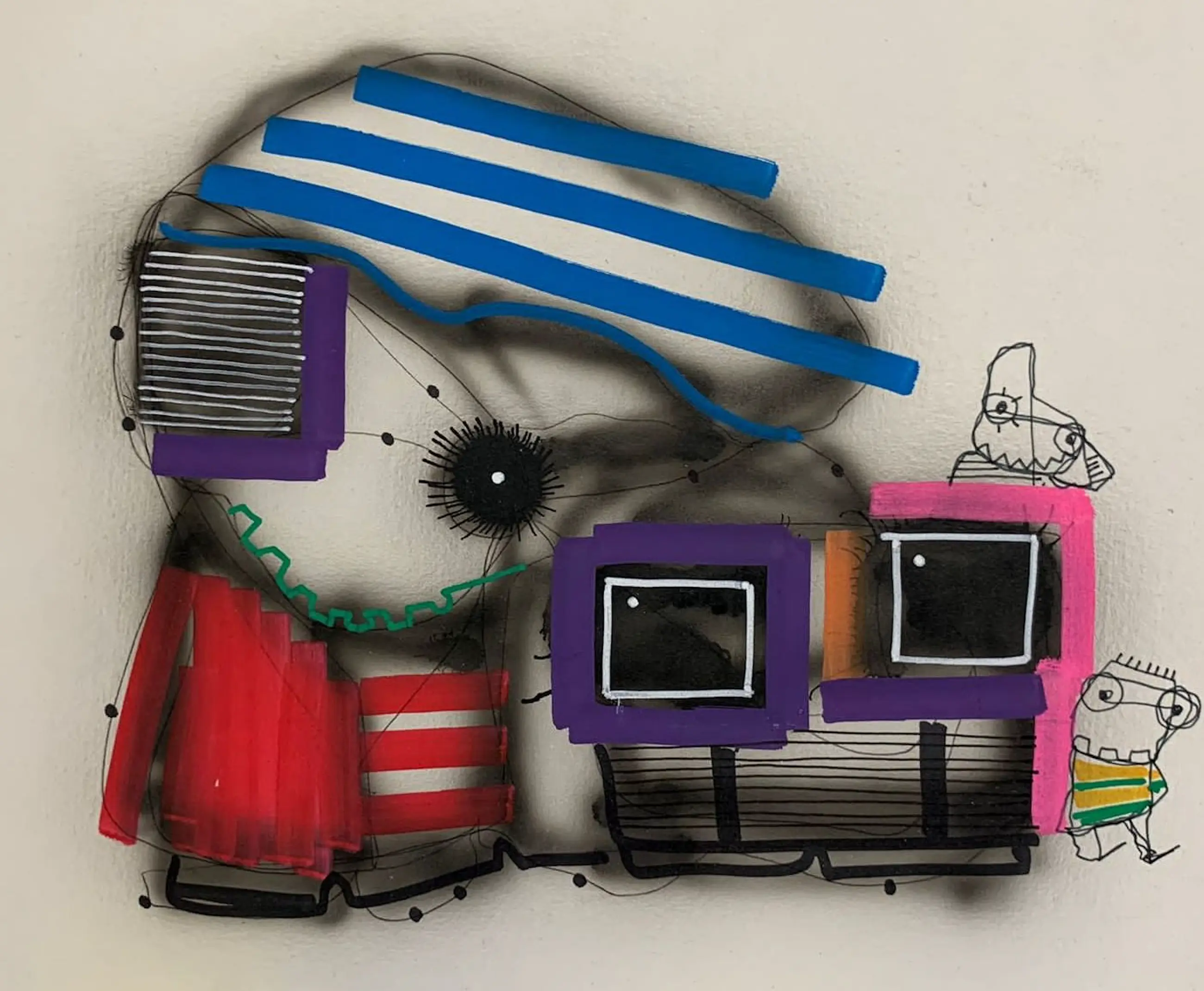 Orginele illustratie tekening van Hamelink. Getekend op papier en dan geplaatst vast op mdf. Handgemaakt in 2022 met airbrush, marker en acryl. Met aan de achterkant een ophang systeem (zie de foto).