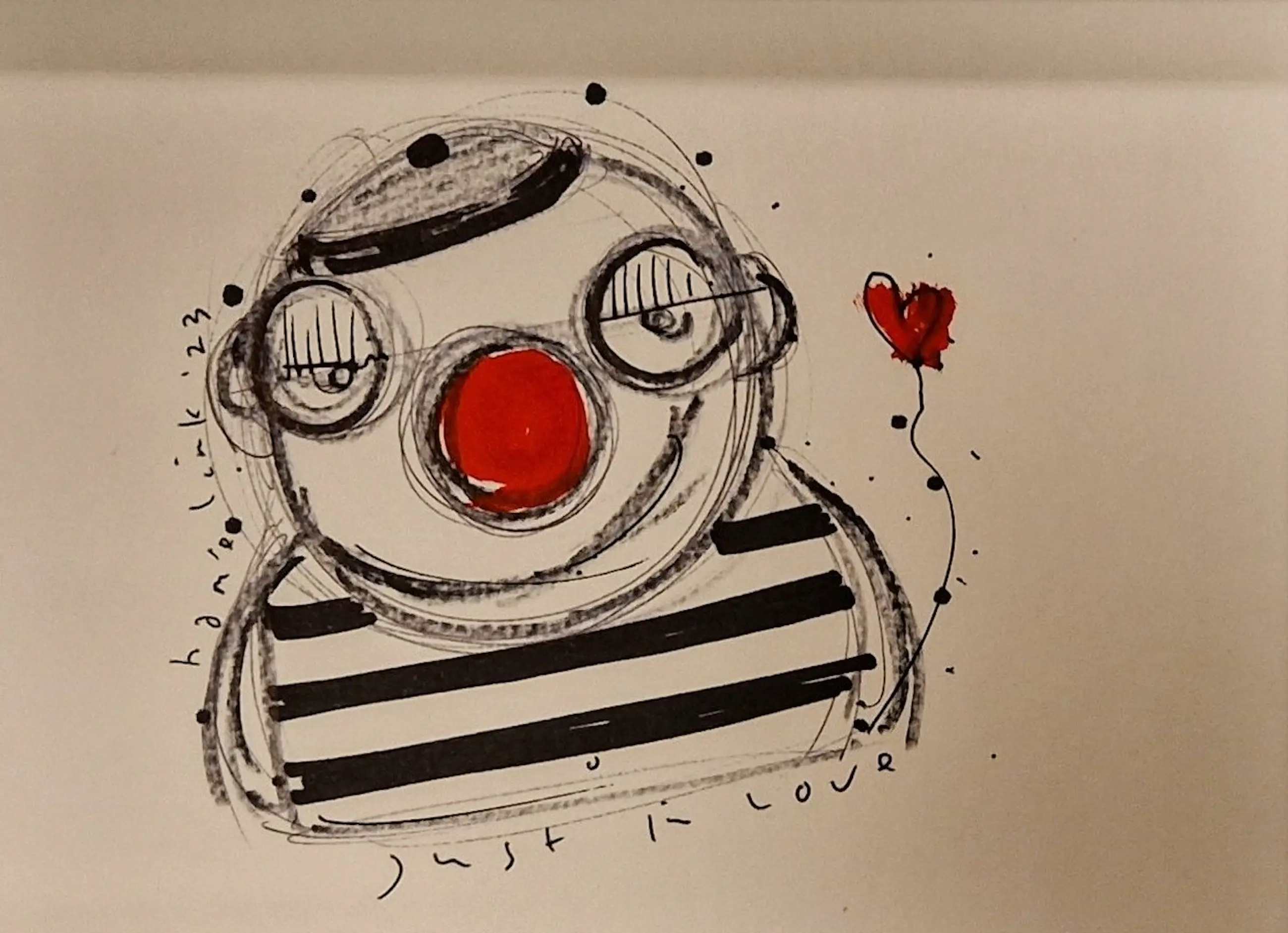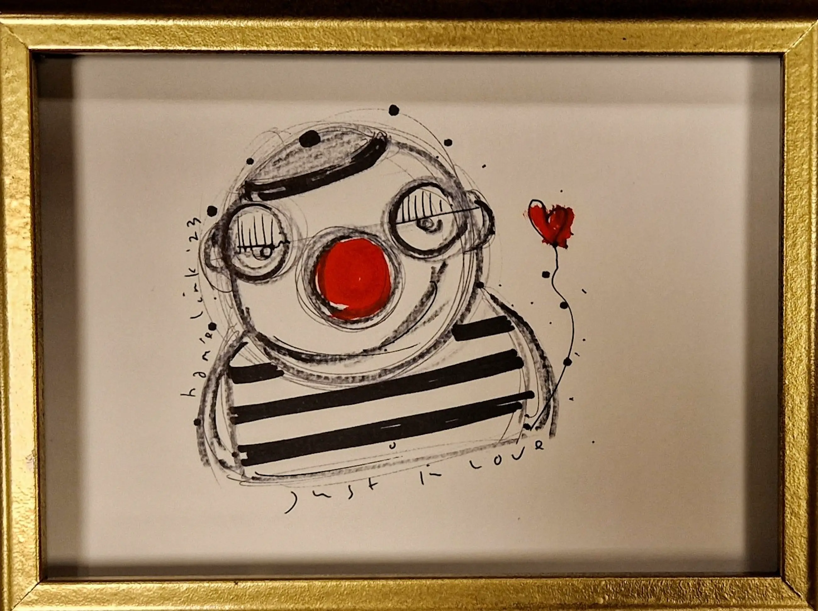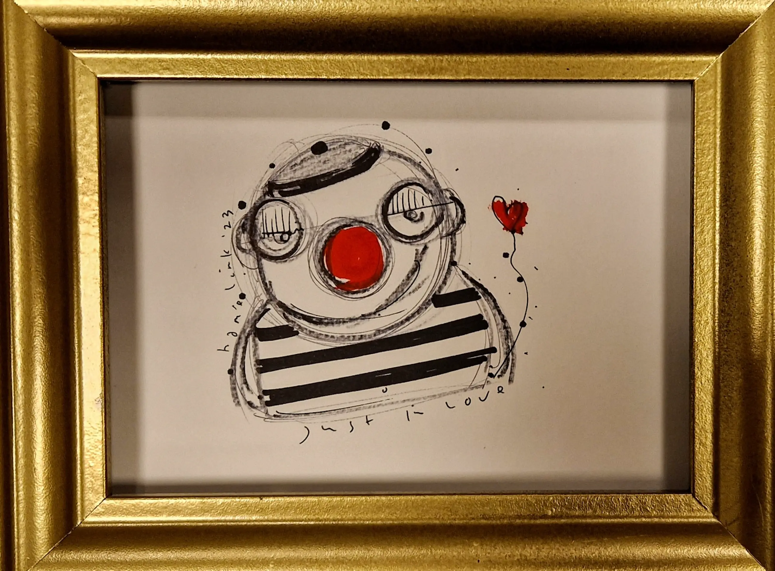 Orginele illustratie cartoon tekening van Hamelink. Een poppetje met de tekst er onder: Vind je mij leuk. Het werk is gemaakt op 250 gram papier met acrylverf en inkt . Verder is het werk in perfecte staat.