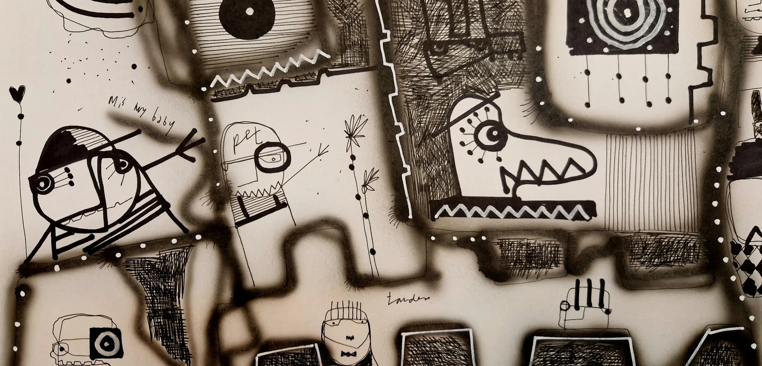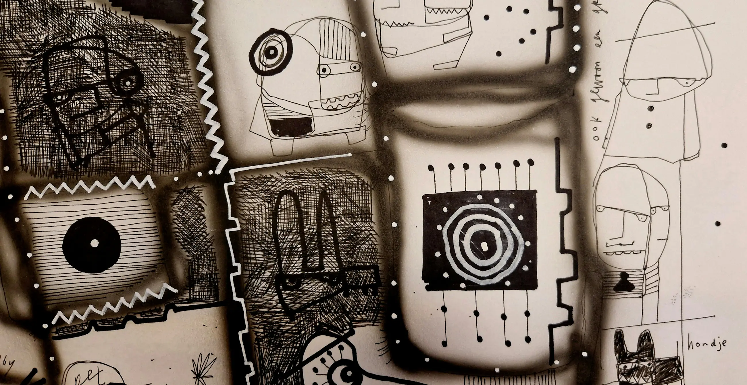 Soms voelt het leven als een gek labyrint. Vol lijnen, poppetjes, prikkels, verlangens, verbindingen, chaos en stilte. Alles door elkaar. Maar precies daarin vind ik mijn rust — op papier.