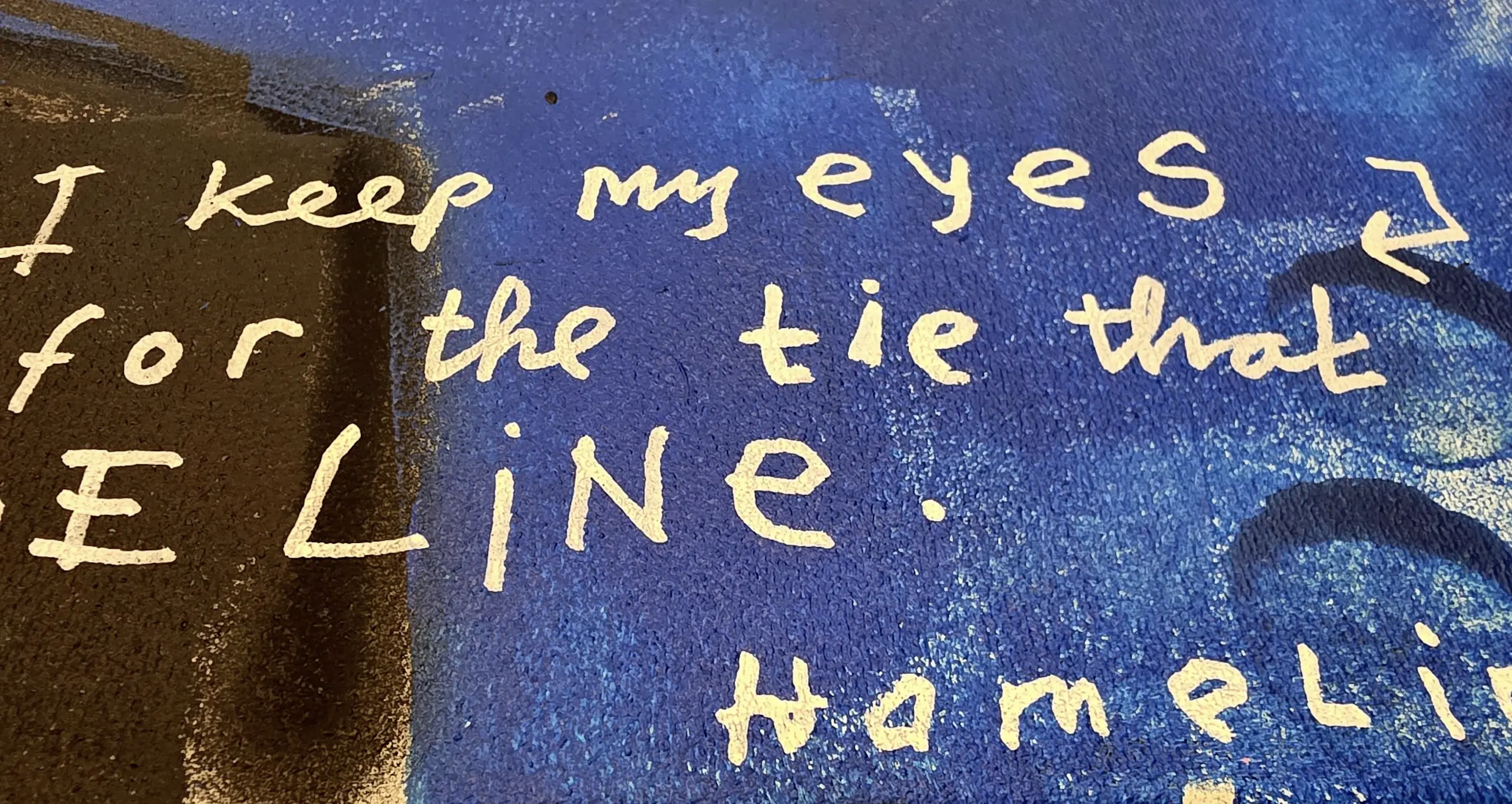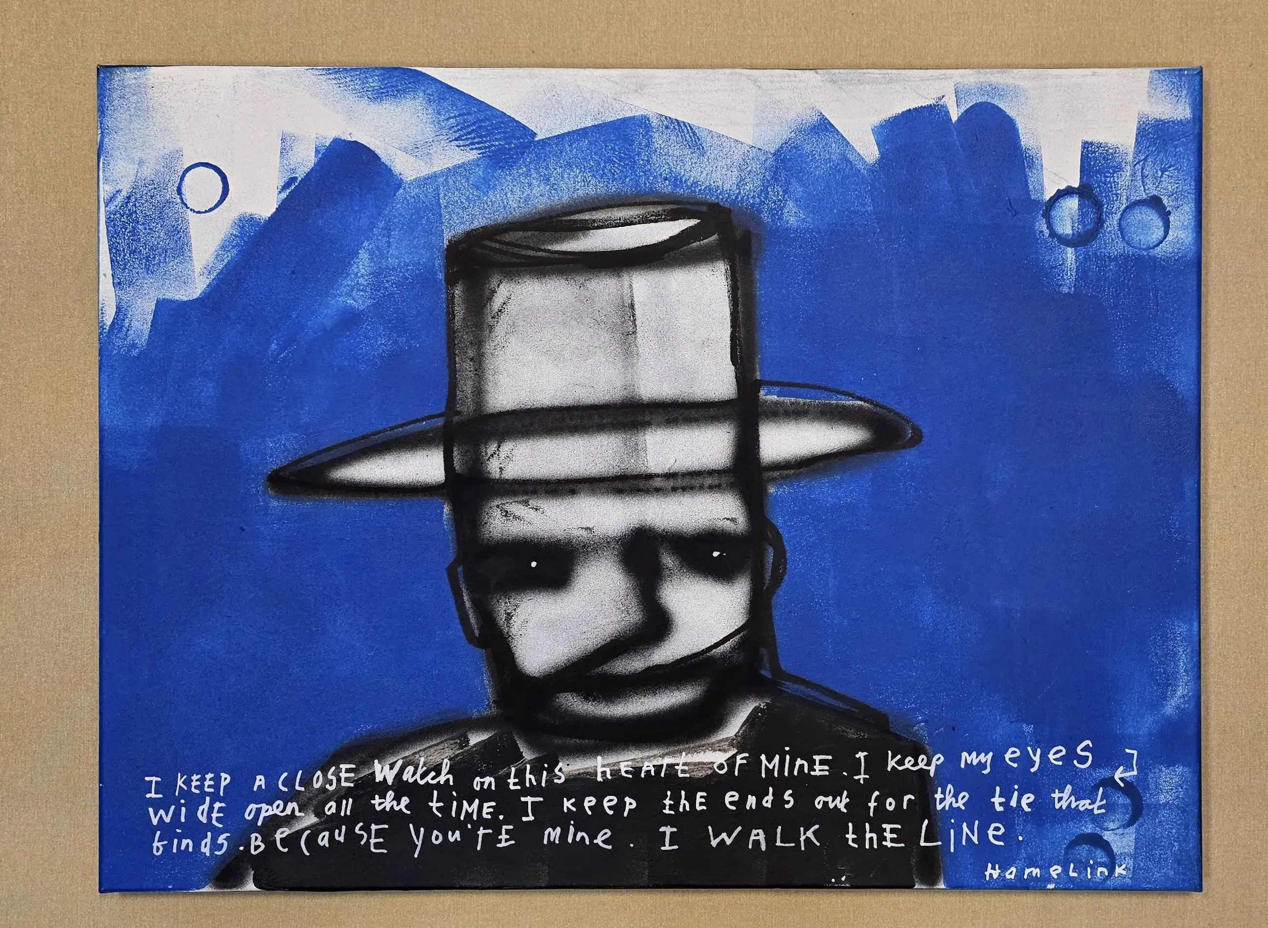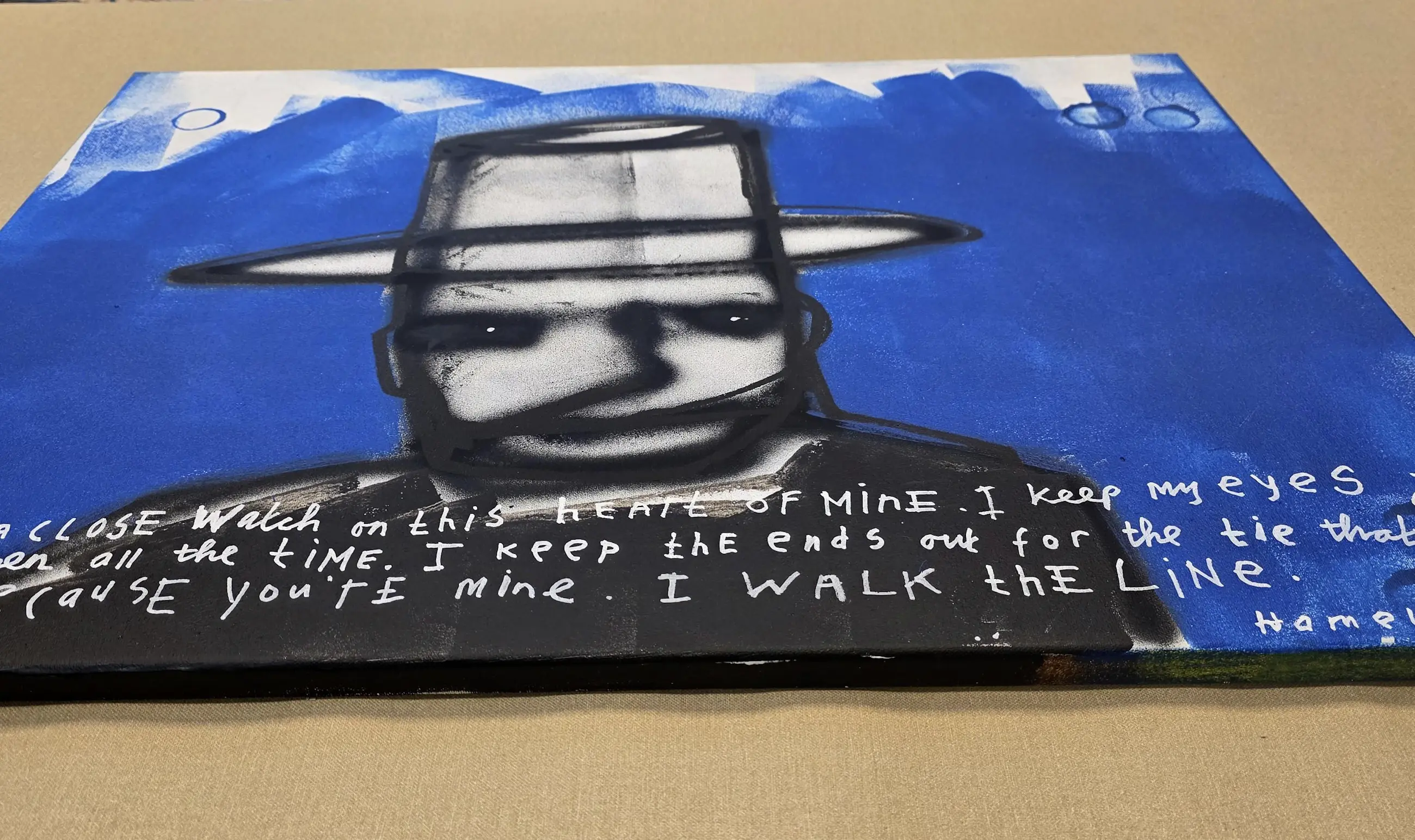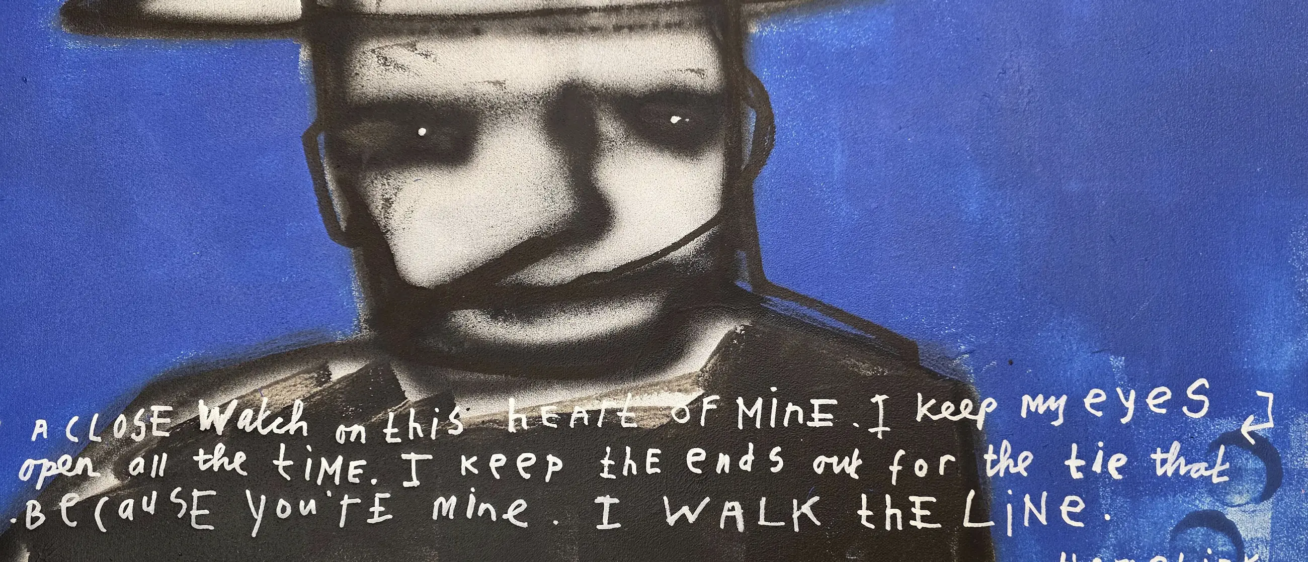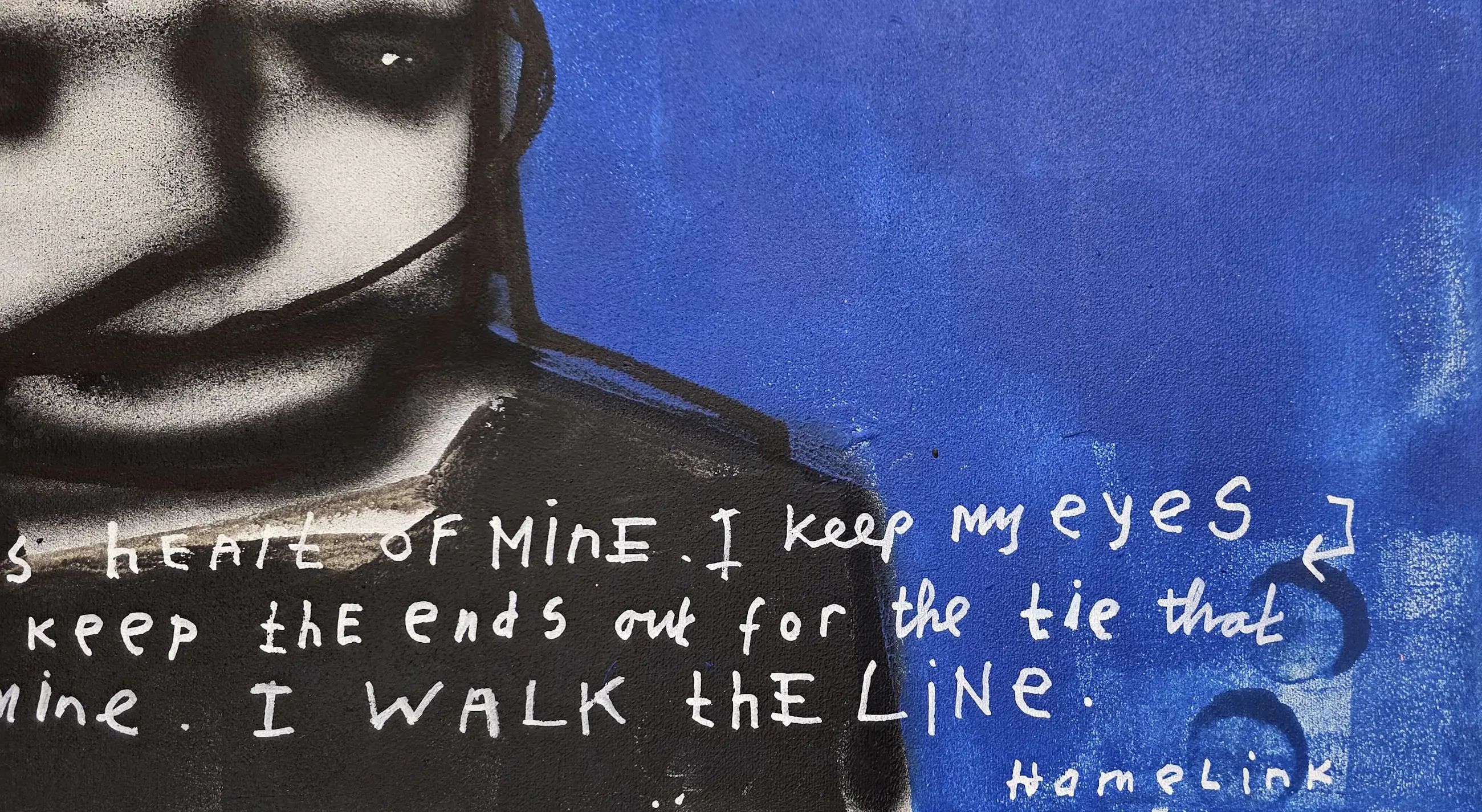 Dit werk gaat over trouw blijven aan jezelf en aan de mensen van wie je houdt. De tekst op het doek is geïnspireerd op het nummer I Walk the Line. Het gaat over grenzen bewaken, eerlijk blijven en kiezen voor liefde, ook wanneer het moeilijk wordt.