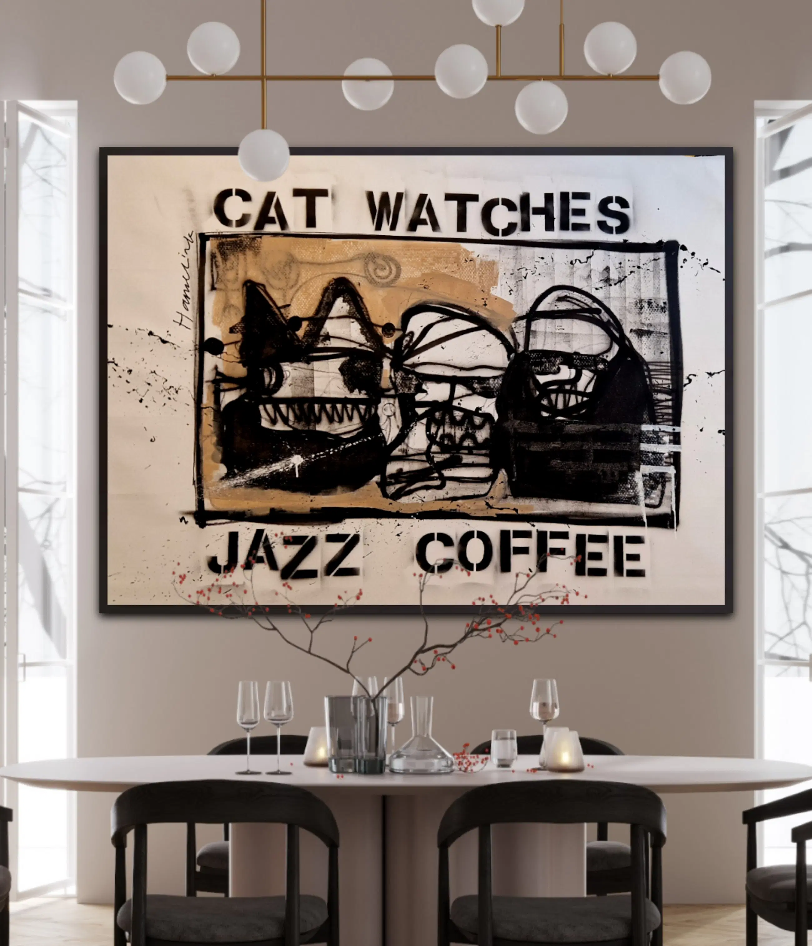 Dit werk ontstond tijdens één van die zondagochtenden die je bijblijven. De stad nog stil. Mijn kat roerloos in het ochtendlicht. Een dampende kop koffie in mijn hand. En Miles Davis op de achtergrond, terwijl zonnestralen zacht door de vitrages vielen — als een fluistering van rust. "Sunday Jazz & Quiet Company" ademt die sfeer van stilte en soul. De kleuren bewegen als een jazzimprovisatie. De figuur lijkt los van de tijd — volledig aanwezig in het moment, badend in licht, muziek en herinnering. Een ode aan de schoonheid van het kleine. Aan muziek die je ziel raakt. En aan gezelschap dat niet hoeft te spreken om te troosten. Perfect voor wie sfeer, warmte en soul in huis wil halen. Houd er rekening mee dat het kunstwerk wordt geleverd zonder spieraam om de verzendkosten te verlagen en beschadiging te voorkomen. Het werk is gemaakt op een stuk katoenen canvas van (165 cm x 120 cm). Het doek wordt voorzichtig opgerold en stevig verpakt in een stevige vierkante buis voor verzending. Levering is zonder spieraam! Dit beschermt het stuk tijdens transport tegen beschadiging en verlaagt de verzendkosten aanzienlijk. Het risico op schade wordt geminimaliseerd, terwijl wordt verzekerd dat het kunstwerk veilig op zijn bestemming aankomt. Elk kunstwerk wordt geleverd met een echtheidscertificaat, persoonlijk ondertekend door Bart Hamelink, waarmee de originaliteit en waarde van het stuk worden bevestigd. De afbeeldingen die hier worden getoond, zijn voorbeelden van hoe het kunstwerk eruit zou kunnen zien wanneer het ingelijst en aan de muur wordt opgehangen.