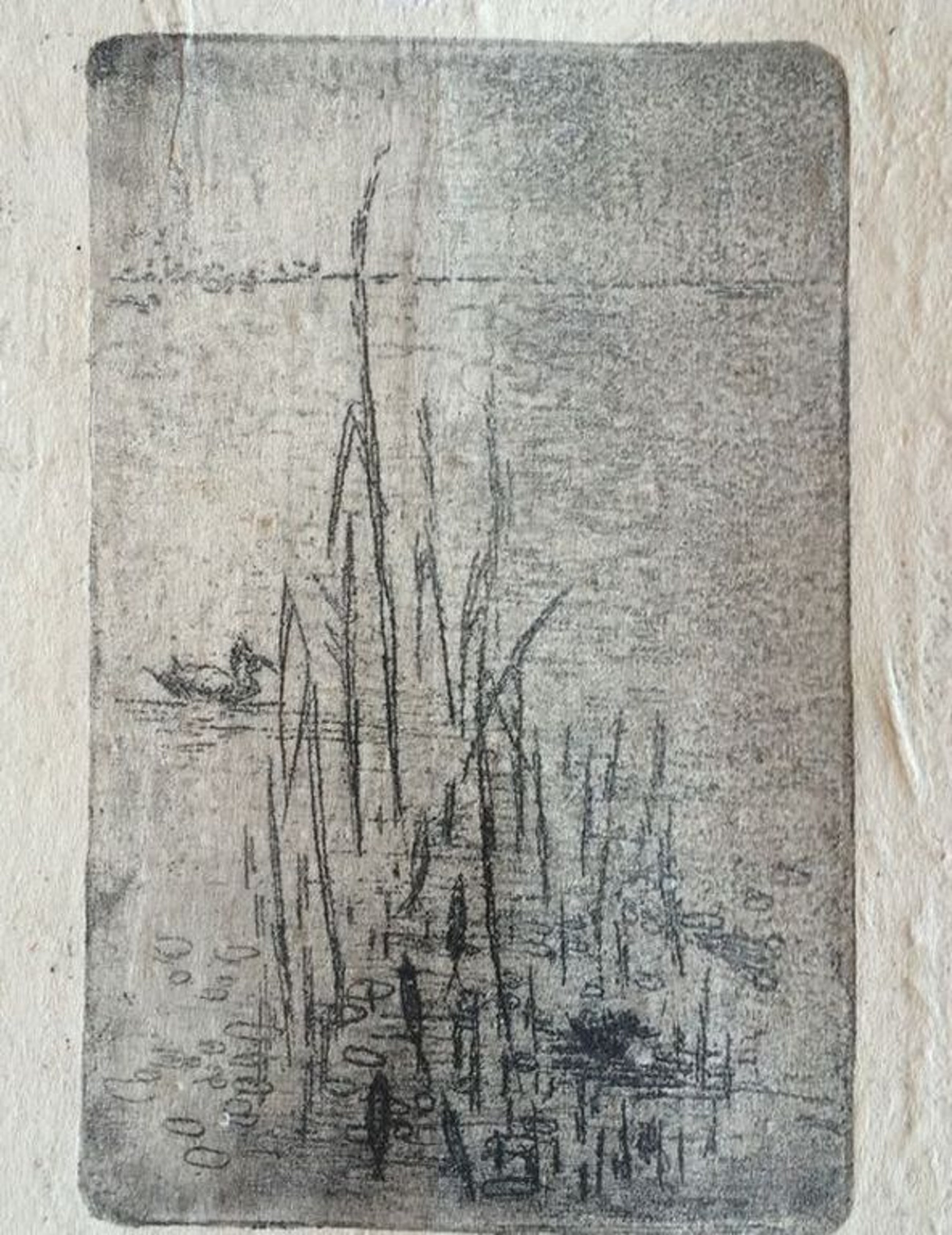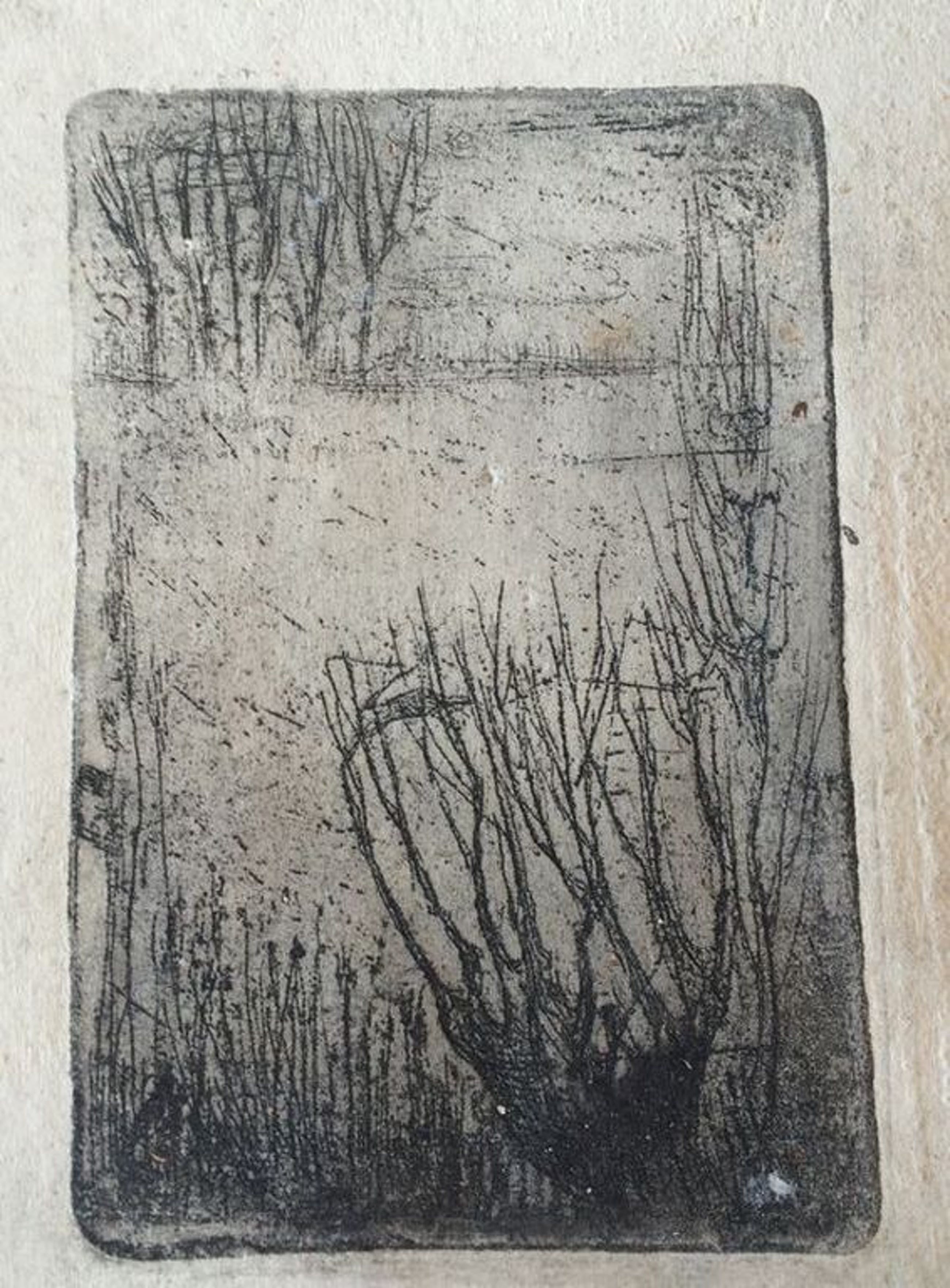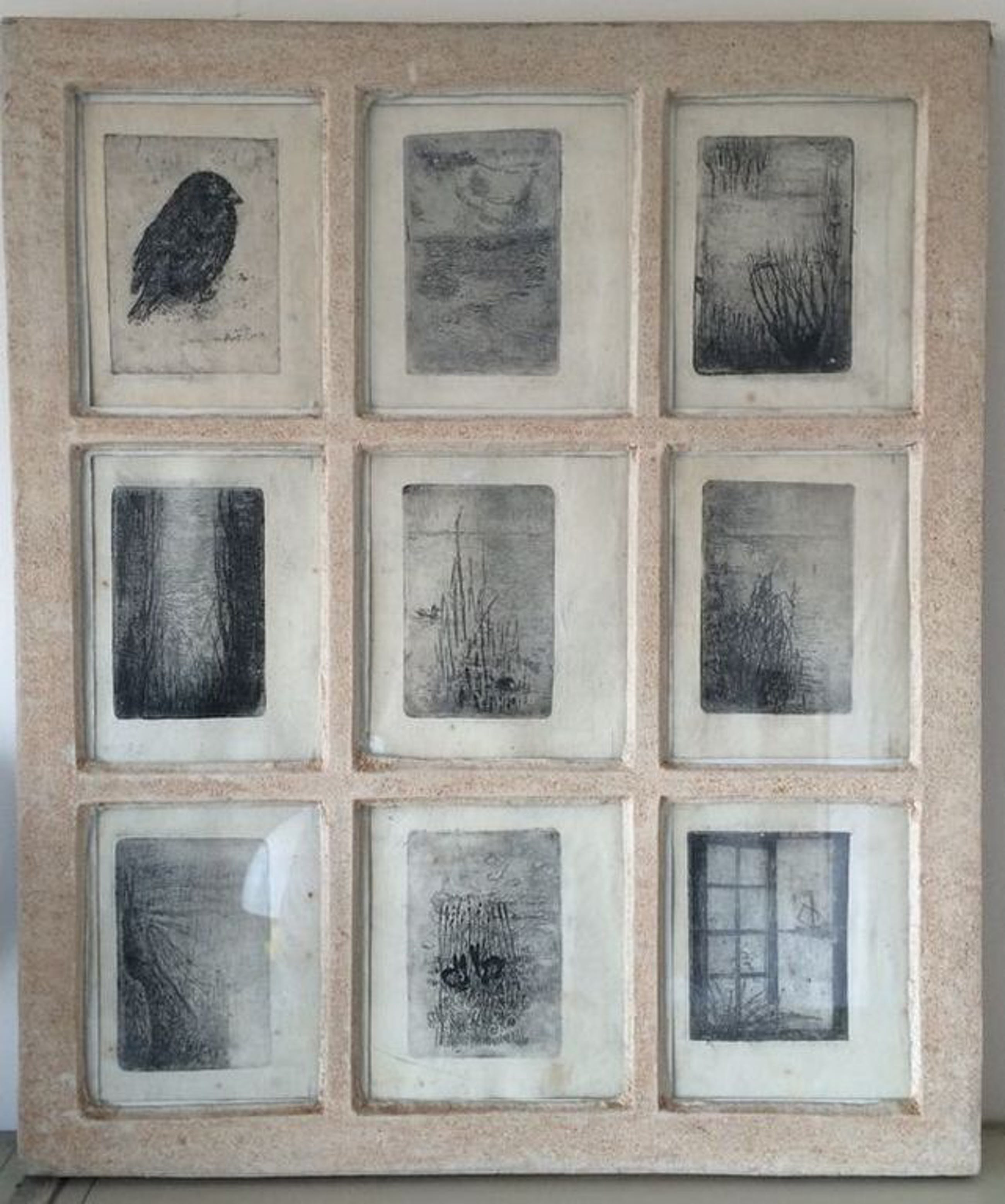 Negen etsen op handgeschept papier in een door de kunstenaar, Bertus Jonkers, hand gemaakte lijst.