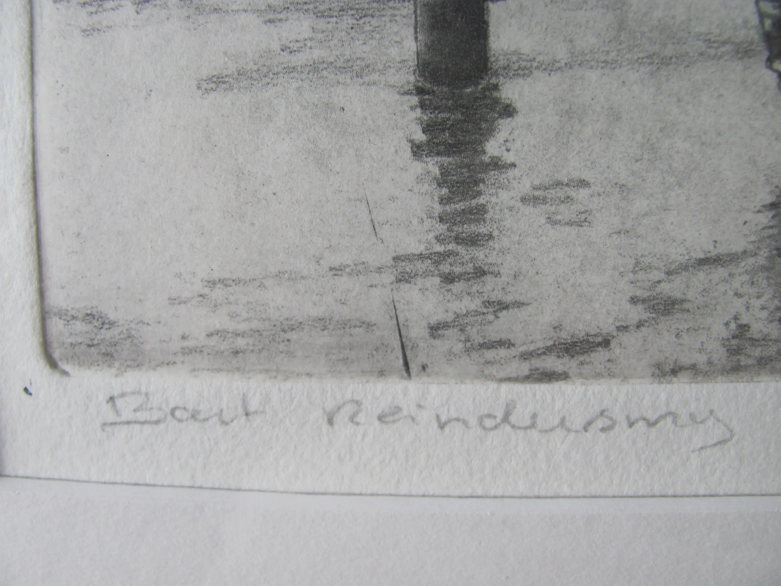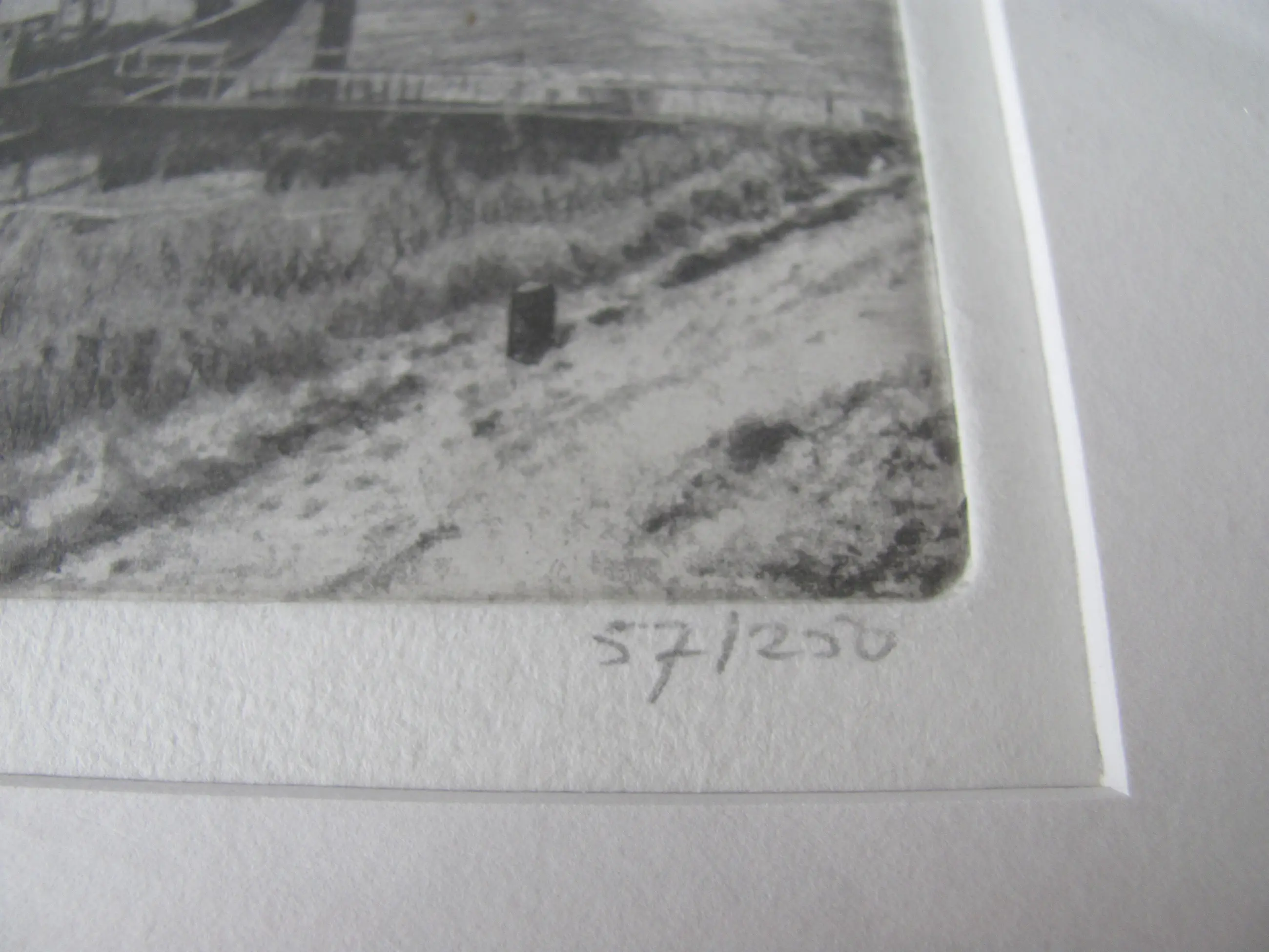Ets van Bart Reindersma van de sluizen in IJmuiden. Linksonder hand gesigneerd Midden onder getiteld Rechtsonder genummerd (57/250).