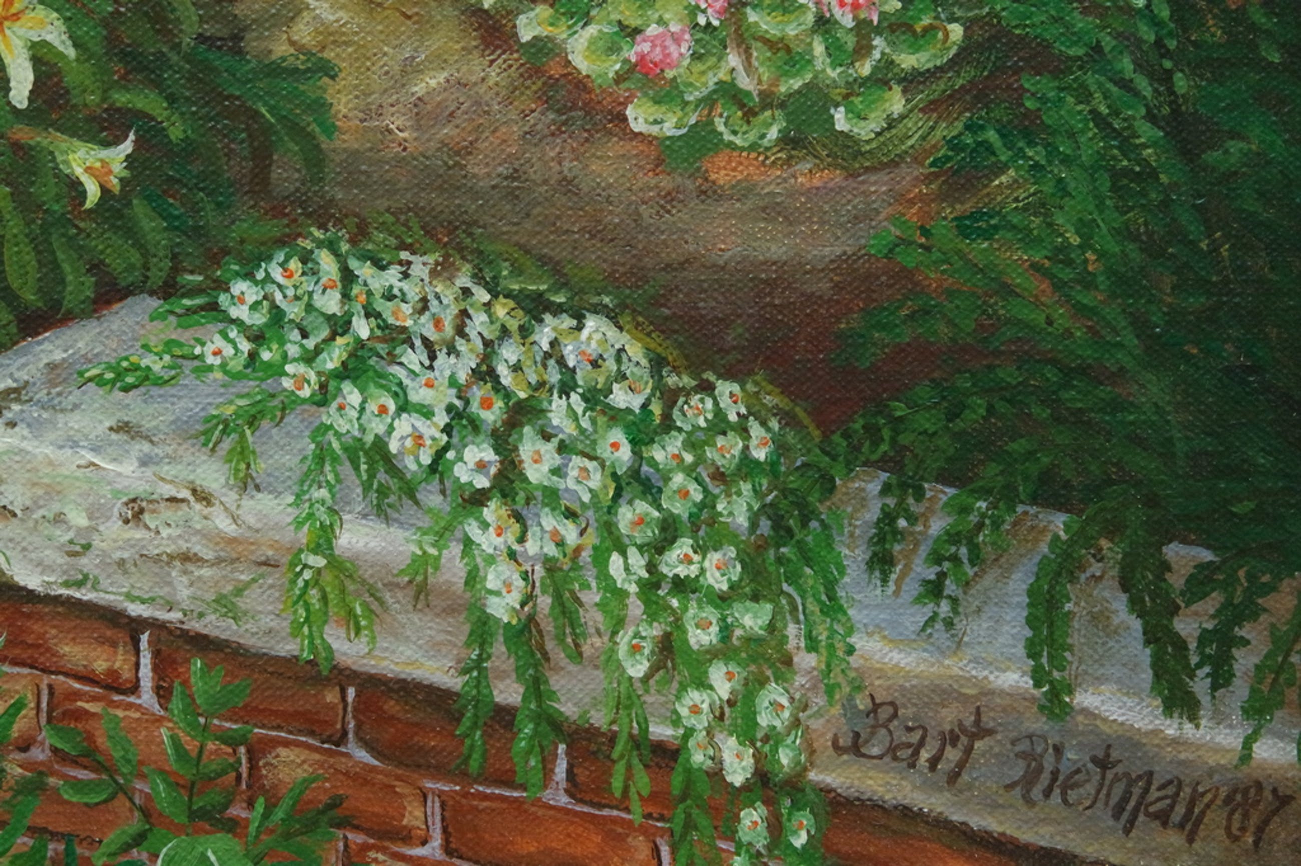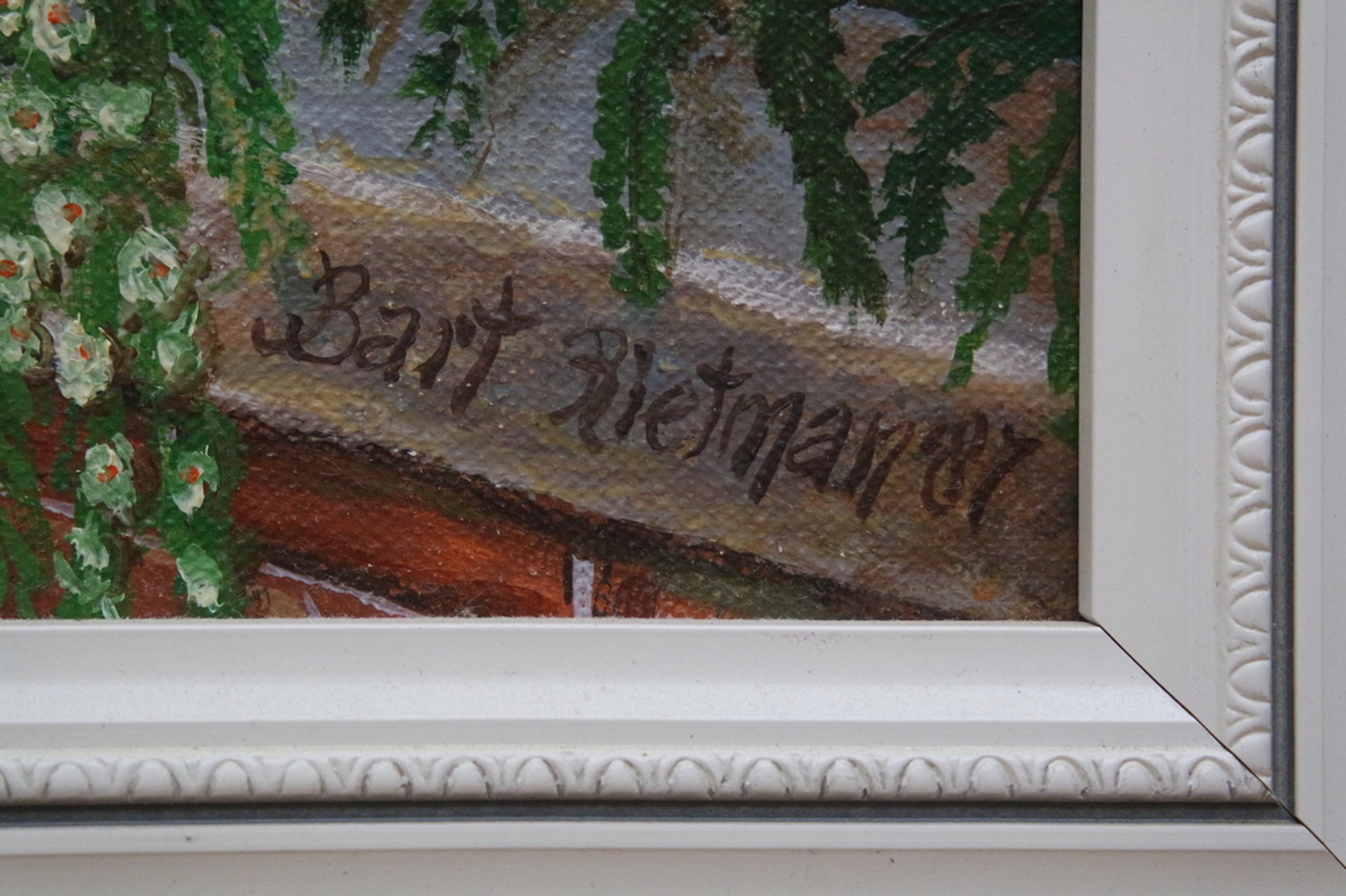 Een werkelijk schitterend straatgezicht ('Broek in Waterland') van de Nederlandse kunstenaar Bart Rietman (1933). Met een mooie lijst. Gesigneerd rechts onder en gedateerd 1987. Afmetingen met lijst: 66 cm. x 86 cm. Doekmaat: 50 cm. x 70 cm. Conditie doek: heel goed. De lijst heeft enkele gebruikerssporen. Het kunstwerk kan verzonden of afgehaald worden. De echtheid wordt 100% gegarandeerd door verkoper.