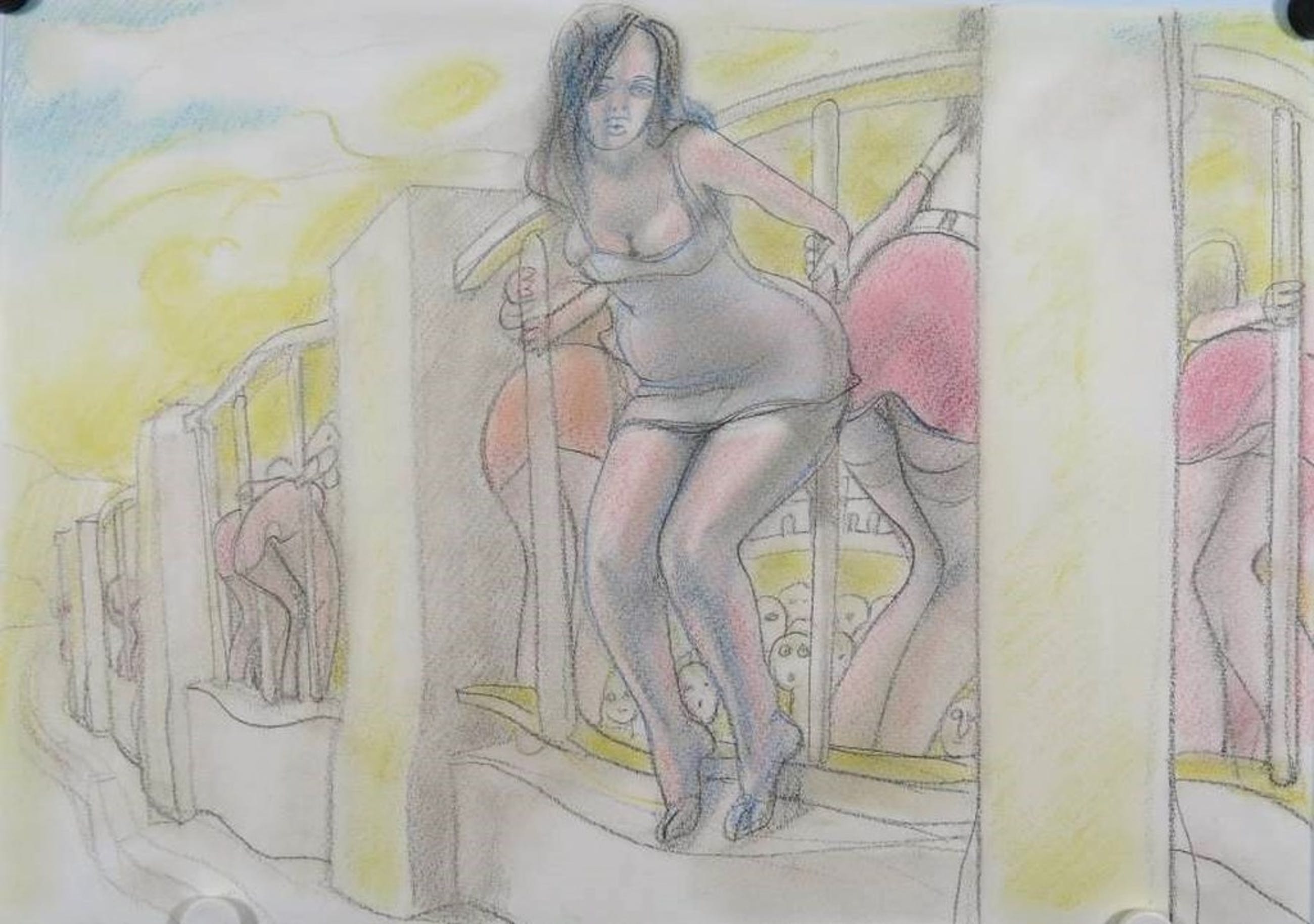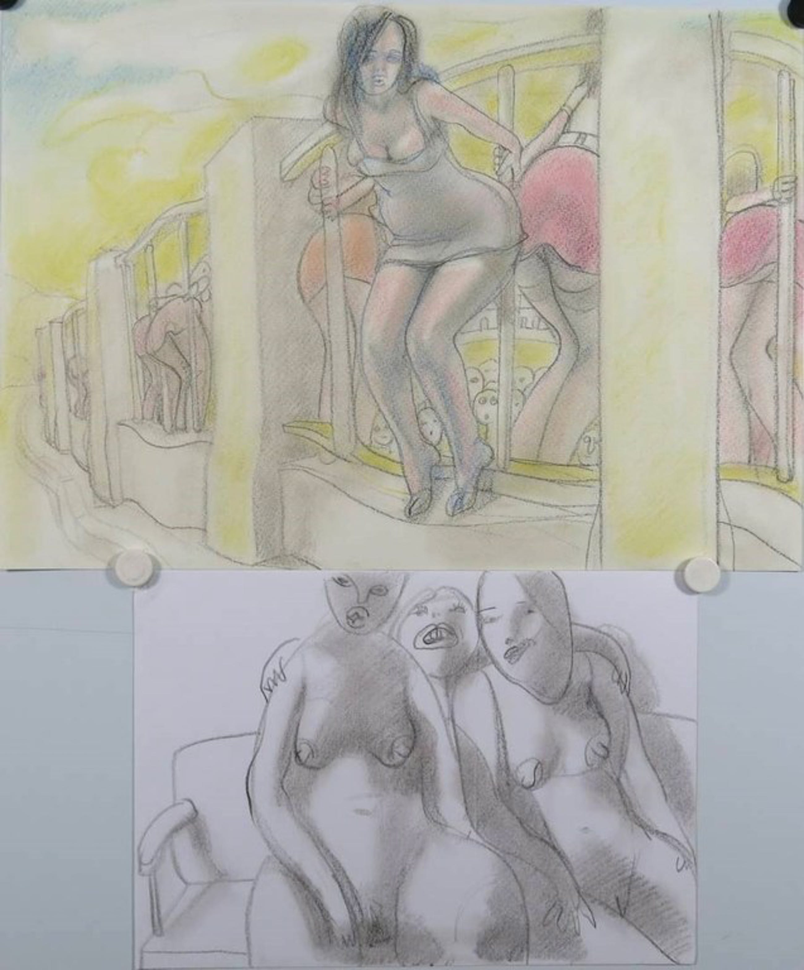 2 potloodtekeningen Kunstenaar Bart van Hoek. Niet gesigneerd, maar bij mijn weten signeert Bart van Hoek zijn werk niet. De onderwerpen zijn meestal erotisch, zo ook op deze tekeningen.