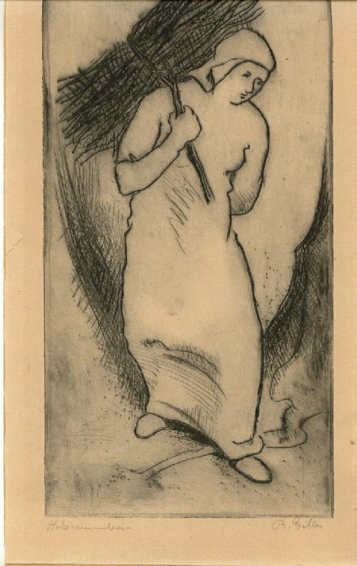 Barthel Gilles Radierung Links unten bezeichnet Holzsammlerin, rechts eigenhändig B.Gilles signiert. Papier gebräunt, rückseitig umlaufend Montagerest. Beim Öffnen vom Glas ist mir leider links ein etwa ein cm langer Einriss passiert.(Um es aus dem total kaputten Rahmen, so erhalten damals nach der Auktion von Venator und Hanstein, zu holen.) Plattengröße etwa 15 mal 29,8 cm.Fragen bitte vorab klären.Privatverkauf aus Privatsammlung. Versand 8 Euro.