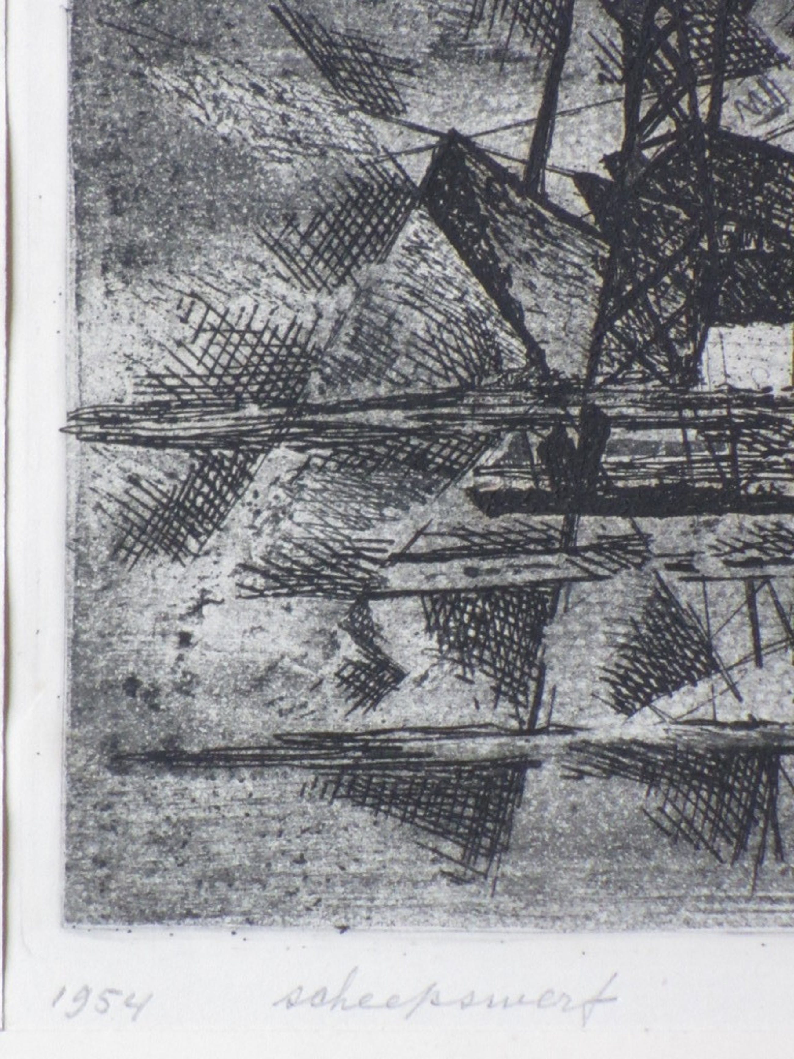 Gesigneerd r.o., getiteld en gedateerd l.o. '1954'