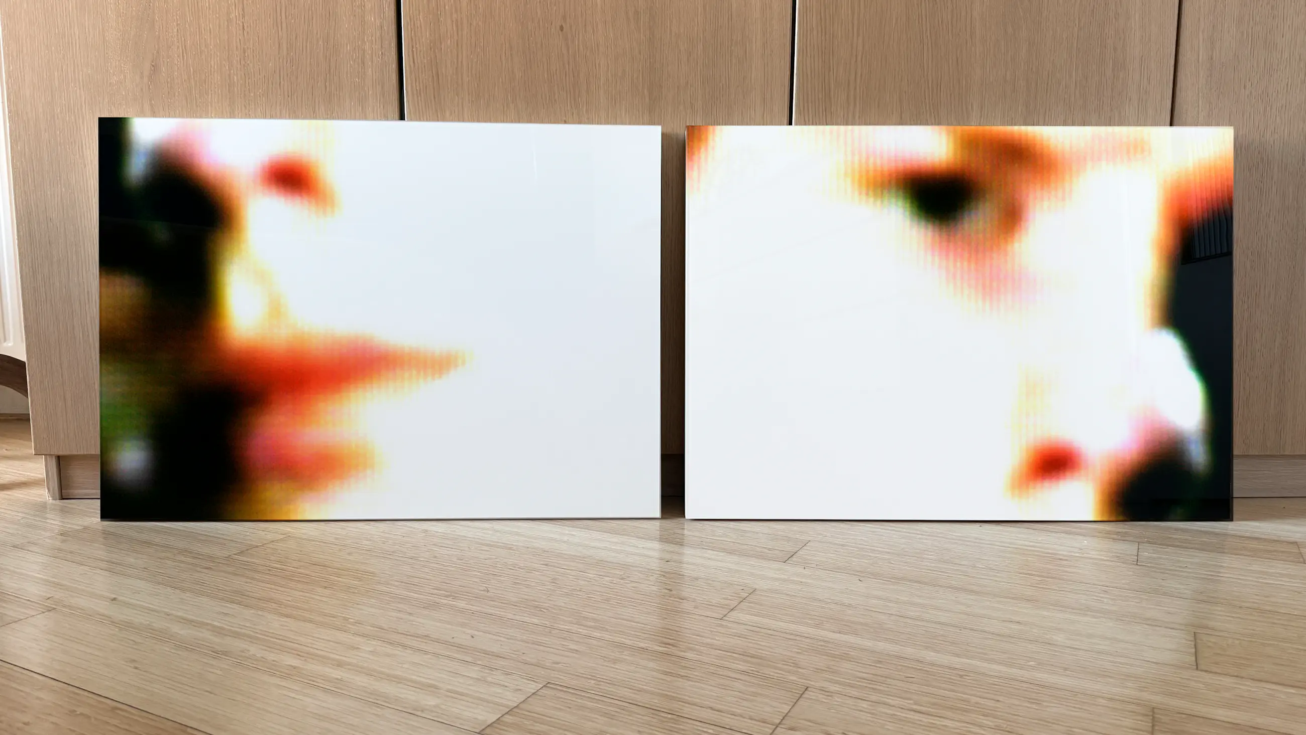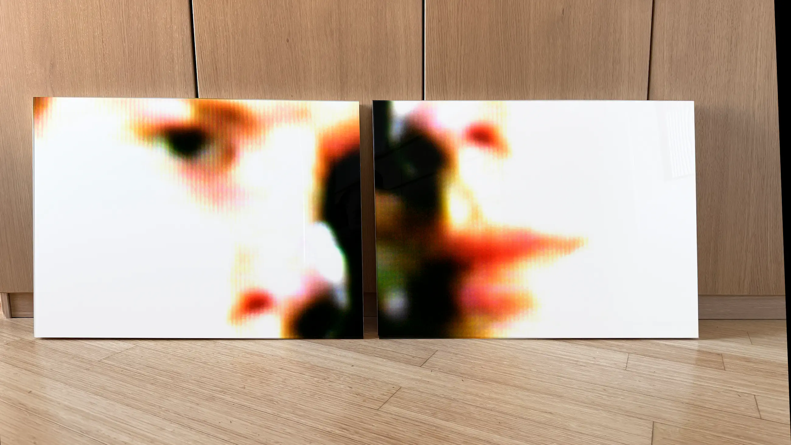 Filmische stills, fotoprint op gespoten MDF afgewerkt met een plexiglazen beschermlaag