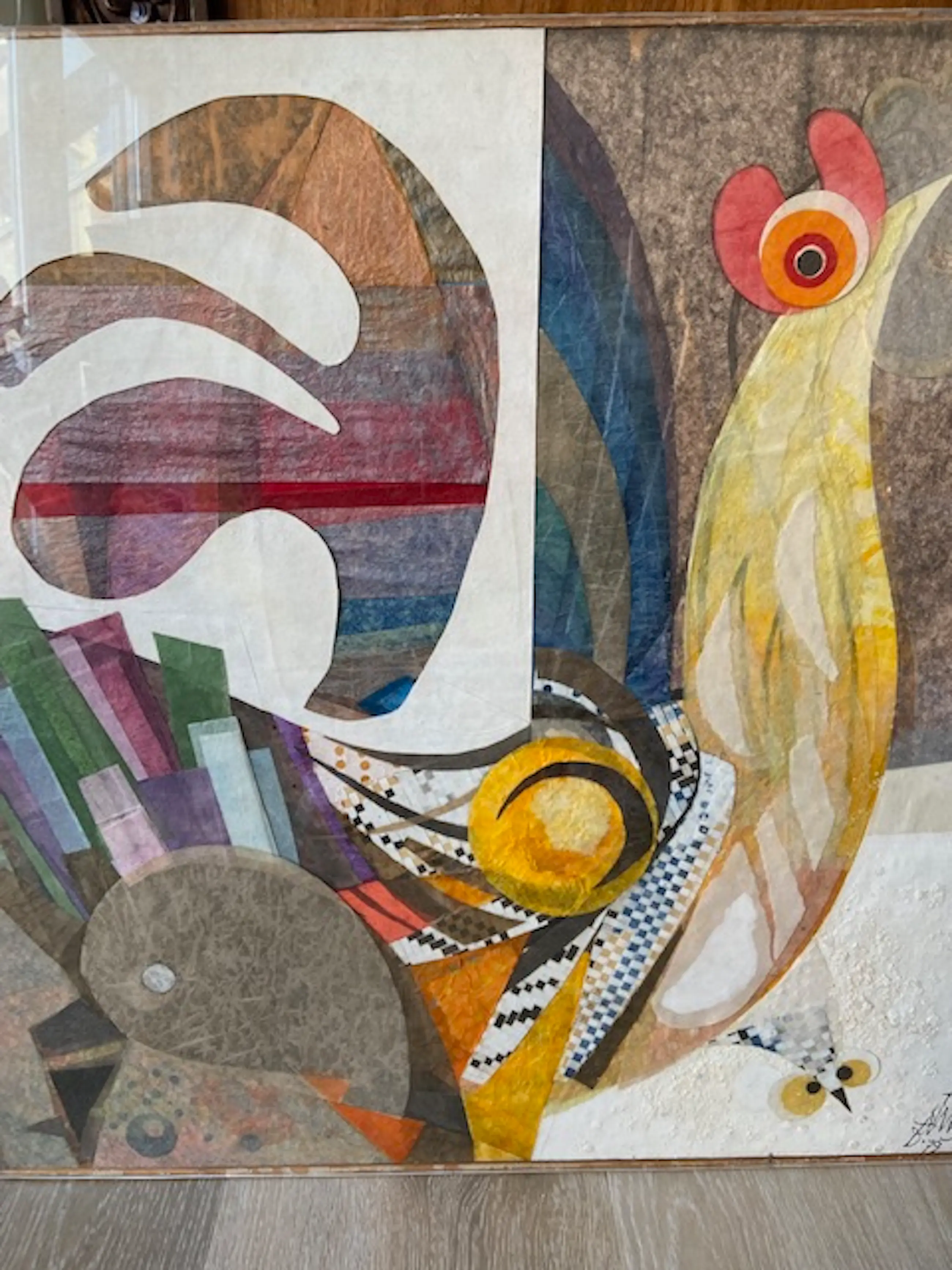 Een mengeling van materialen en toepassingen. De kleurrijke haan is te herkennen.