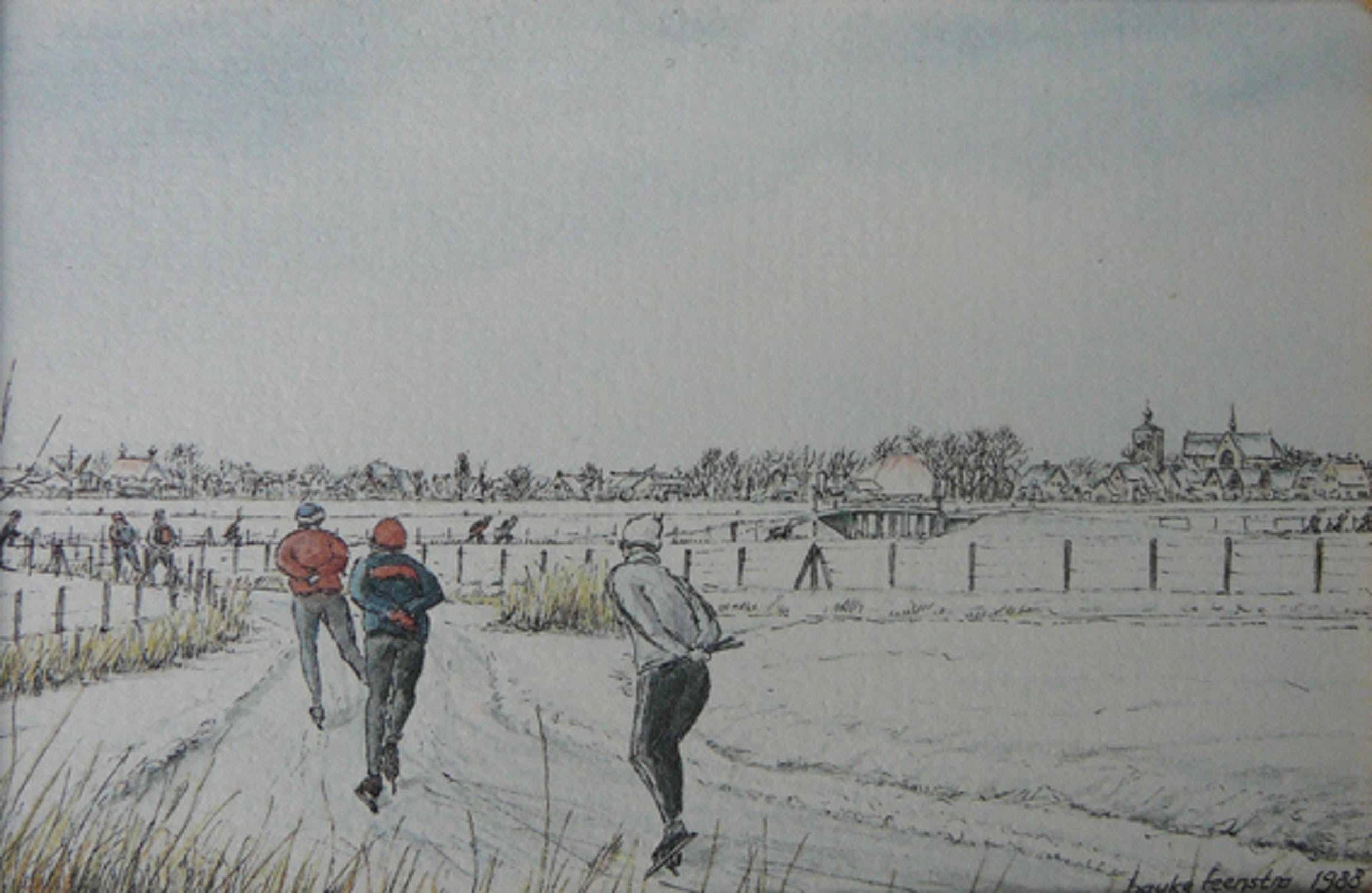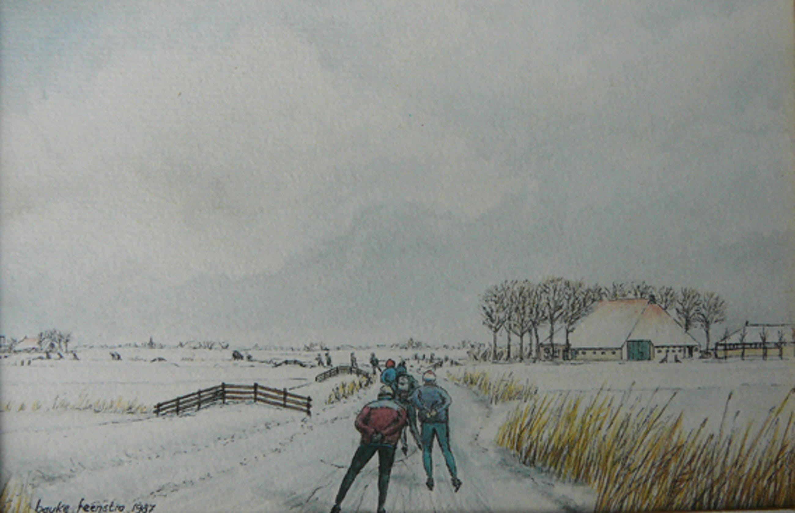 4 aquarellen in de maat 13 x 9 cm gevat achter 1 passe-partout, allen gesigneerd en gedateerd 1986 (elfstedentocht), 1987, 1988 en 1991. In prima conditie. Achter glas. Bij voorkeur af te halen in Utrecht of verzenden.
