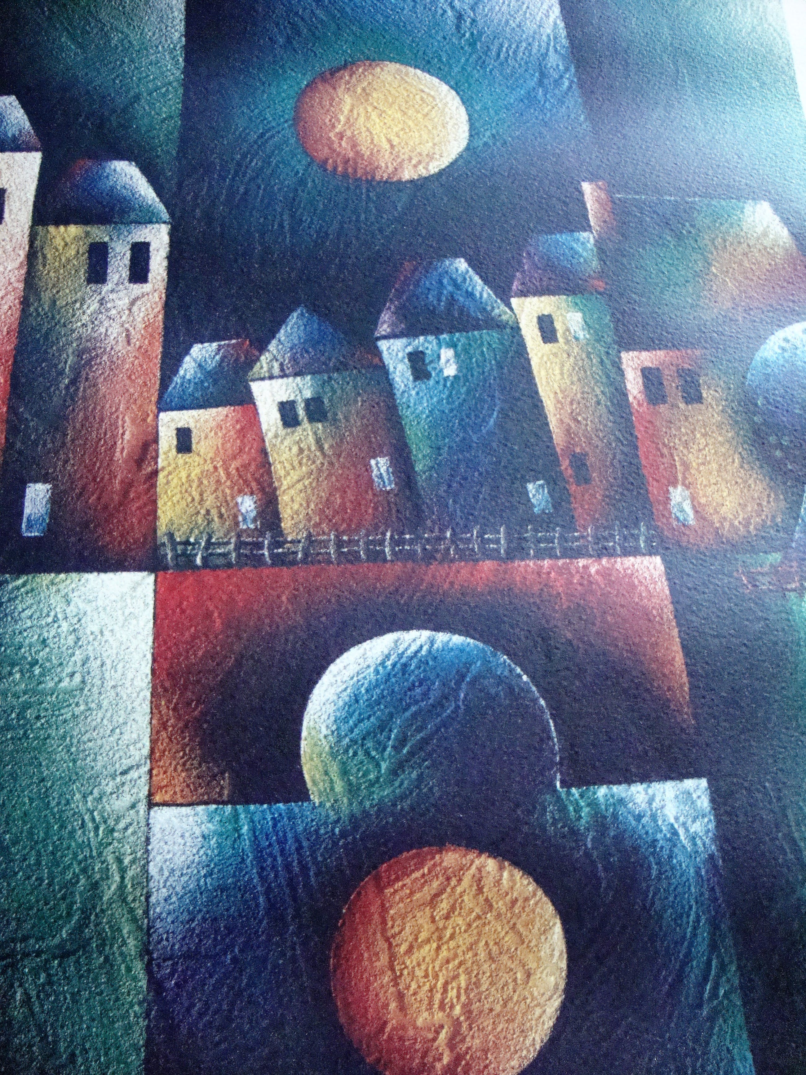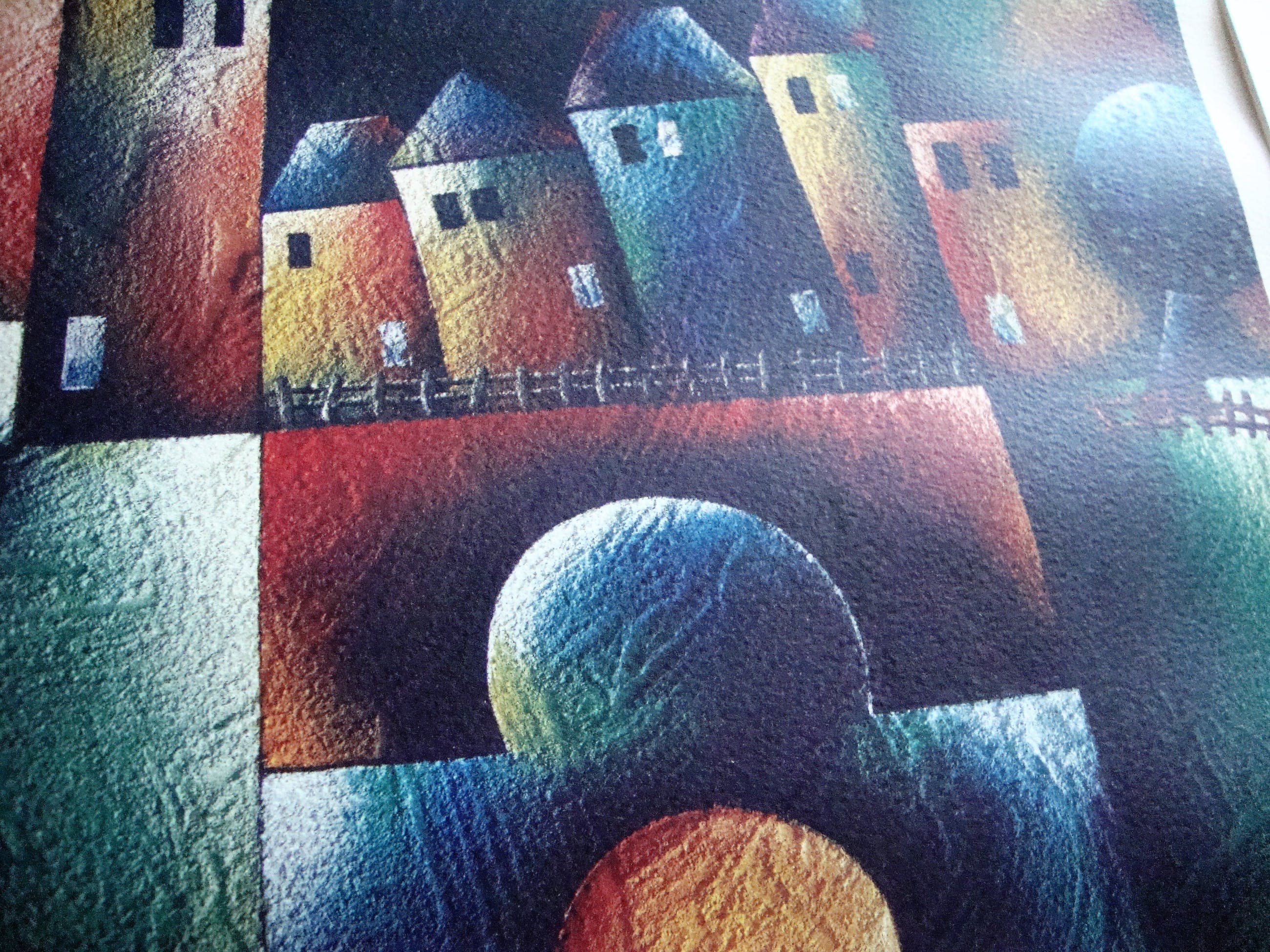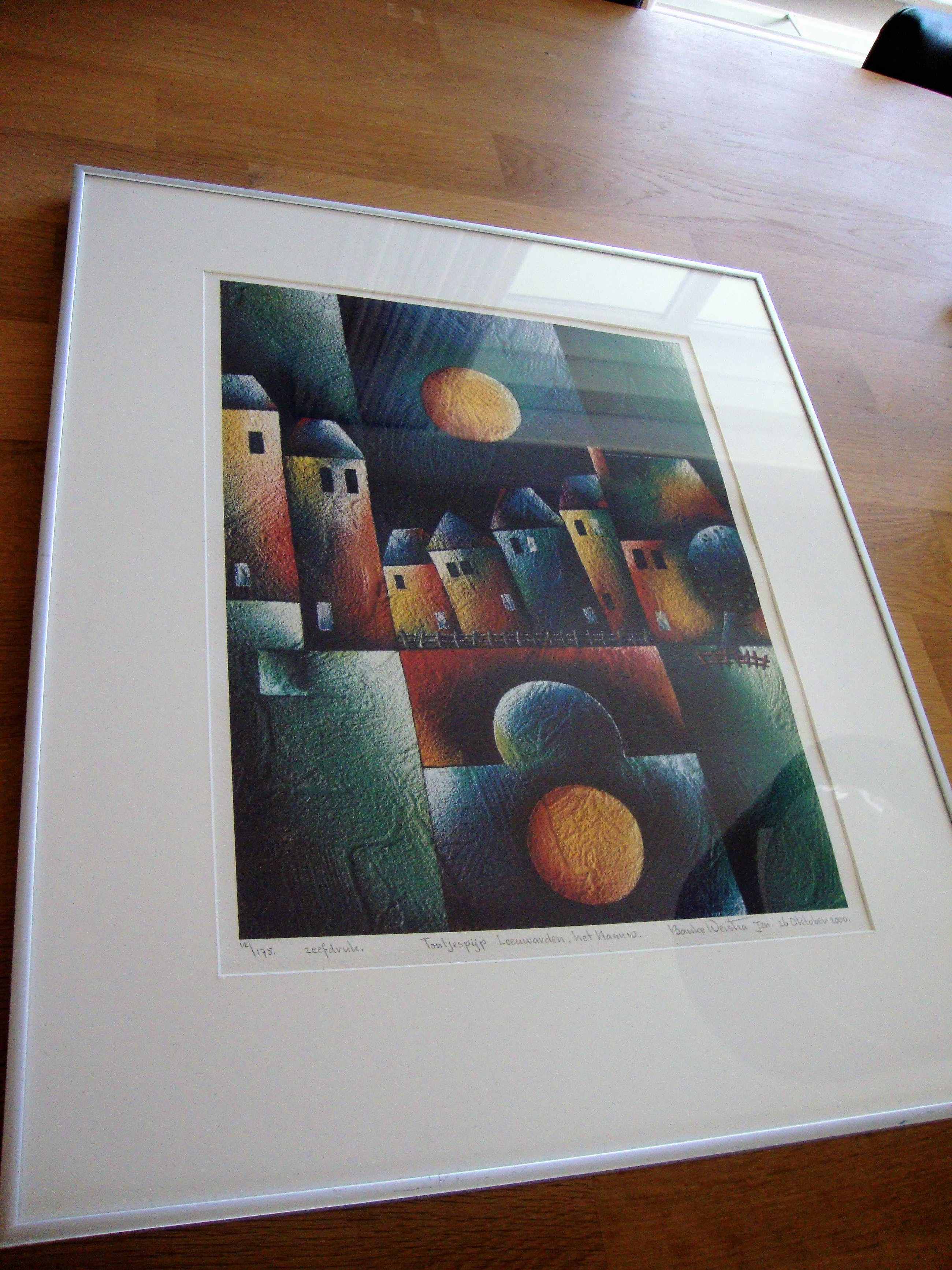 Met potlood gesigneerde zeefdruk 12/175 Bauke Weistra Jzn. d.d. 26 oktober 2000. Naar het originele schilderij "Fontjespijp Leeuwarden". De druk is gerealiseerd op zwaar kunstdrukpapier en met een passe-partout, achter glas ingelijst in een aluminium lijst.