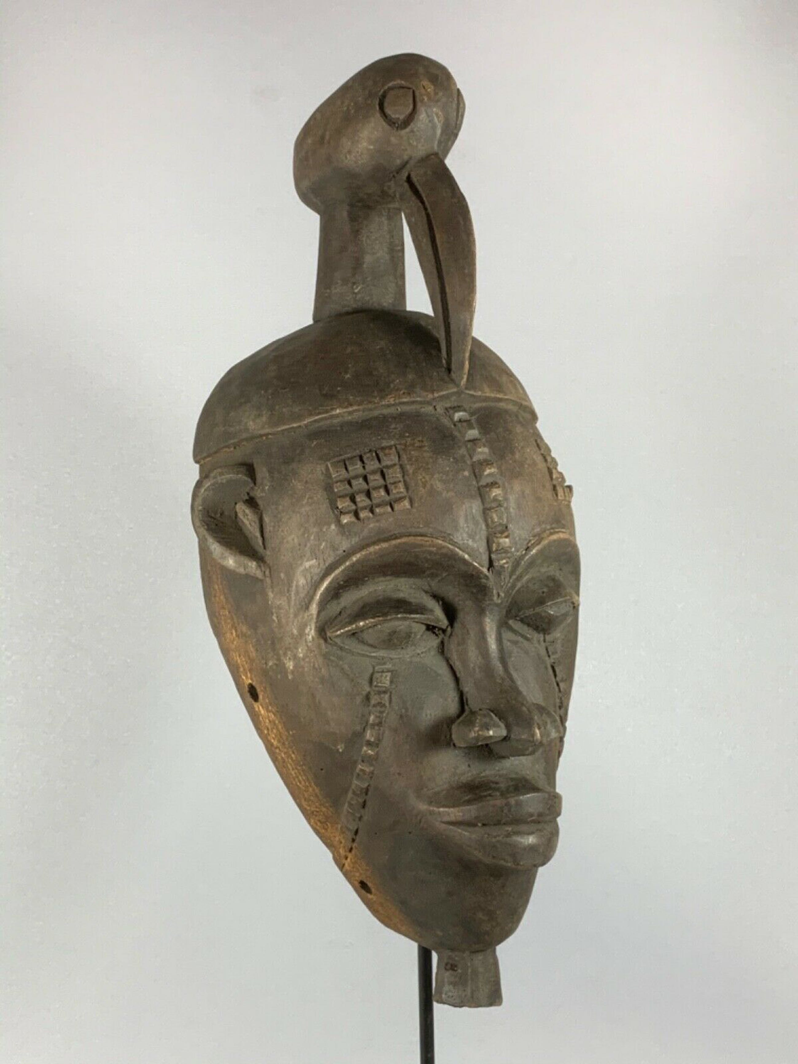 EIv. Coast: Rare and Old Tribal used African Baule bird mask.
