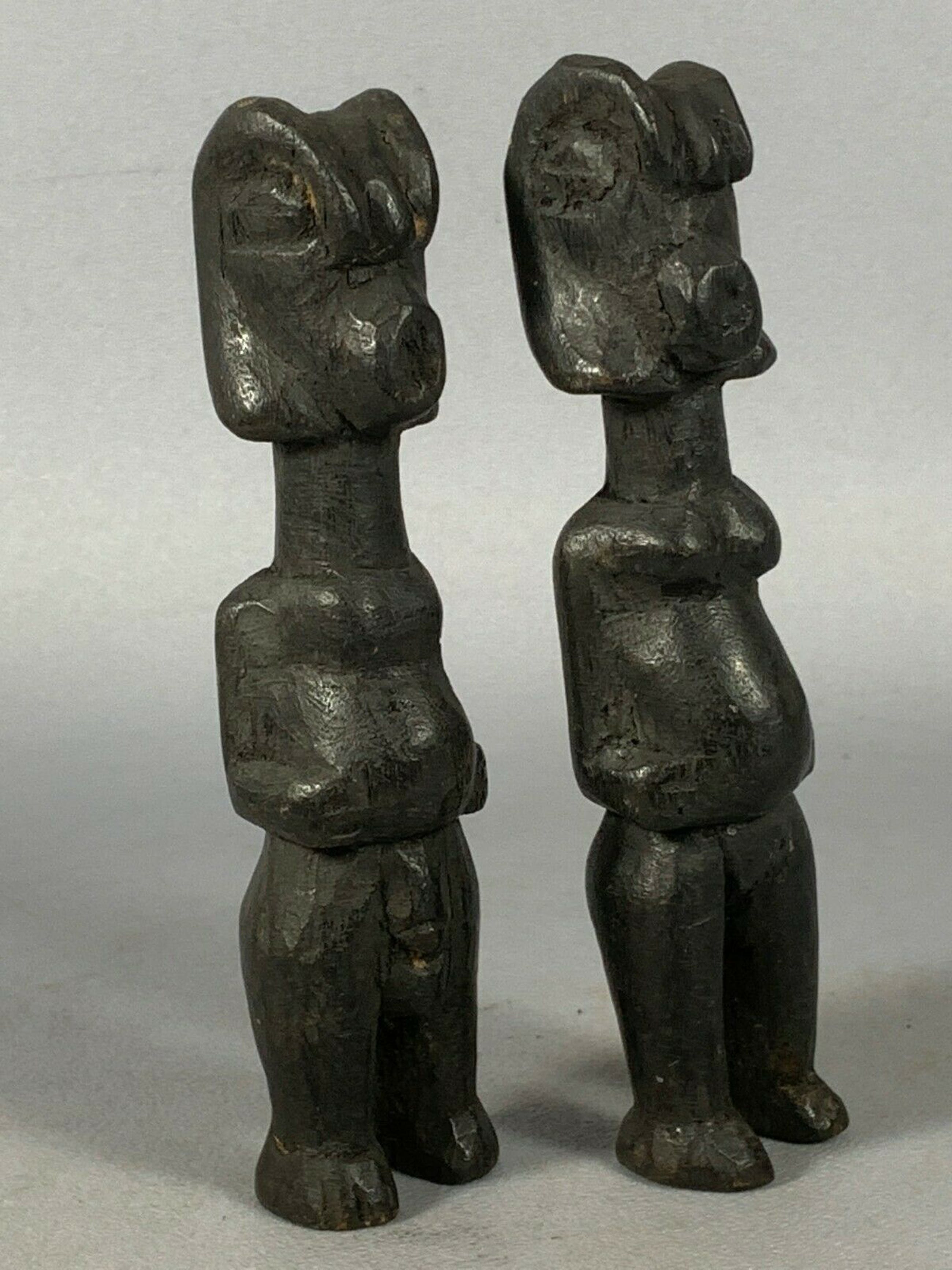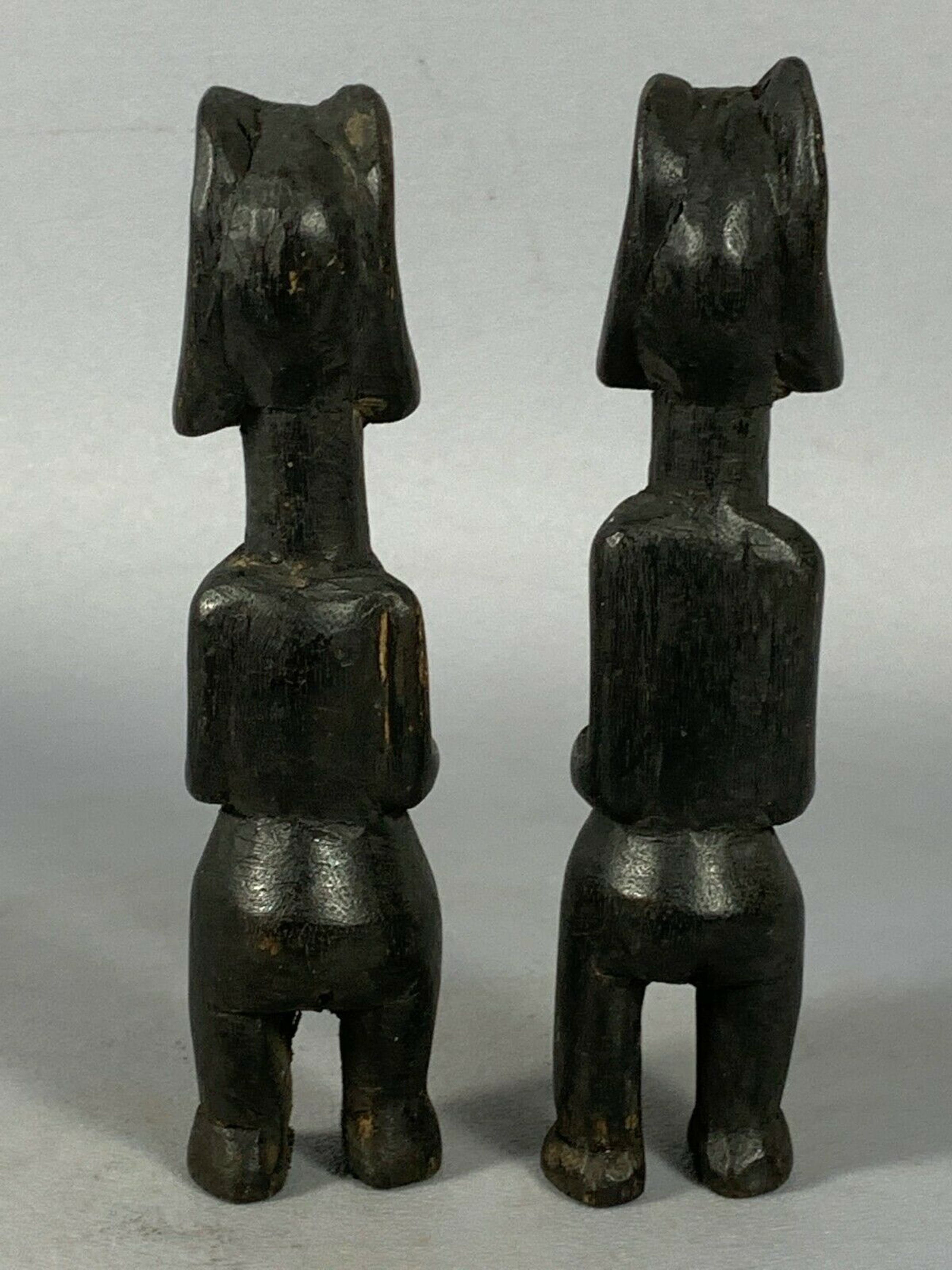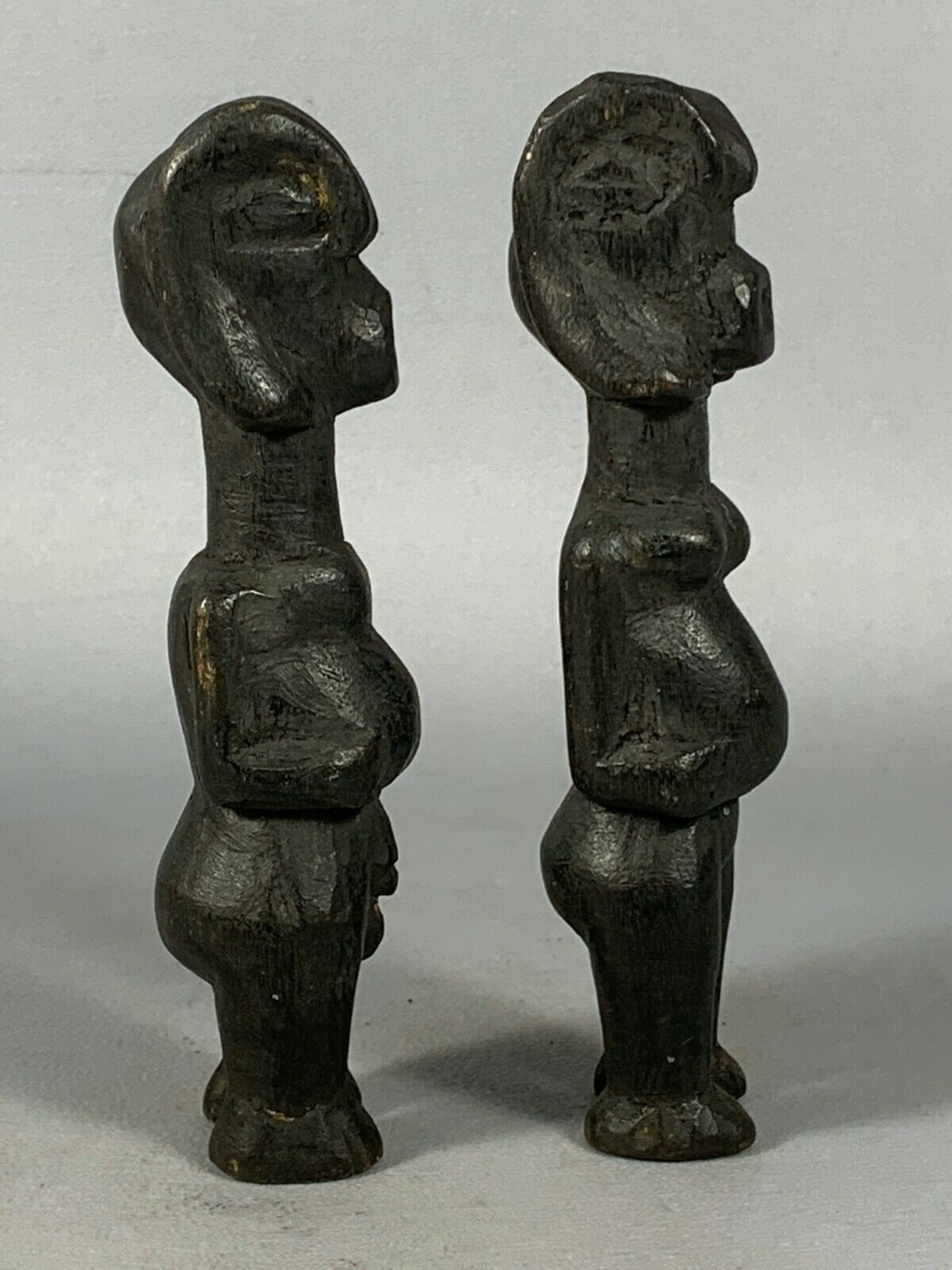 Iv. Coast: old and Rare Tribal used African 2 black Baule statues.
