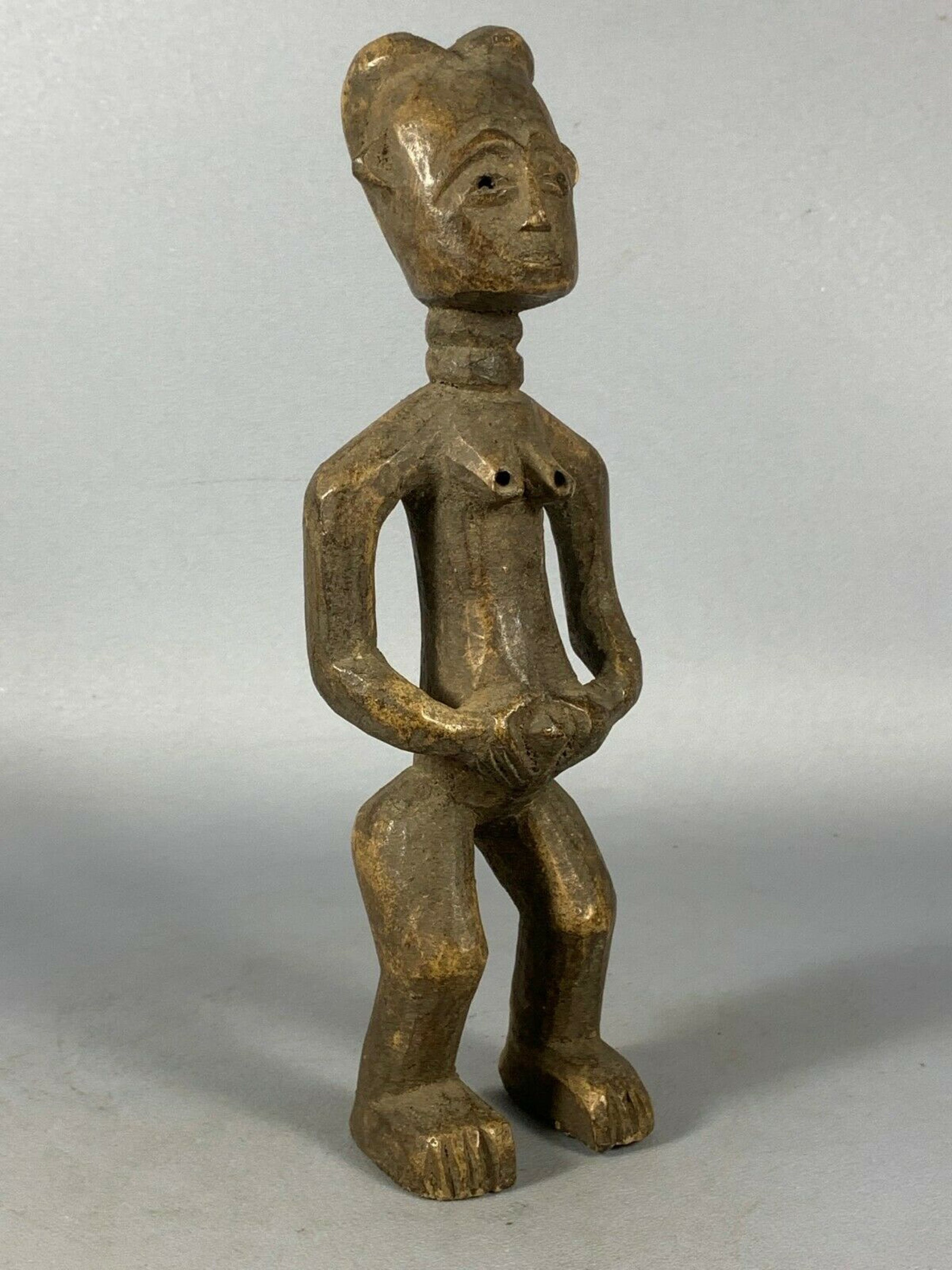 The Baule people is one of the largest ethnic group in the Côte d'Ivoire. They have played a central role in twentieth-century history of the country. They waged the longest war of resistance to French colonization of any West African people, and maintained their traditional objects and beliefs longer than many groups in such constant contact with European administrators, traders, and missionaries. The Baule belong to the Akan peoples who inhabit Ghana and Côte d'Ivoire.According to a legend, during the eighteenth century, the queen, Abla Poku, had to lead her people west to the shores of the Comoe, the land of Senufo. In order to cross the river, she sacrificed her own son. This sacrifice was the origin of the name Baule, for baouli means “the child has died.” Now about one million Baule occupy a part of the eastern Côte d'Ivoire between the Komoé and Bandama rivers that is both forest and savanna land. Baule society was characterized by extreme individualism, great tolerance, a deep aversion toward rigid political structures, and a lack of age classes, initiation, circumcision, priests, secret societies, or associations with hierarchical levels. Each village was independent from the others and made its own decisions under the presiding presence of a council of elders. Everyone participated in discussions, including slaves. It was an egalitarian society. The Baule compact villages are divided into wards, or quarters, and subdivided into family compounds of rectangular dwellings arranged around a courtyard; the compounds are usually aligned on either side of the main village street.