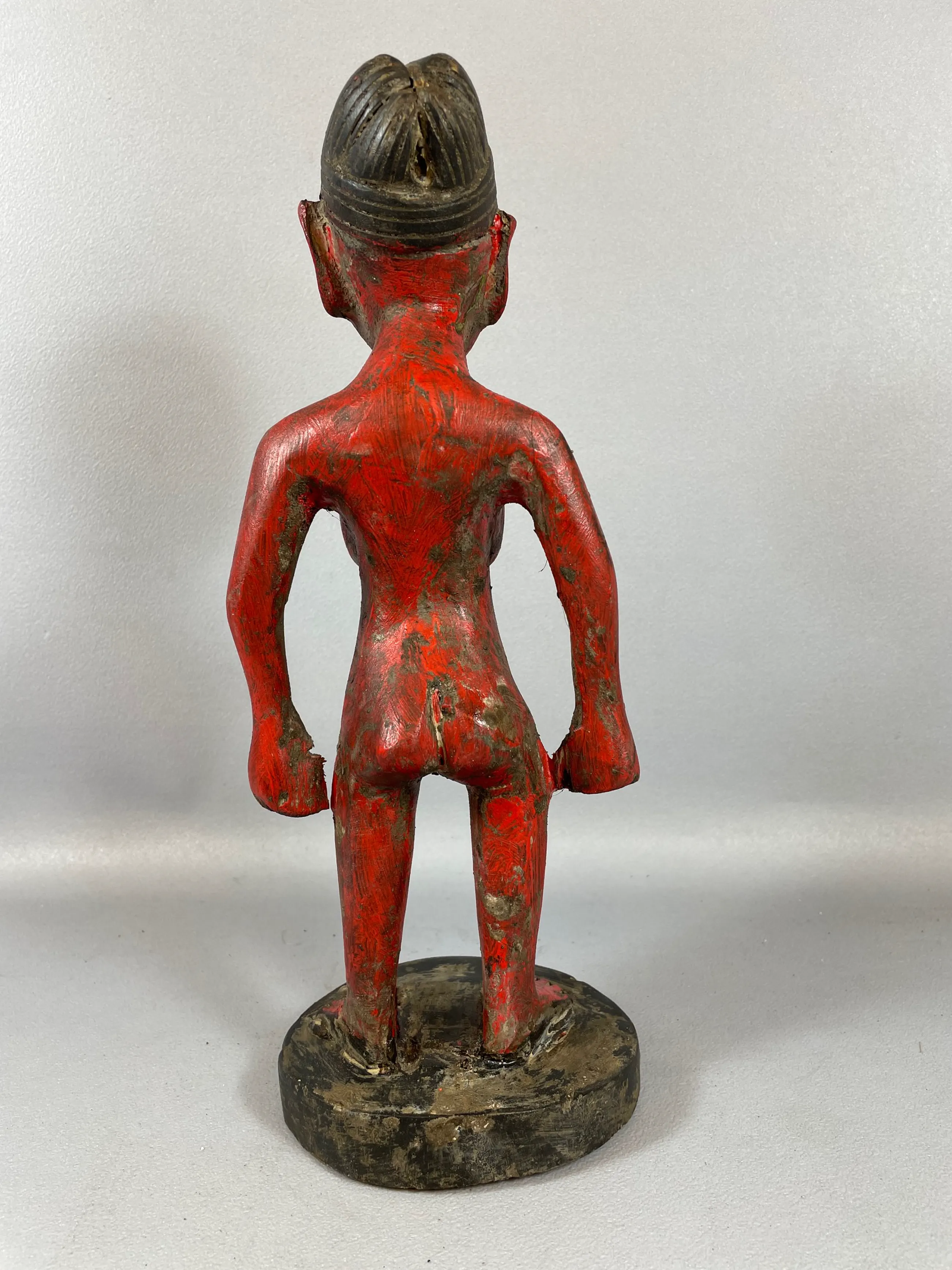 The Baule people is one of the largest ethnic group in the Côte d'Ivoire. They have played a central role in twentieth-century history of the country. They waged the longest war of resistance to French colonization of any West African people, and maintained their traditional objects and beliefs longer than many groups in such constant contact with European administrators, traders, and missionaries. The Baule belong to the Akan peoples who inhabit Ghana and Côte d'Ivoire. According to a legend, during the eighteenth century, the queen, Abla Poku, had to lead her people west to the shores of the Comoe, the land of Senufo. In order to cross the river, she sacrificed her own son. This sacrifice was the origin of the name Baule, for baouli means “the child has died.” Now about one million Baule occupy a part of the eastern Côte d'Ivoire between the Komoé and Bandama rivers that is both forest and savanna land. Baule society was characterized by extreme individualism, great tolerance, a deep aversion toward rigid political structures, and a lack of age classes, initiation, circumcision, priests, secret societies, or associations with hierarchical levels. Each village was independent from the others and made its own decisions under the presiding presence of a council of elders. Everyone participated in discussions, including slaves. It was an egalitarian society. The Baule compact villages are divided into wards, or quarters, and subdivided into family compounds of rectangular dwellings arranged around a courtyard; the compounds are usually aligned on either side of the main village street.