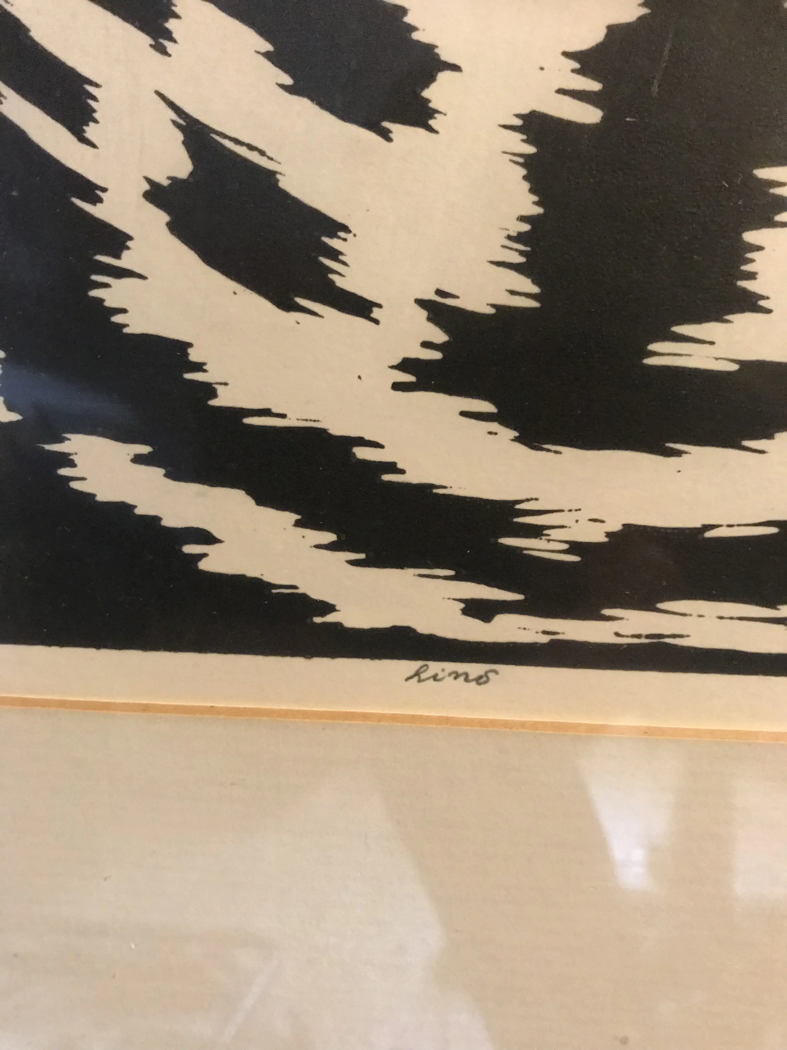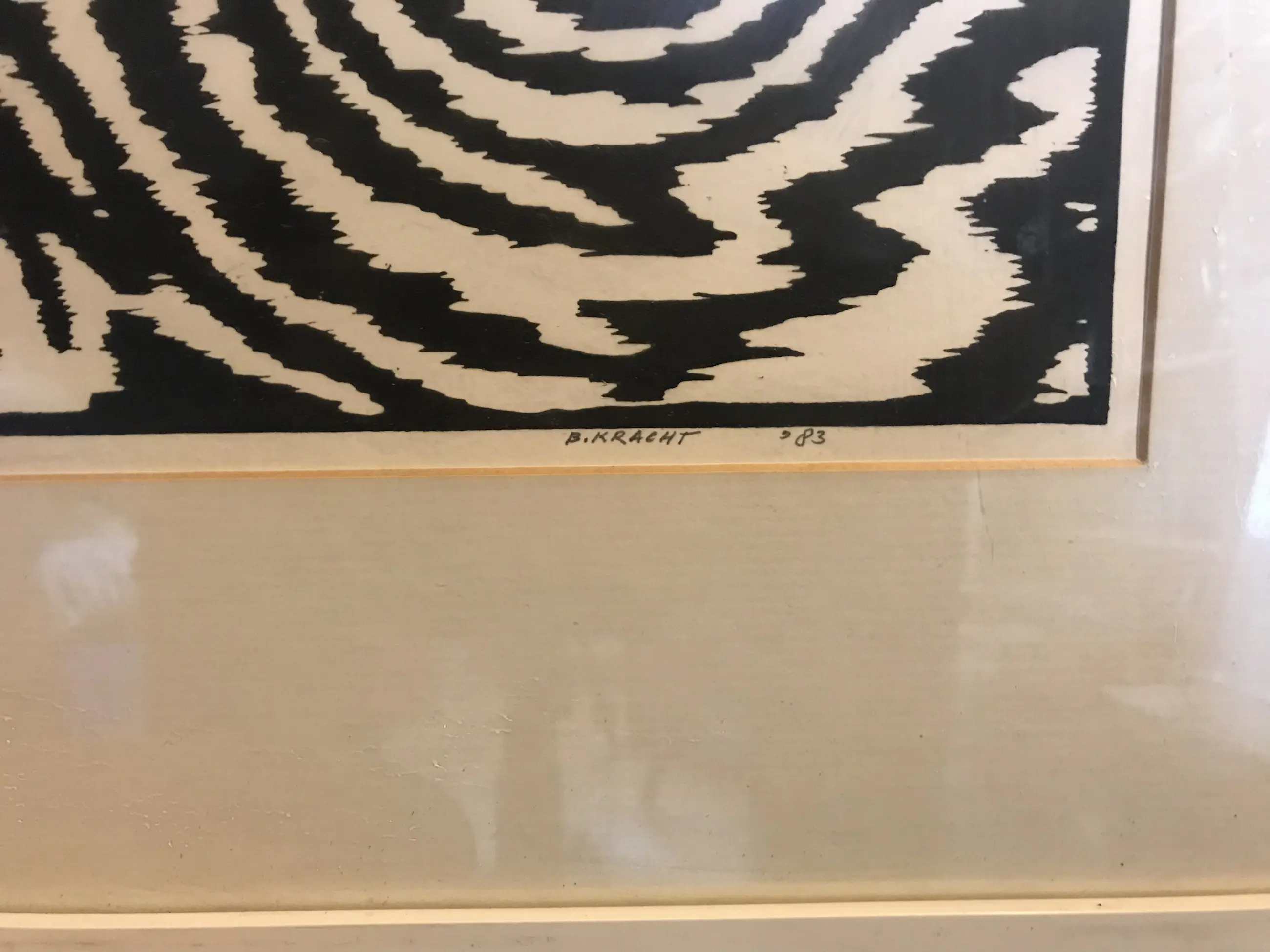 Linosnede van de Groninger kunstenaar Be Kracht, werk is in goede staat, lijst heeft wat lichte schade