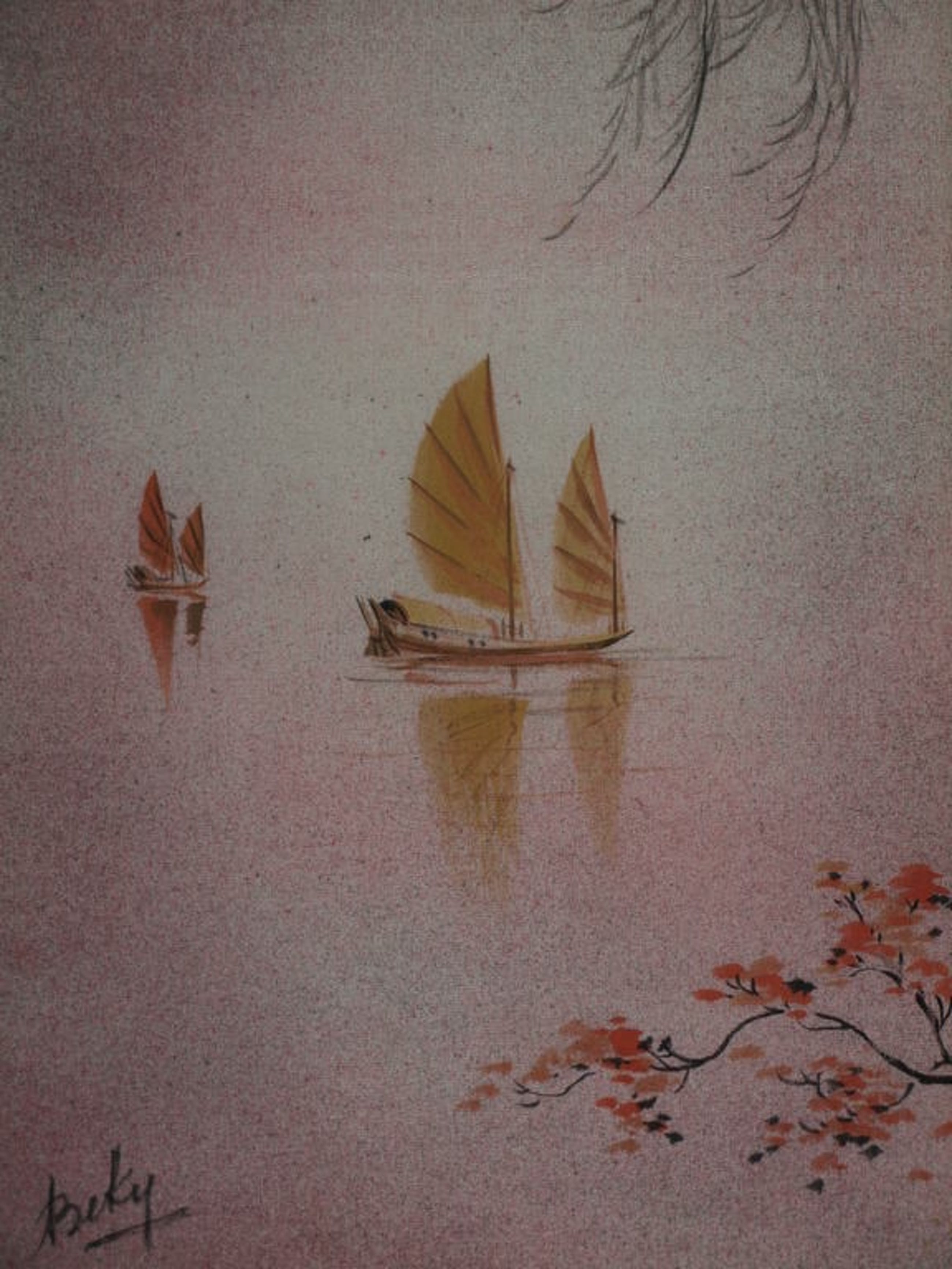 Een aquarel geschilderd op zijde van de Vietnamese kunstenares Be Ky (ook wel geschreven als ‘Beky’).