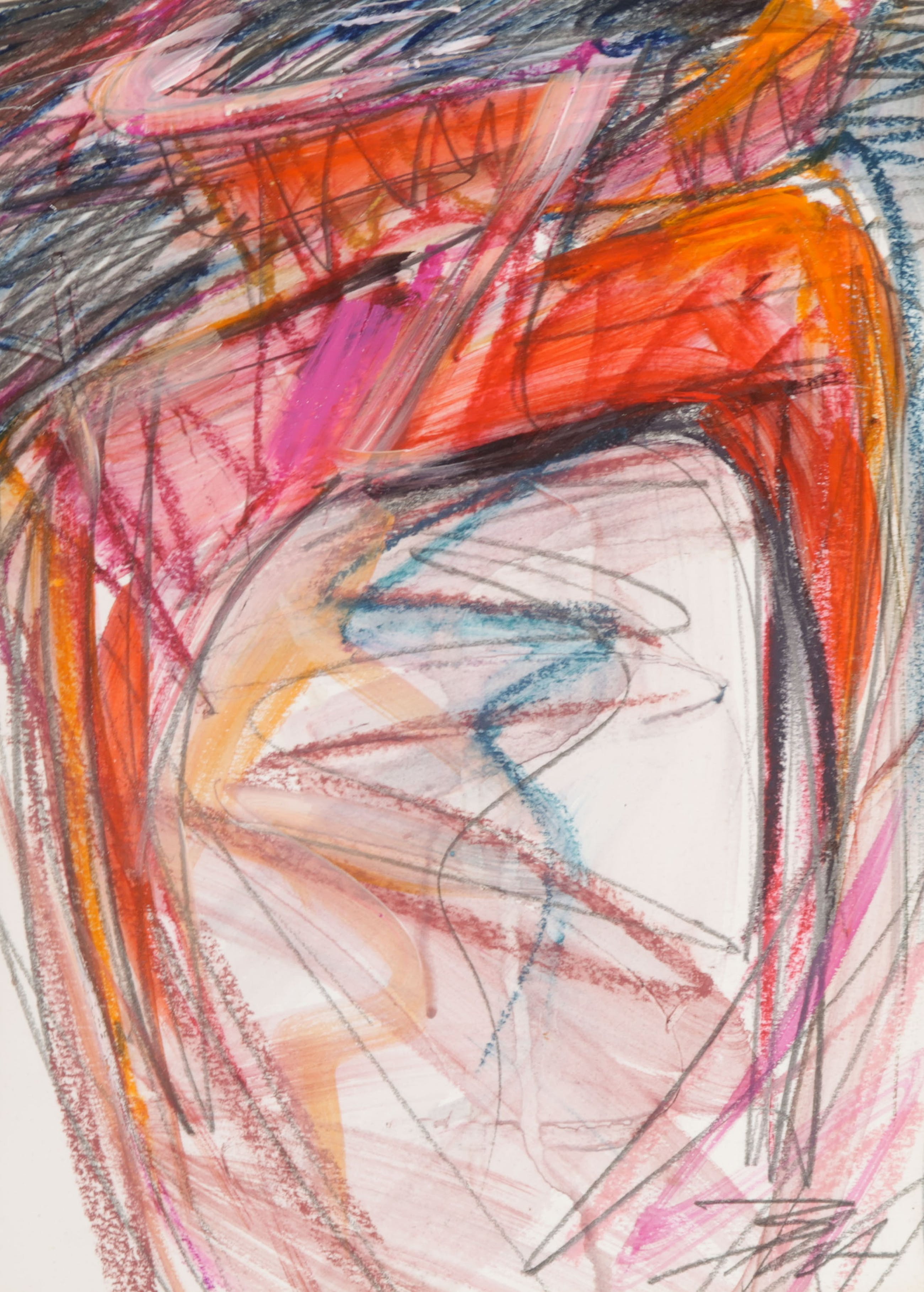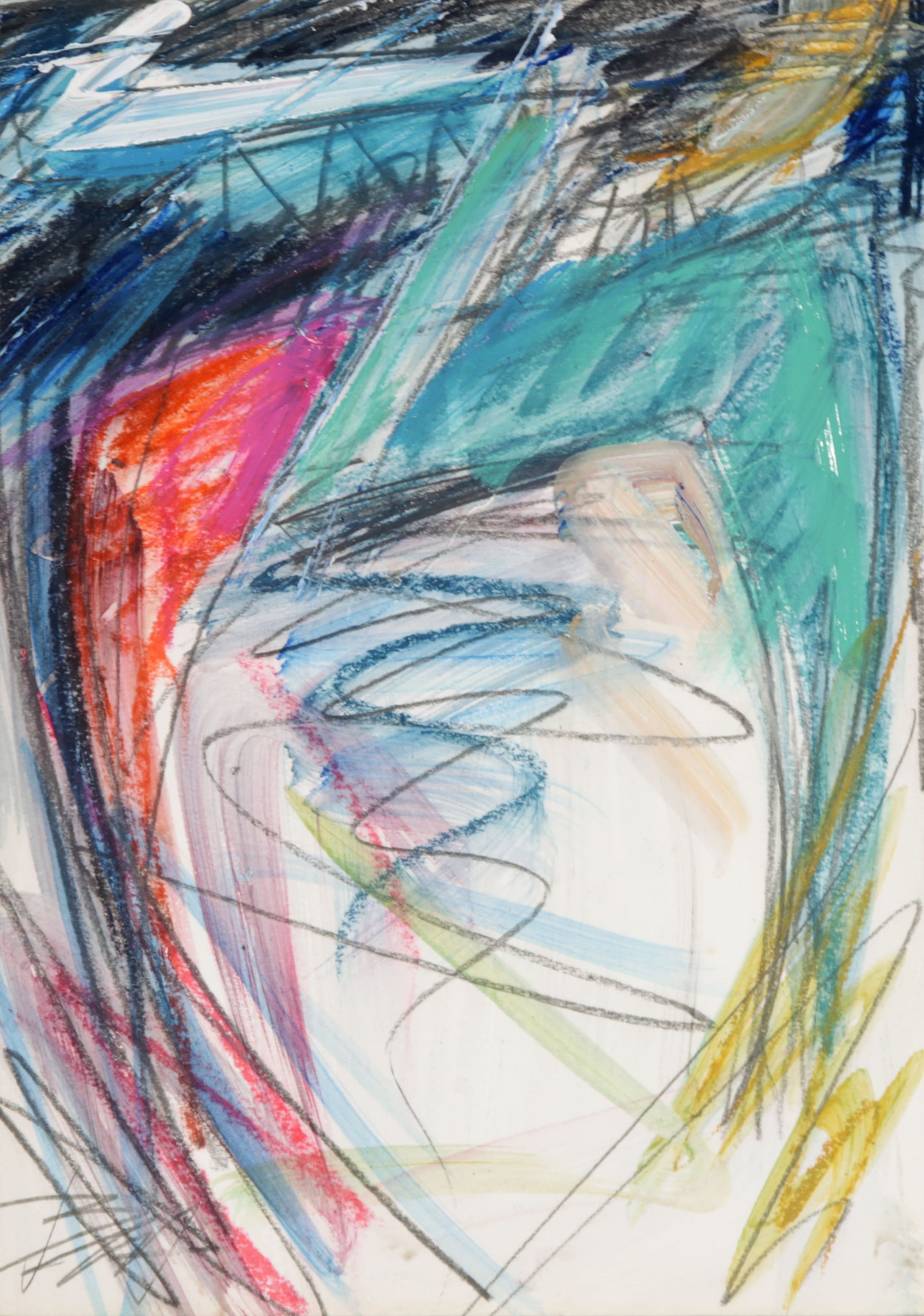 Lot met twee werken (krijt, olieverf en potlood op papier) van Bea de Visser, getiteld