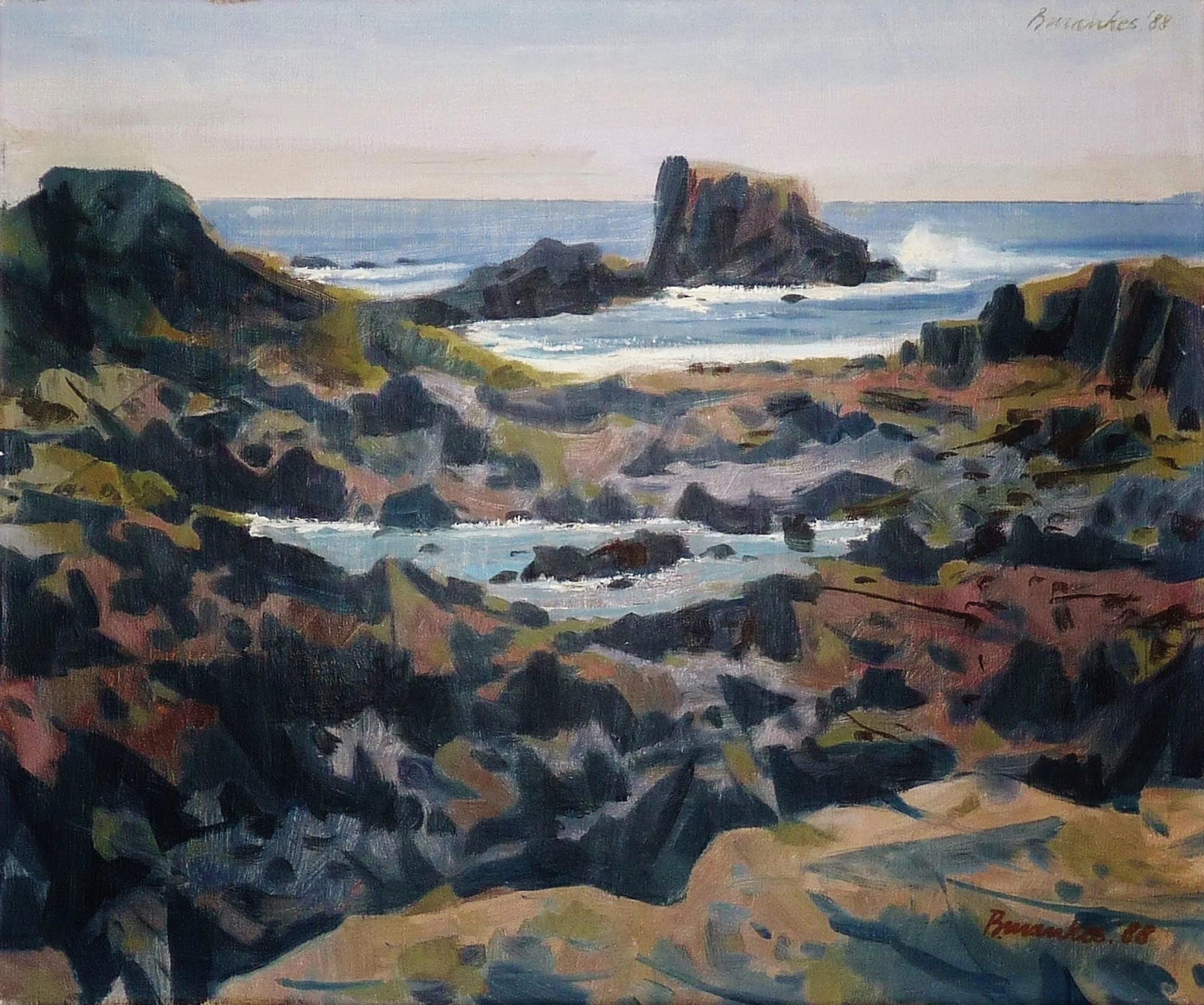 *Maten doek 50 x 60 cm. Gesigneerd r.o. en r.b. (2x) met: B.Mankes 88