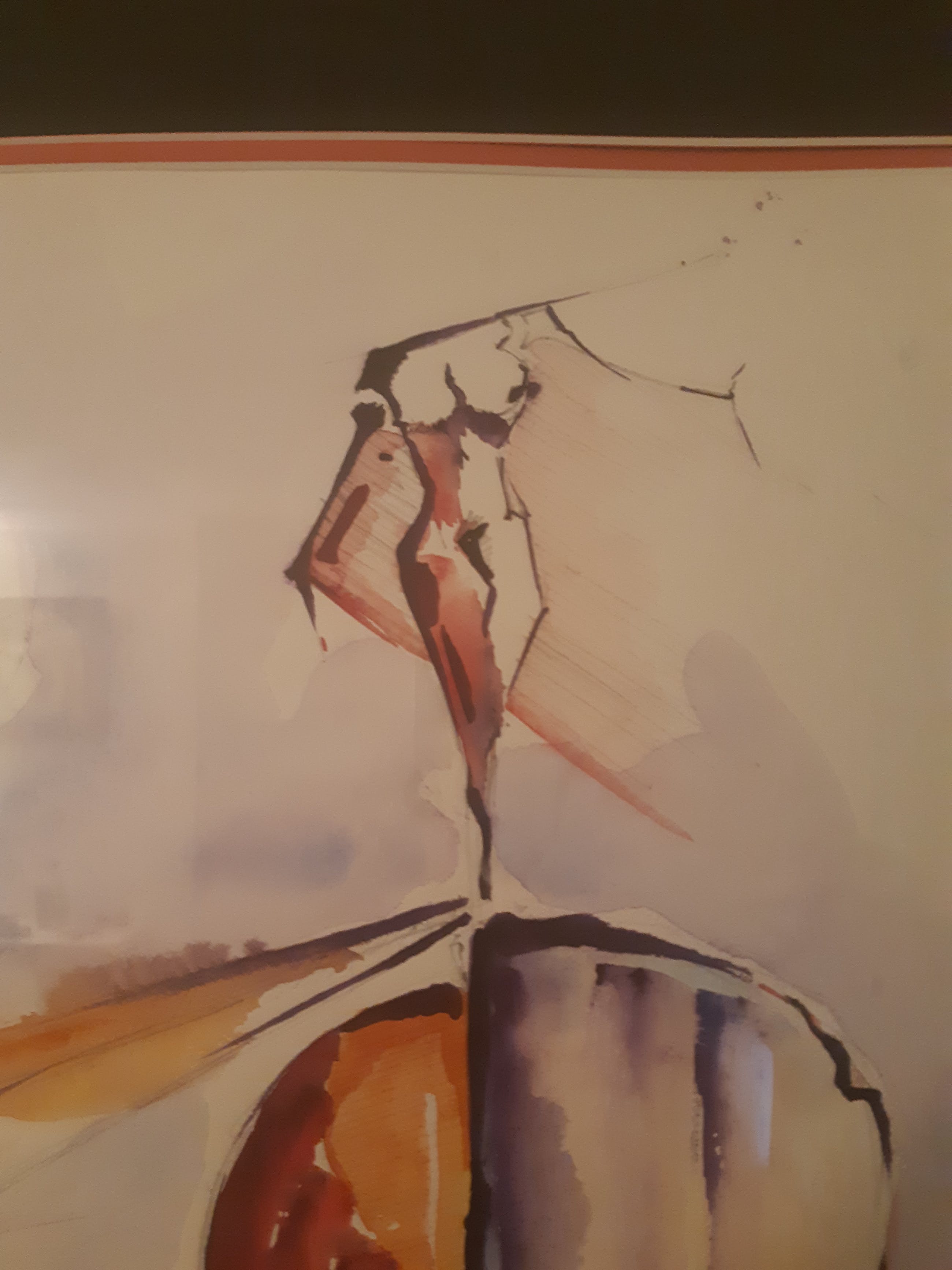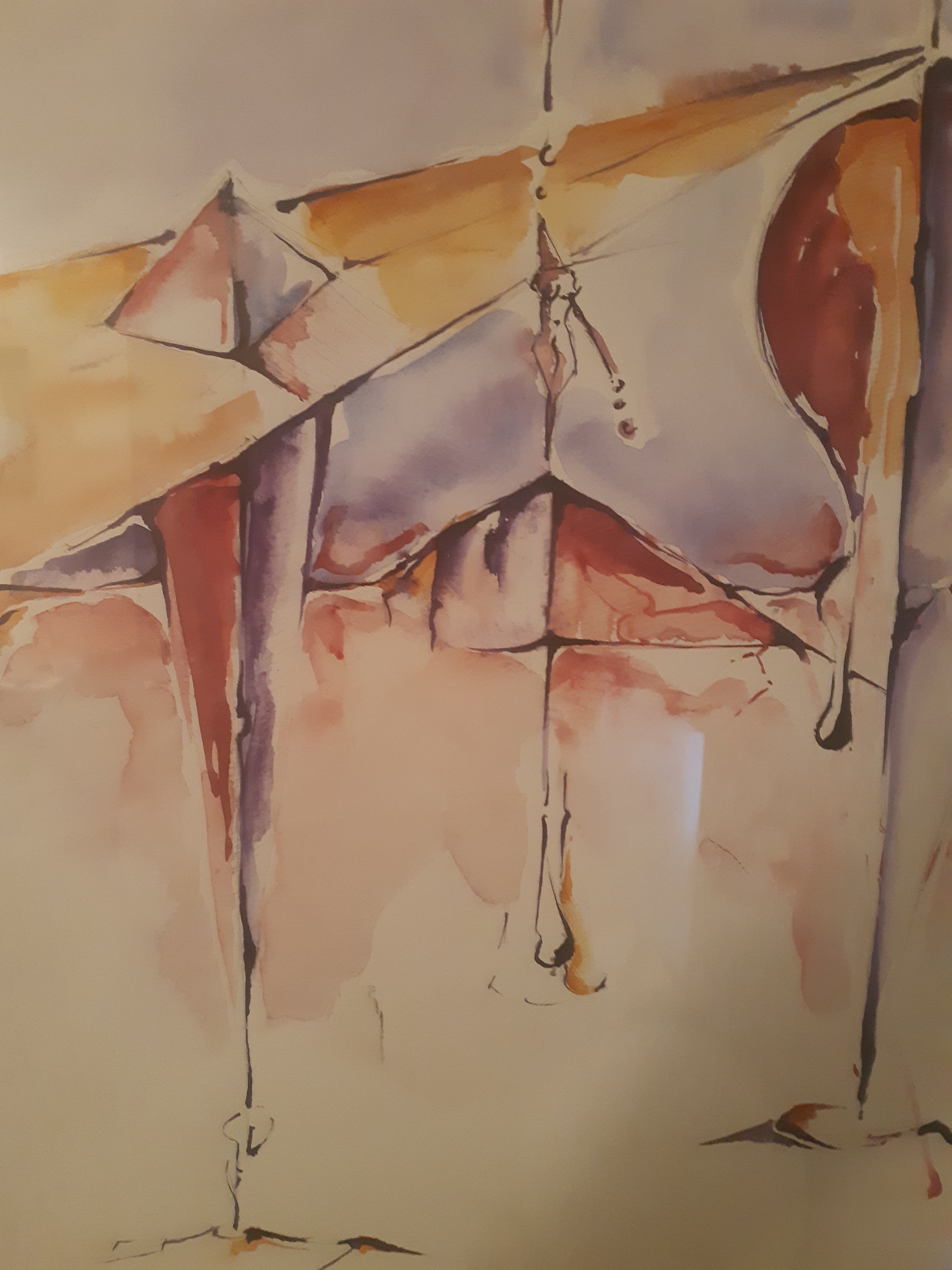 4 naakte dames in pyramide omgeving,mooi verwerkt en bestudeerbaar,werk die tot verbeelding doet gaan ïn alle vormen en aspecten.mooi werk en 1 van de eerste werken van de schilder die na vele werken in de modewereld gestapt is en tapijt branche.zeer mooie werken gemaakt en stijgt in waarde