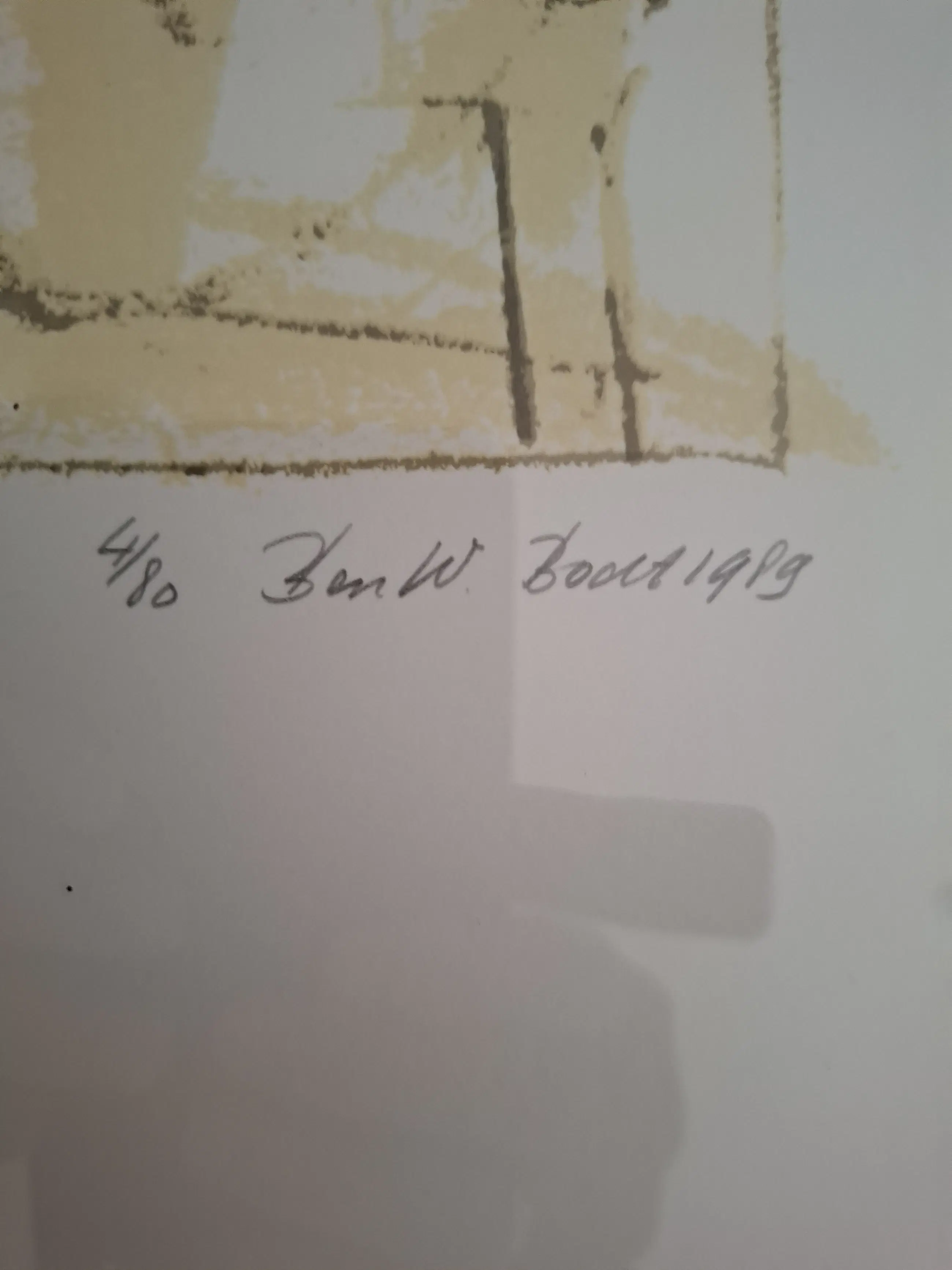 Prachtig kunstwerk van deze Arnhemse kunstschilder. Het werk is genaamd : " Alpha groep " Bij het kunstwerk is een bijlage gevoegd, hetwelk een klein overzicht geeft van de werken die door Ben Bodt oa gemaakt zijn.