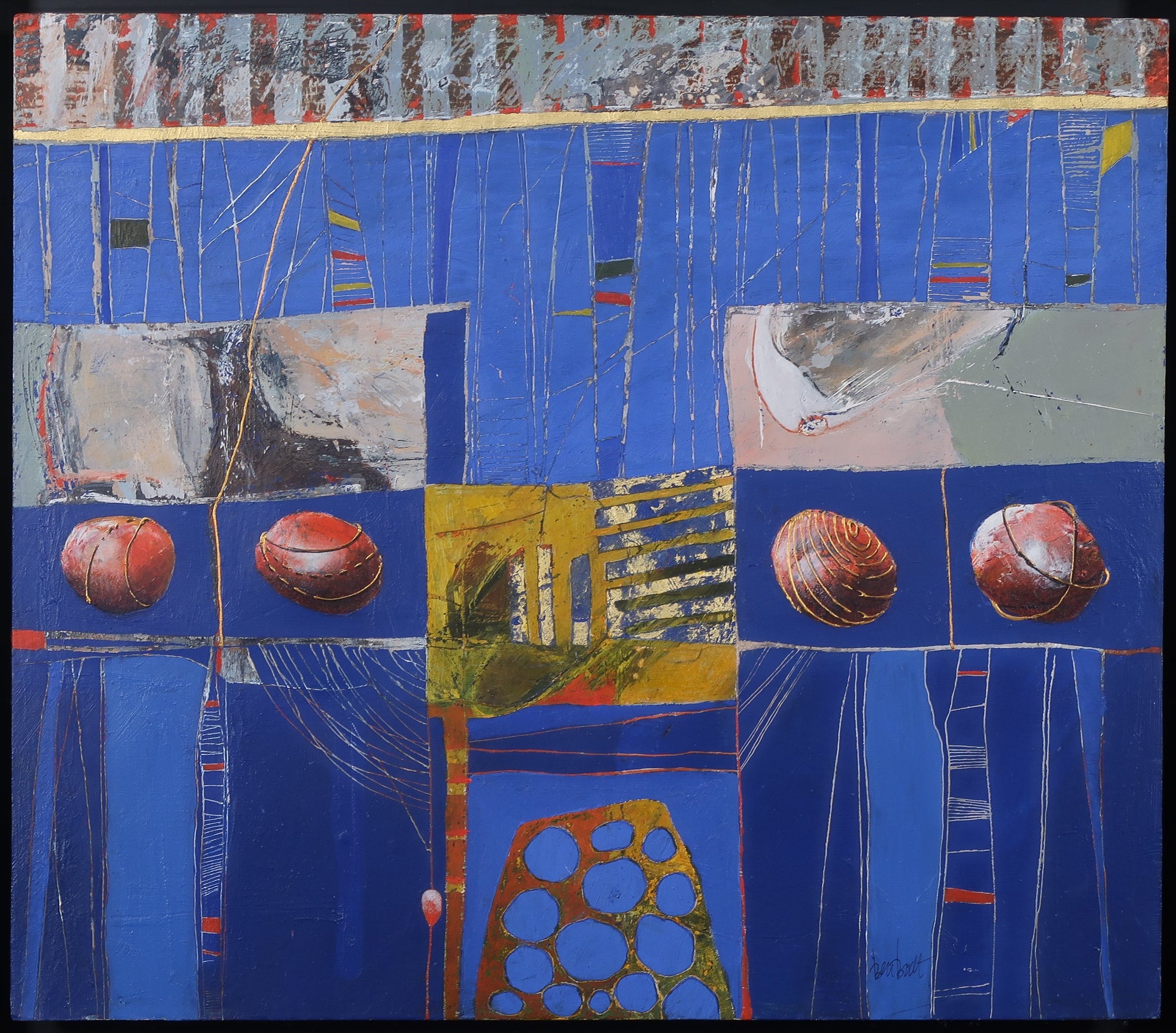 | Enkele kleine beschadigingen en licht verfverlies boven in het beeld (niet opvallend) | |
