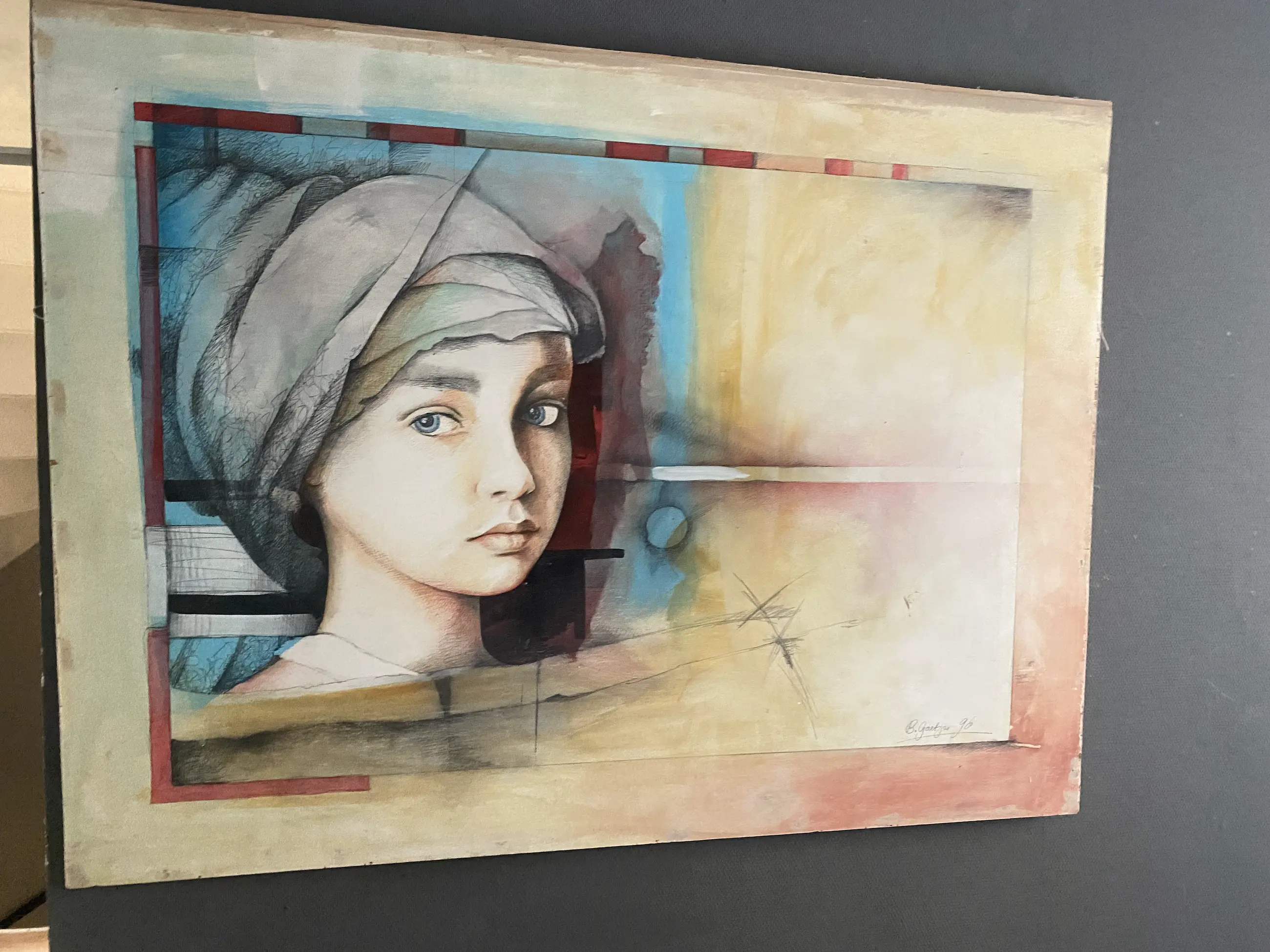 Mooi schilderij van de Larense schilder Ben Goetjes. Gemengde techniek.