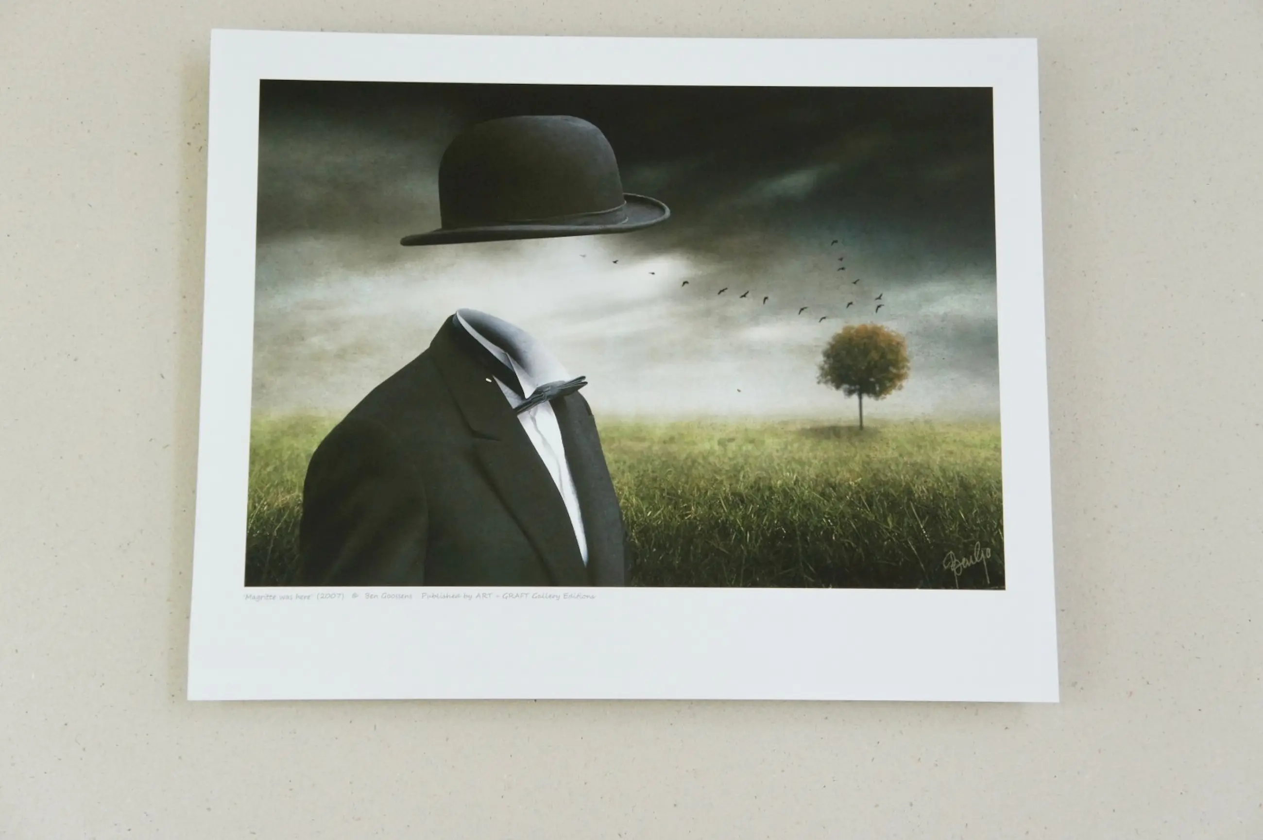 "Een klassiek, door Magritte geïnspireerd beeld dat Goossens avatar is geworden - een indrukwekkend eerbetoon aan zijn illustere landgenoot."