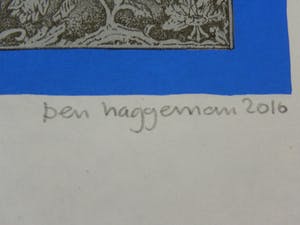 Ben Haggeman (1940) is opgegroeid in Wichmond en woont en werkt in Arnhem. Na een jarenlange omzwerving in de modewereld, als ontwerper, en de toneelwereld, als decor- en kostuumontwerper, koos hij in de jaren 80 voor het kunstenaarschap. Eerst waren de invloeden uit de mode- en theaterwereld duidelijk aanwijsbaar in zijn werk. Hij plaatste personages in kostuumontwerpen in landschappelijke of theatrale decors.