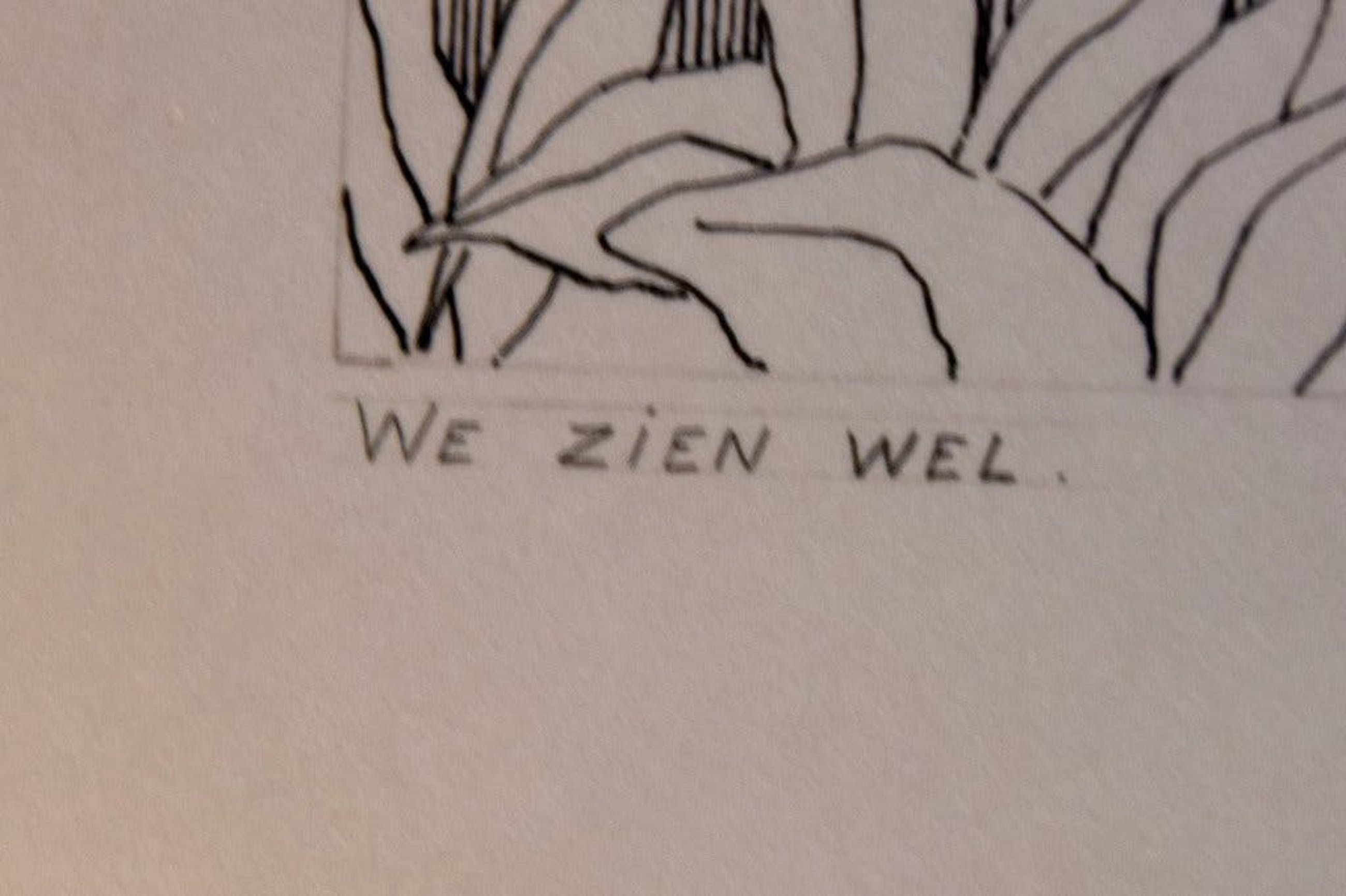 | De glasplaat van dit kunstwerk is verwijderd. Op de achterzijde van de lijst zit een adresplaatje van de kunstenaar die uitstekend verzorgd is. | |