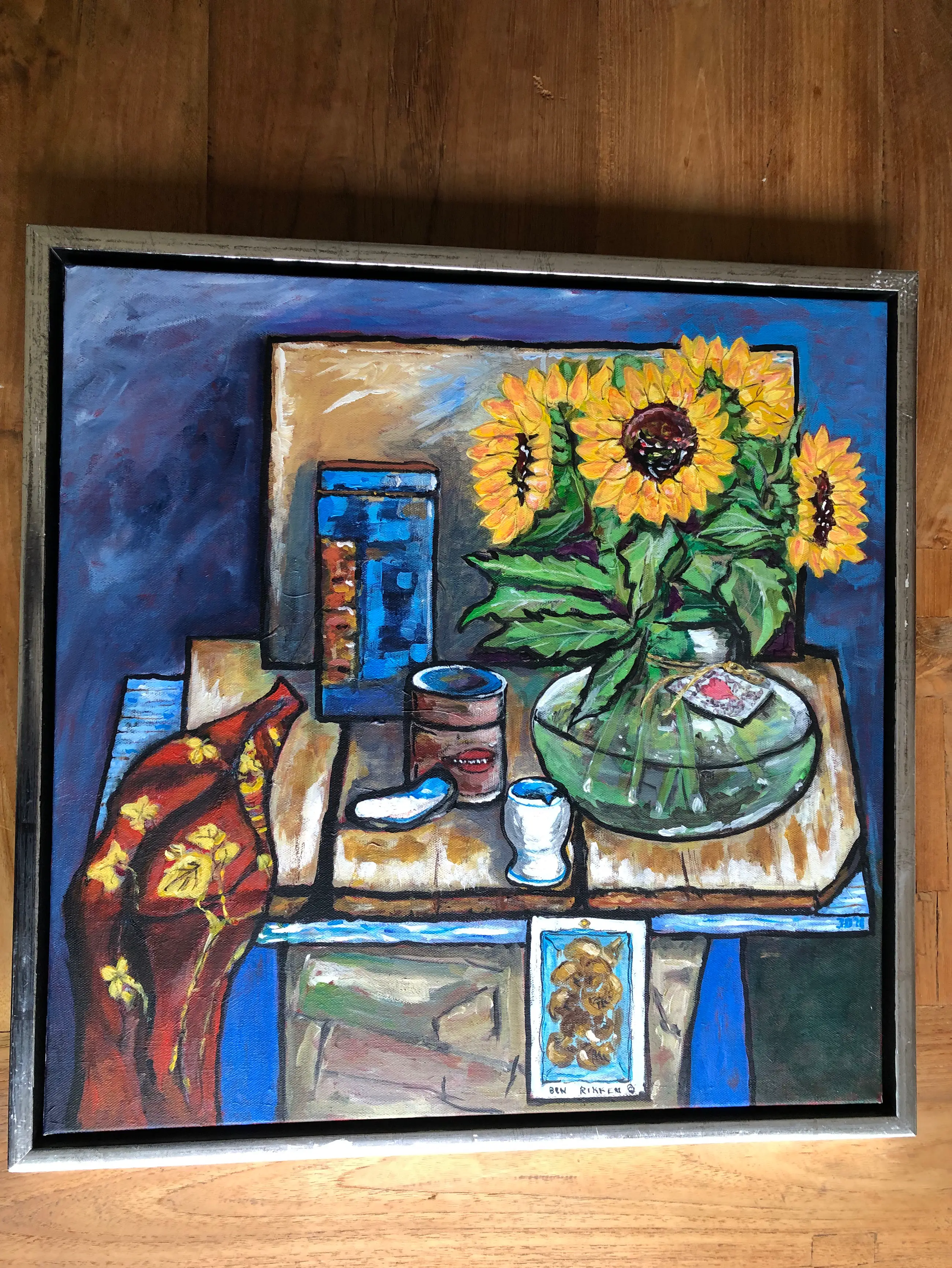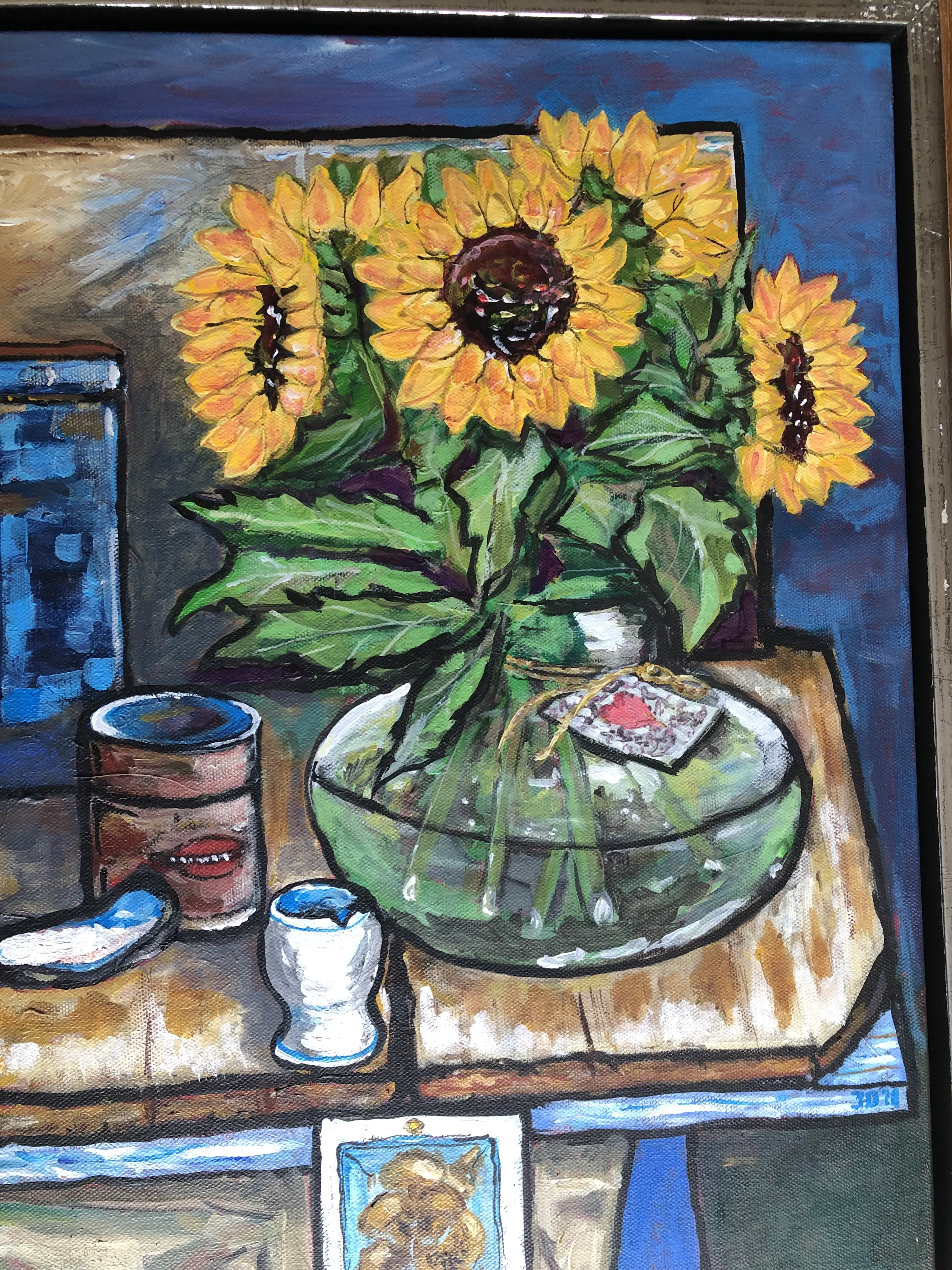 Stilleven met zonnebloemen Uit vroege periode van de kunstenaar Gesigneerd in het schilderij