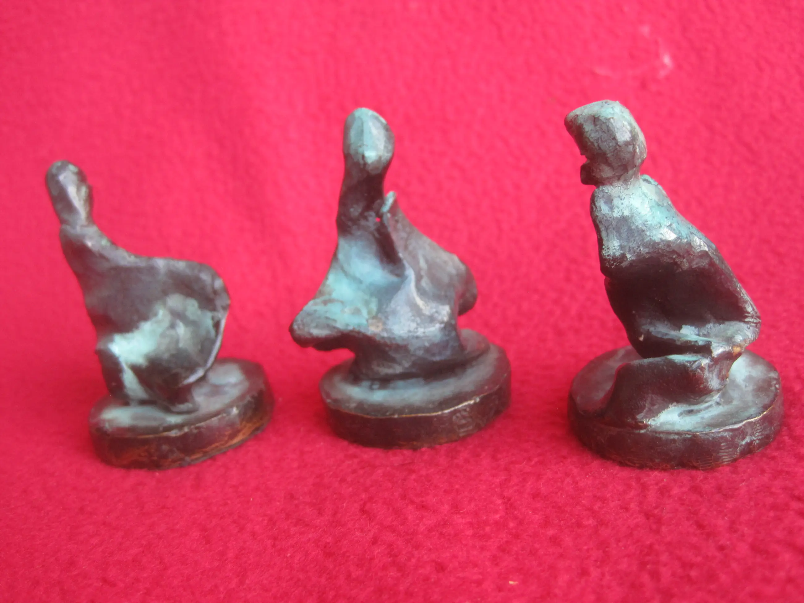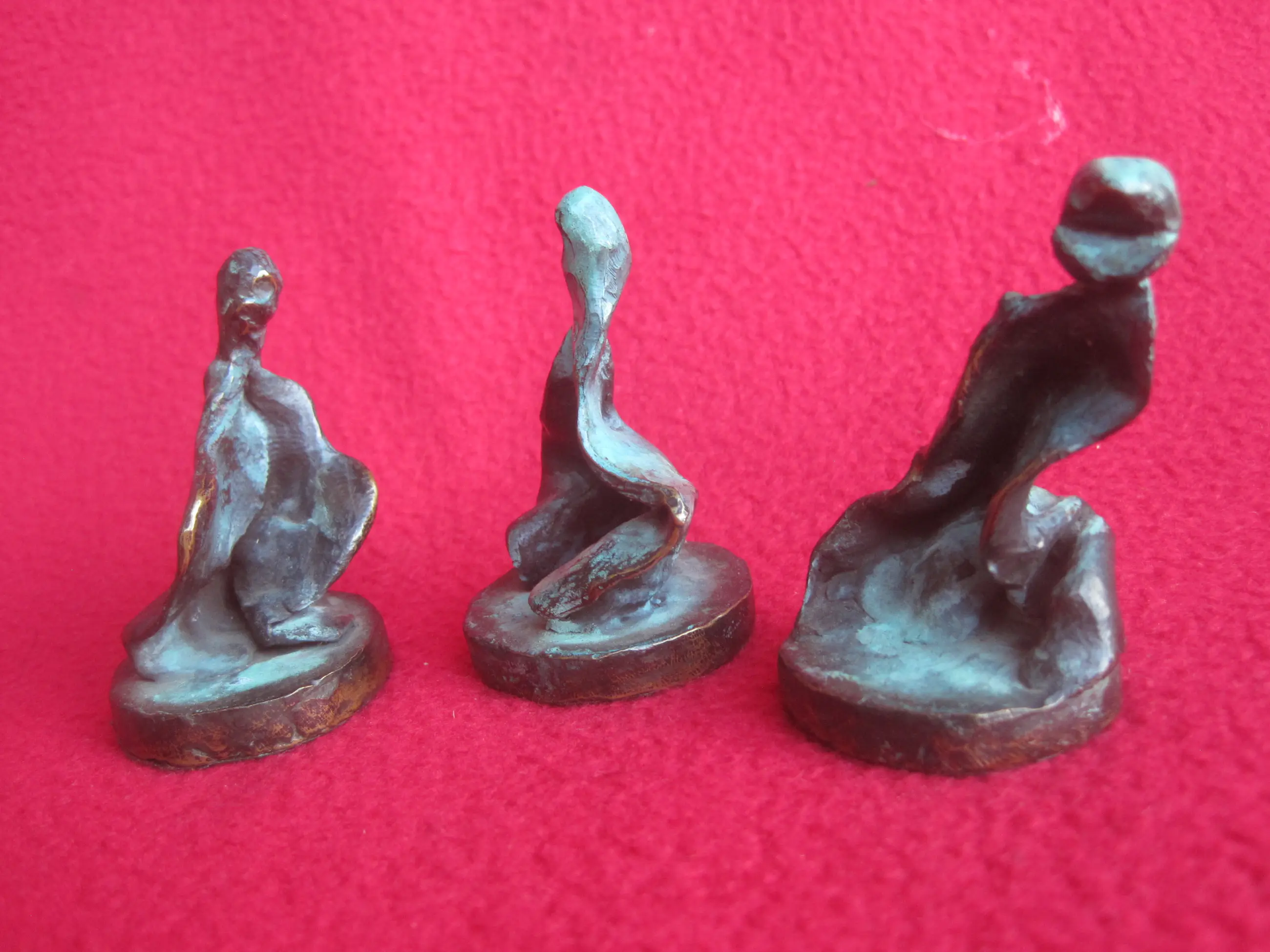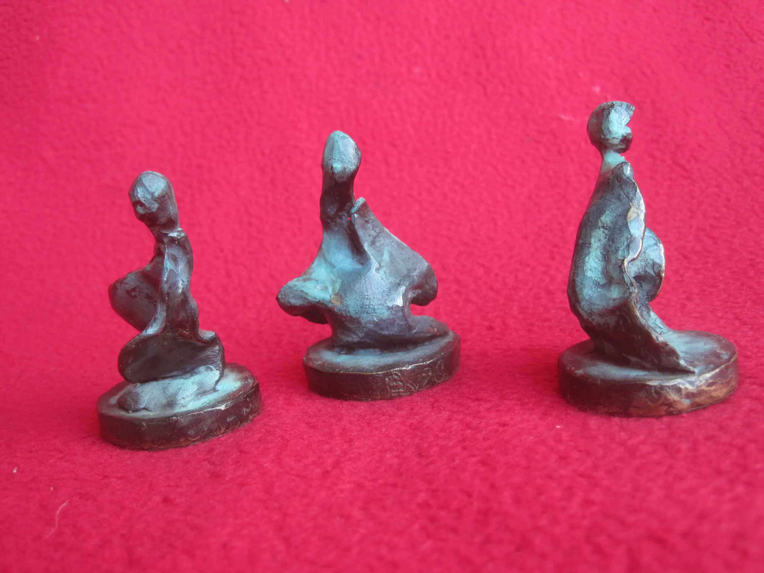 Een setje van drie abstracte bronzen figuren ( spookjes? ) door de kunstenaar Ben van Lier 1938-2017. Één van de beeldjes is duidelijk gesigneerd, zie foto's.
