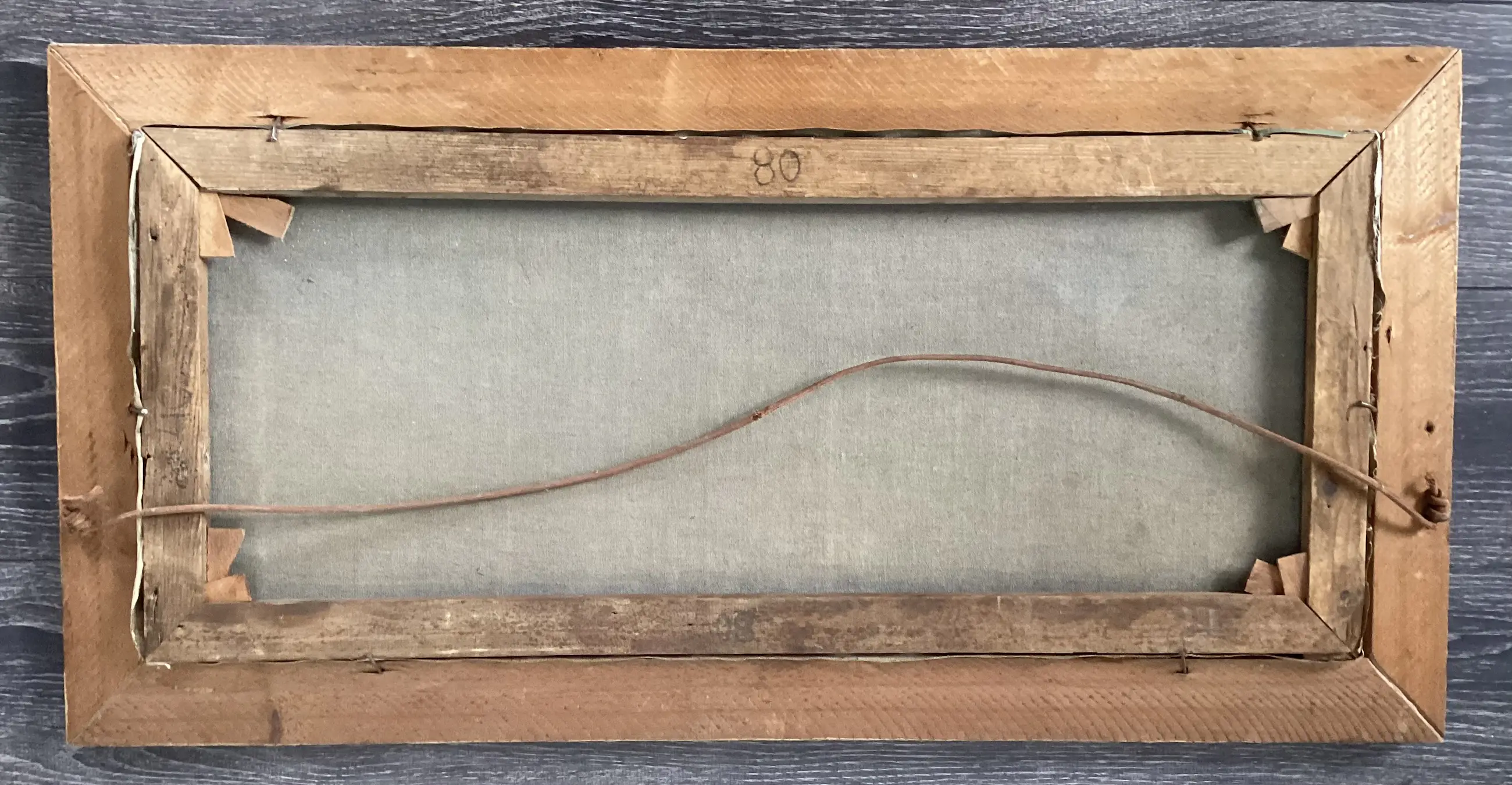 Afmeting doek 35 cm. x 80 cm. Afmeting lijst 47 cm. x 94 cm.