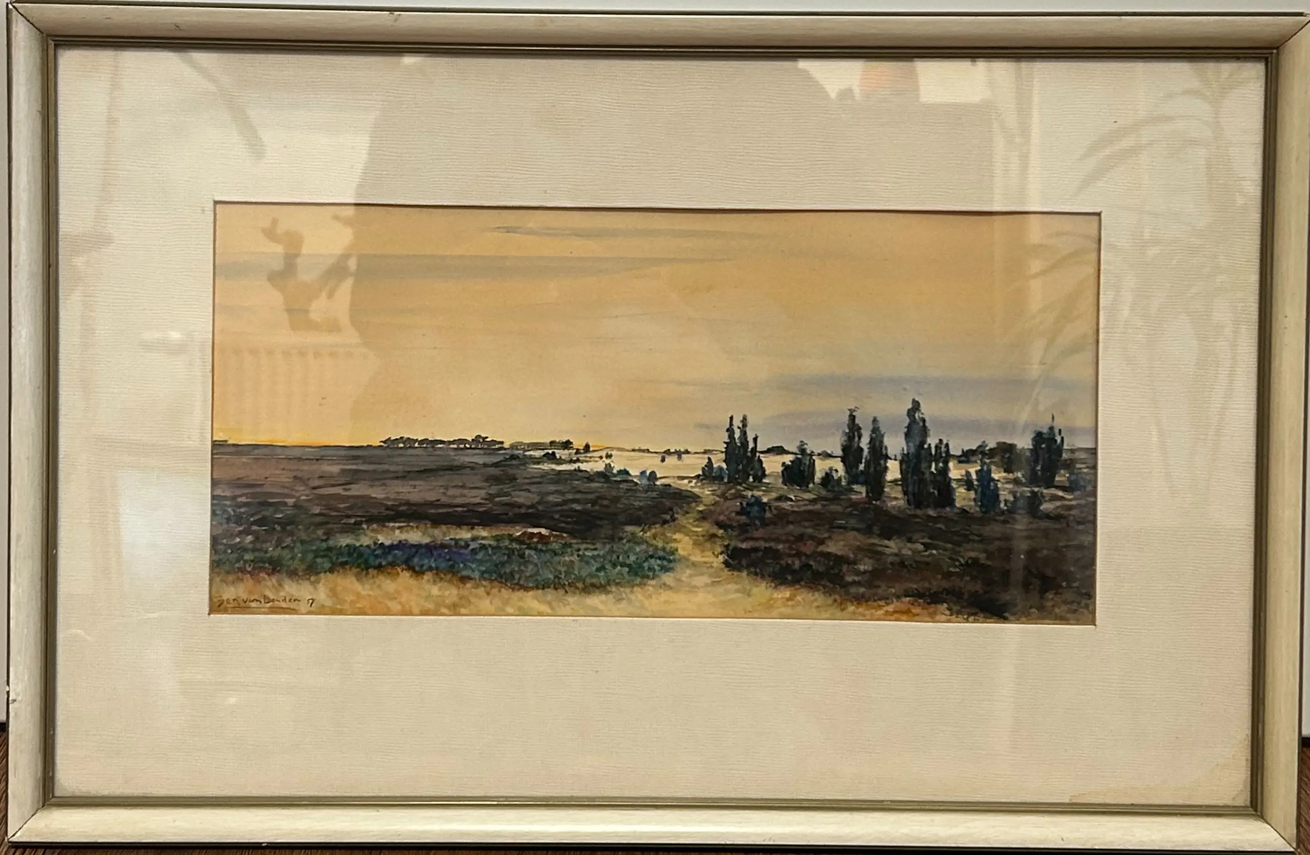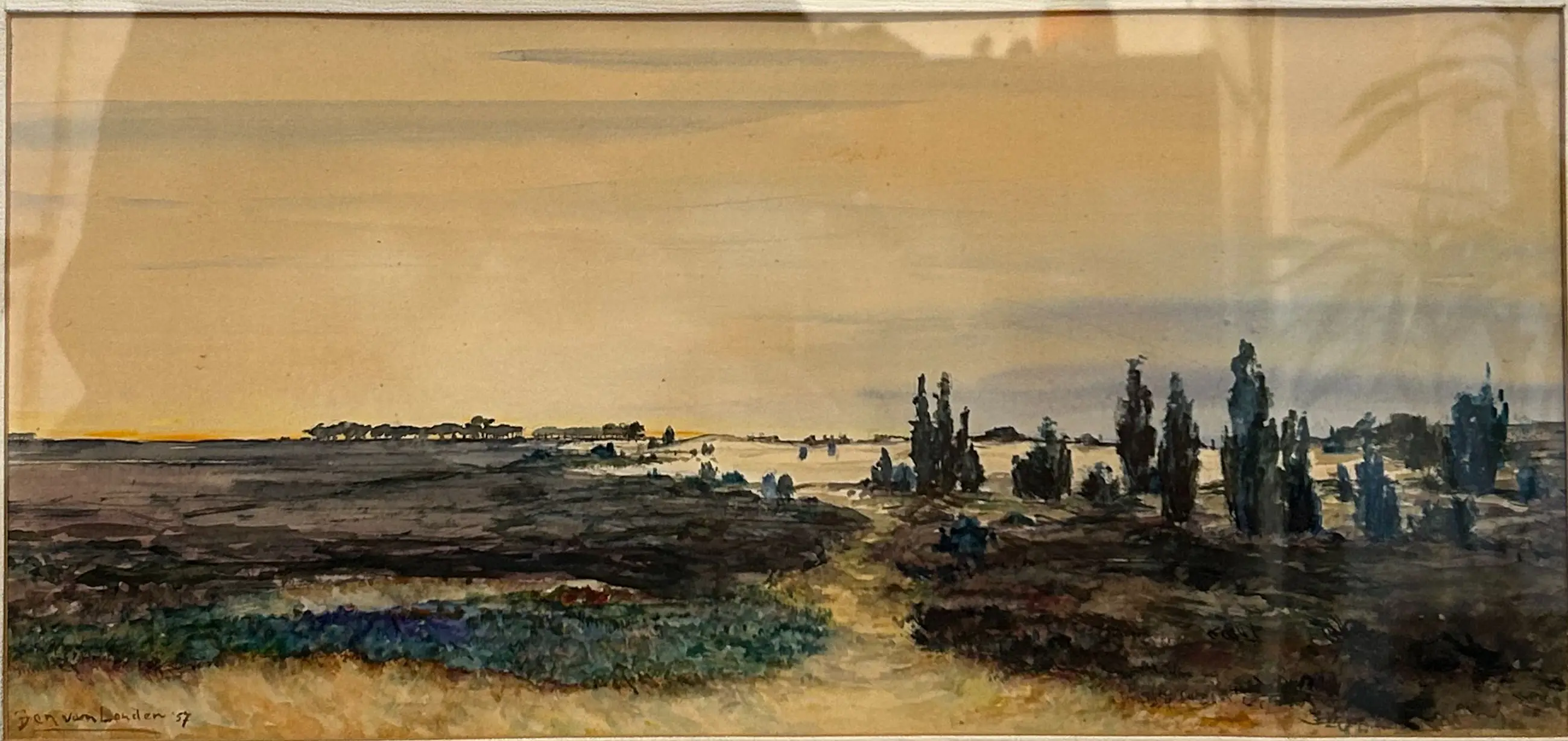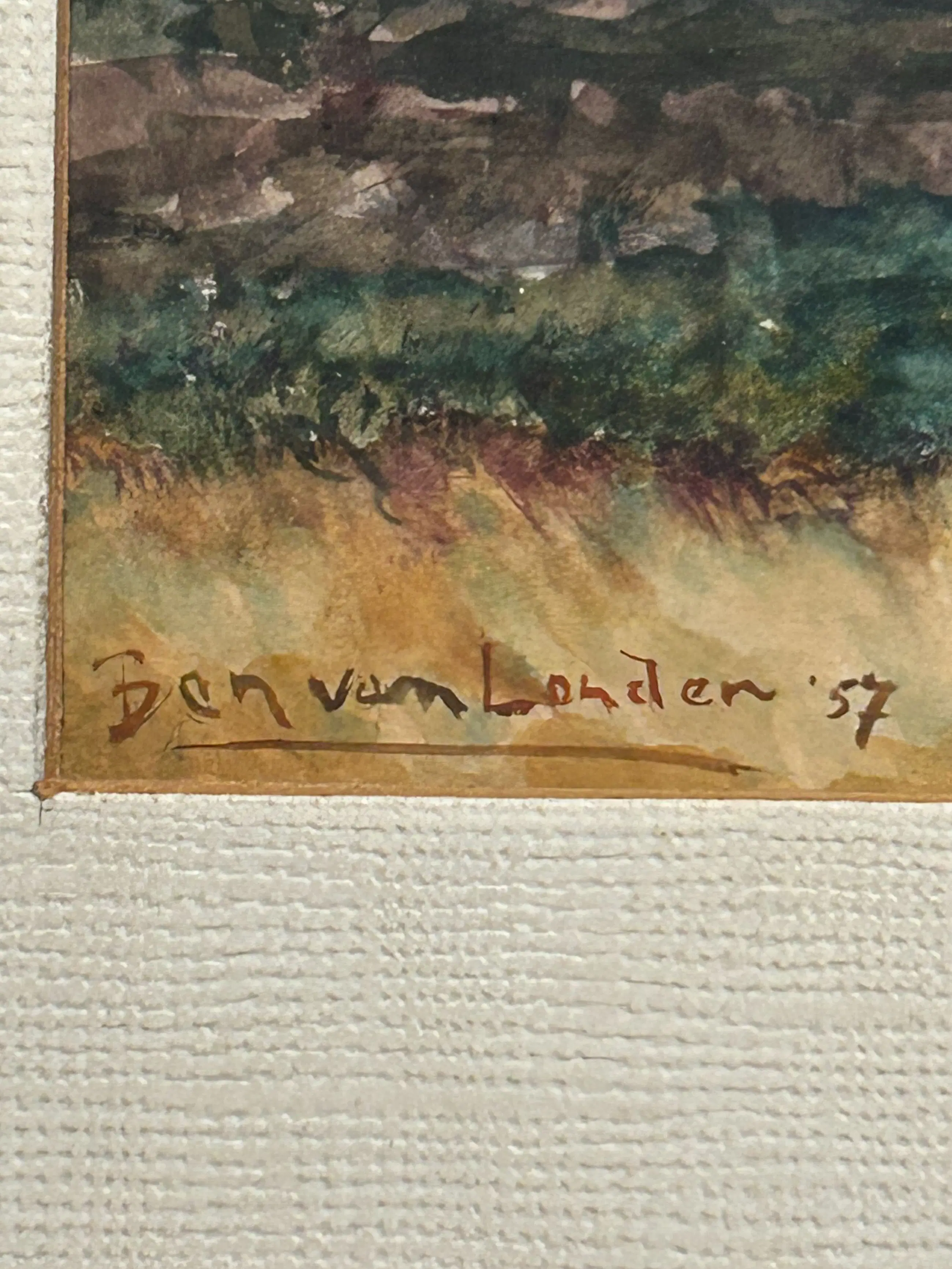 Schilderij van Ben van Londen (1957) – Veluwe Mooi schilderij uit 1957 met een fraai uitzicht op de Veluwe. Het werk heeft een sfeervolle en verzorgde uitstraling en laat het landschap op een aantrekkelijke manier zien. Een decoratief stuk voor liefhebbers van Nederlandse landschappen. Zie foto’s voor meer details en een goede indruk van het geheel.