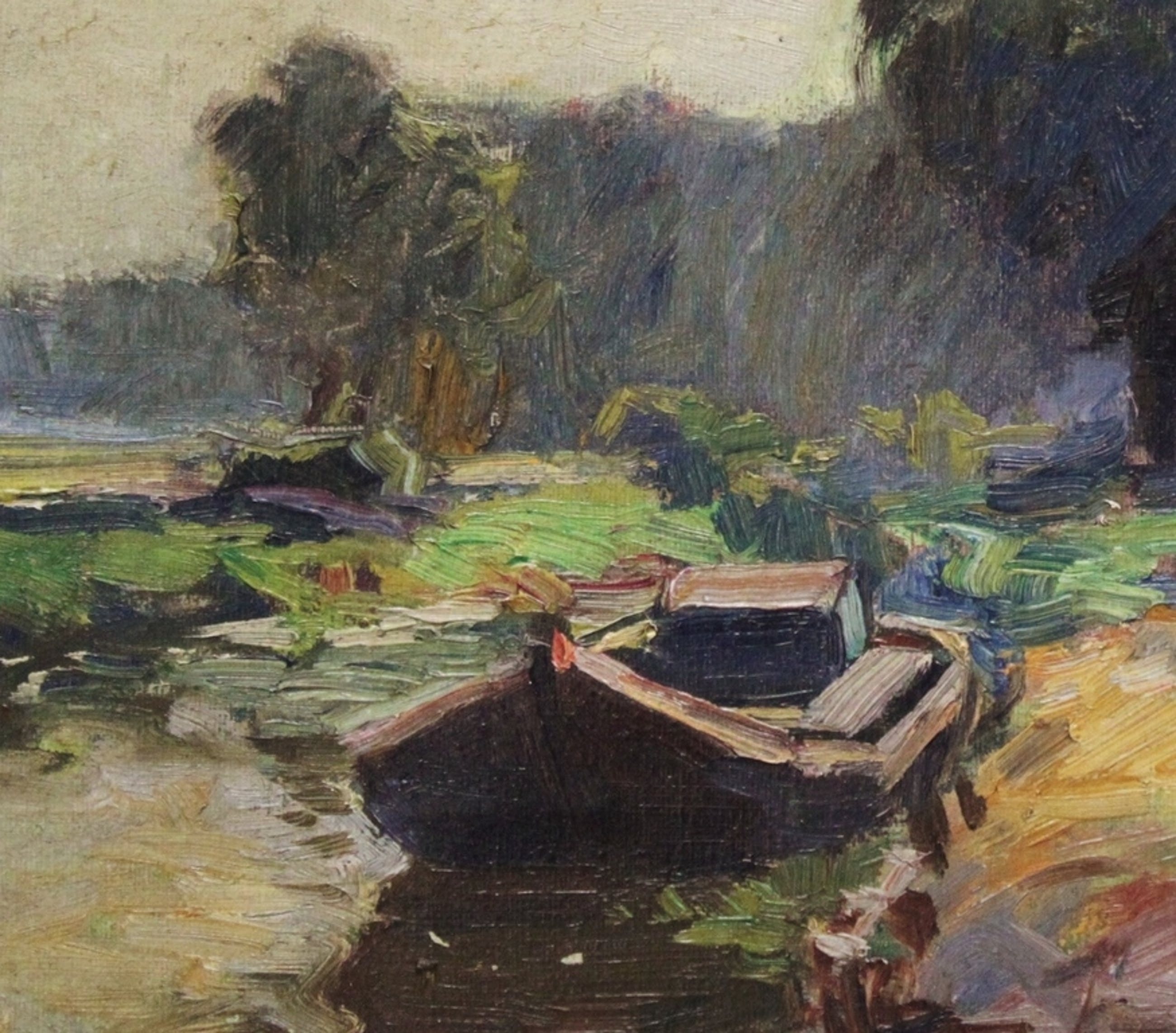 *Mooi stemmig werk van een landschap door de bekende Nederlandse kunstenaar Ben Viegers in zijn zo herkenbare vlotte manier van schilderen en kleurgebruik.