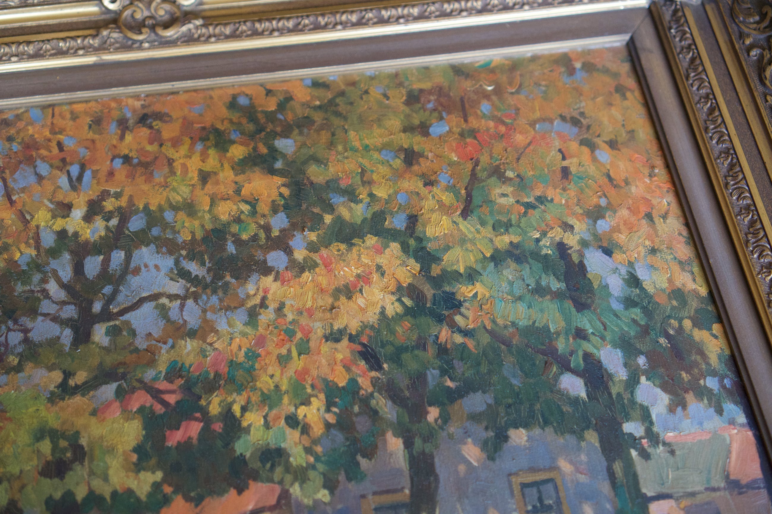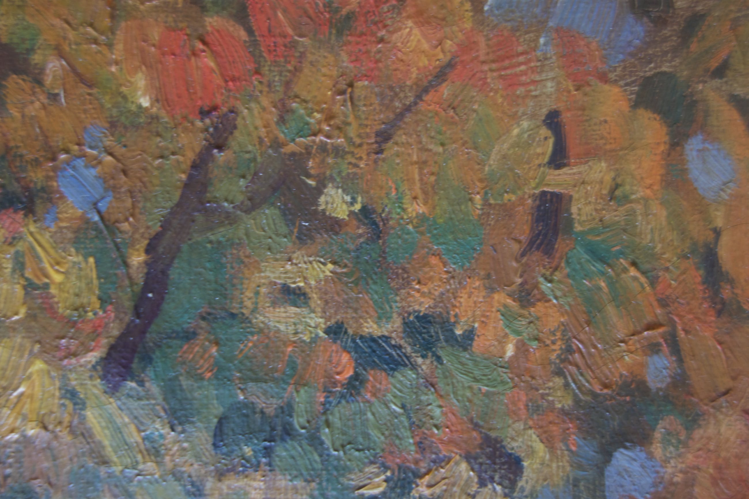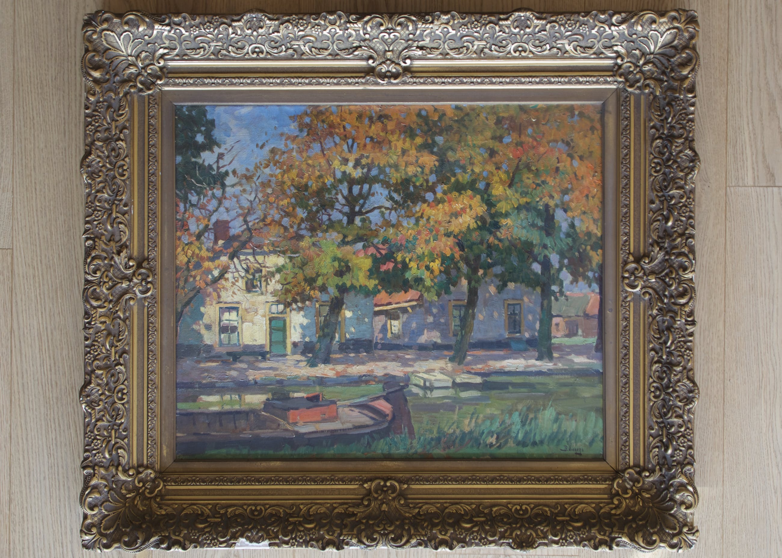 Mooi schilderwerk van een een boerderij door de bekende Nederlandse kunstenaar Ben Viegers in zijn zo herkenbare vlotte manier van schilderen en kleurgebruik. Met name de herfstkleur van de bomen is prachtig.